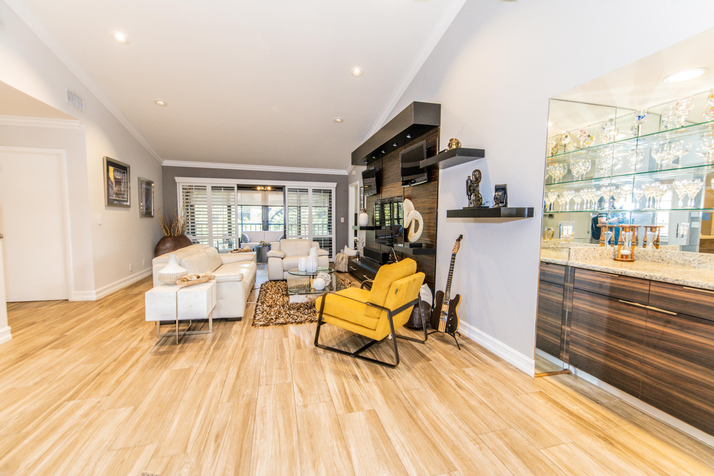 Stunning, pristine, renovated Gulfstream model in Montego Bay. A MUST SEE! Corner unit~3 bedrooms, 2 baths, 2,100+ a/c sq.ft, one car garage located in beautiful Boca Pointe! No details left undone. Great kitchen with modern cabinets, white quartz counters, new appliances, breakfast nook with lots of light, large den/family room off kitchen, inside laundry room, tile flooring /wood look planks throughout, crown molding, lovely fixtures, extra storage under stairs, epoxy flooring in garage, large master bath w/Jacuzzi tub, plenty of closet space and much more. This lovely home is a pleasure to show. Membership optional but not mandatory.