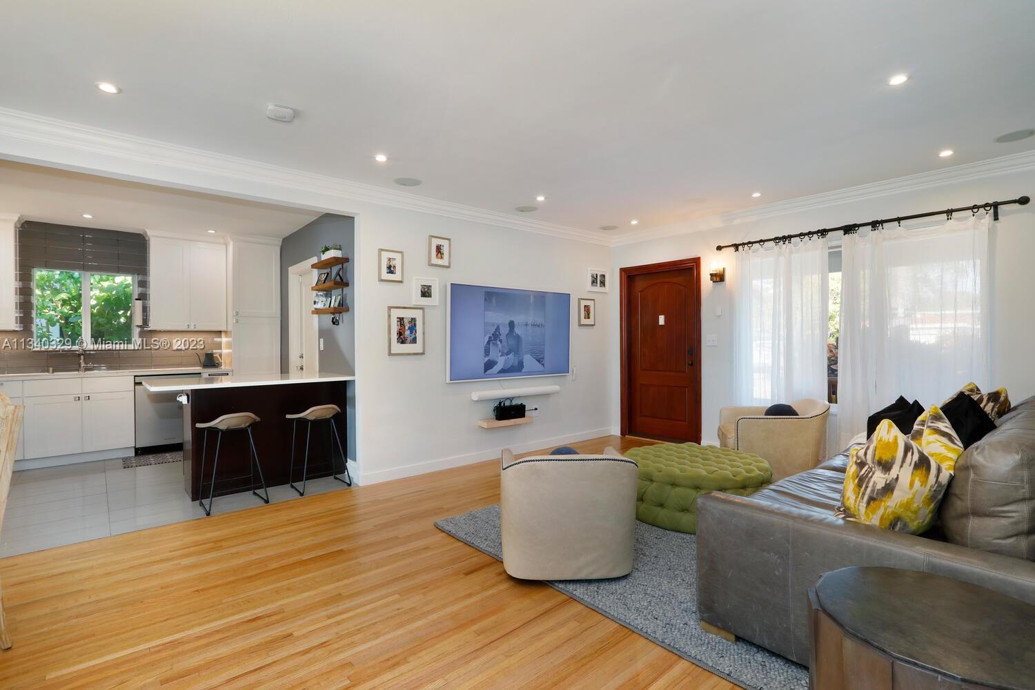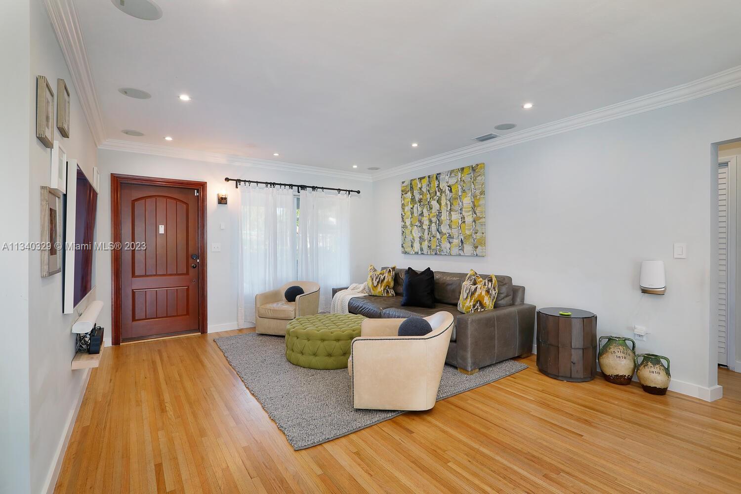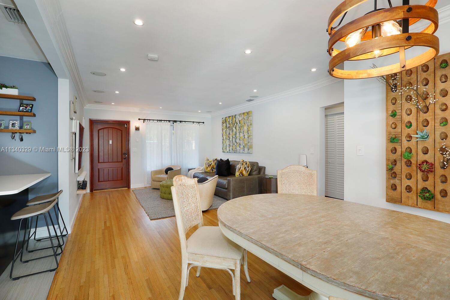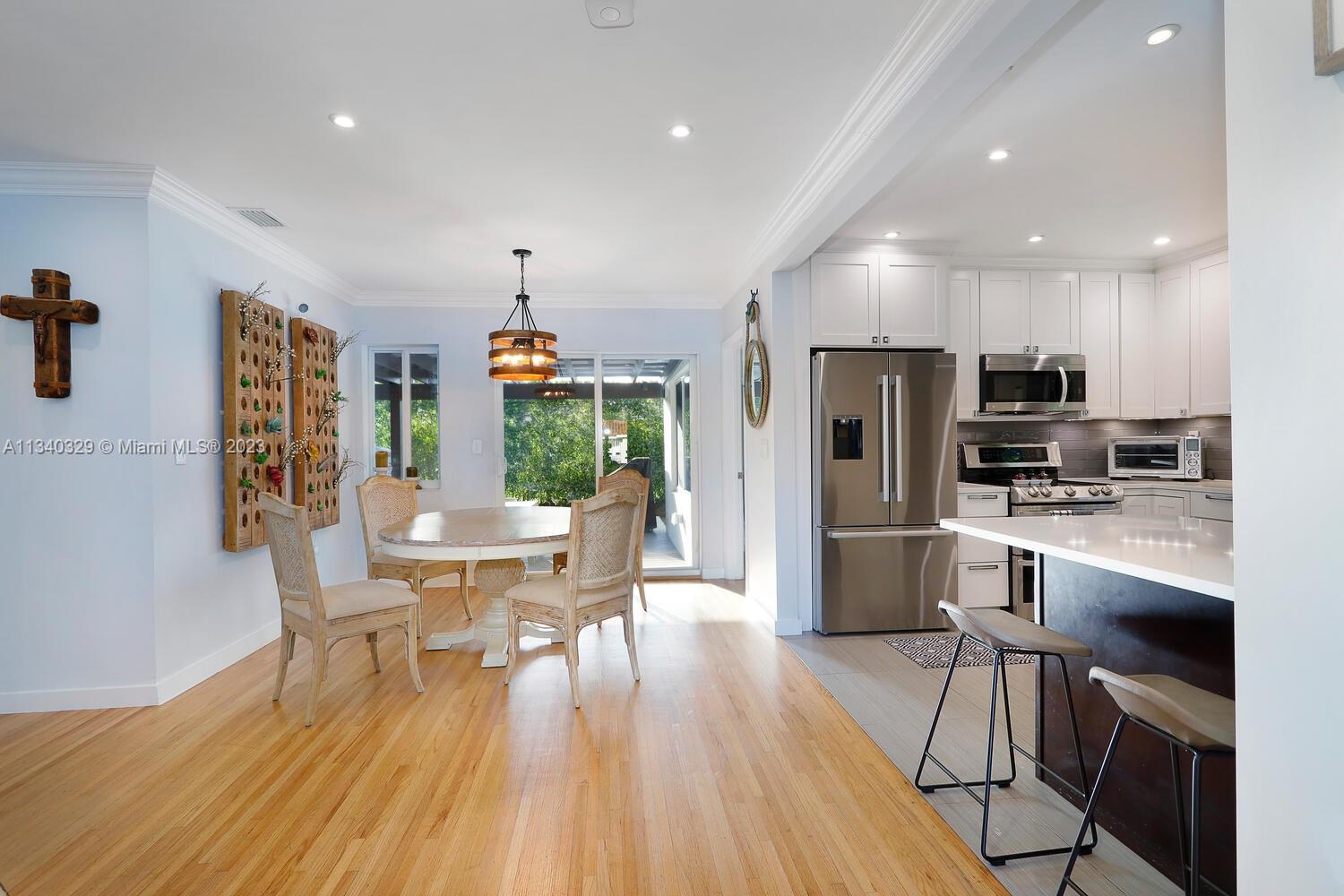 This stunning home in Coral Gables has undergone a modern renovation, making it an ideal choice for discerning buyers. The property includes 3 bedrooms & 2 bathrooms, & is located on a peaceful cul-de-sac. The interior features a recently updated kitchen & bathrooms, as well as hardwood & tile floors, hurricane impact windows, & a 2022 Trane A/C unit equipped with smart sensors, controls & UV light air purifier. In addition to a new electrical panel & tankless water heater, the home comes with brand new appliances, including a washer & dryer. The property's beautiful landscaping in the front & back yards adds to the sophisticated appeal, with the backyard featuring a new pergola & outdoor deck fitted with smart lights, which expands the outdoor living space by an additional 700 sqft.