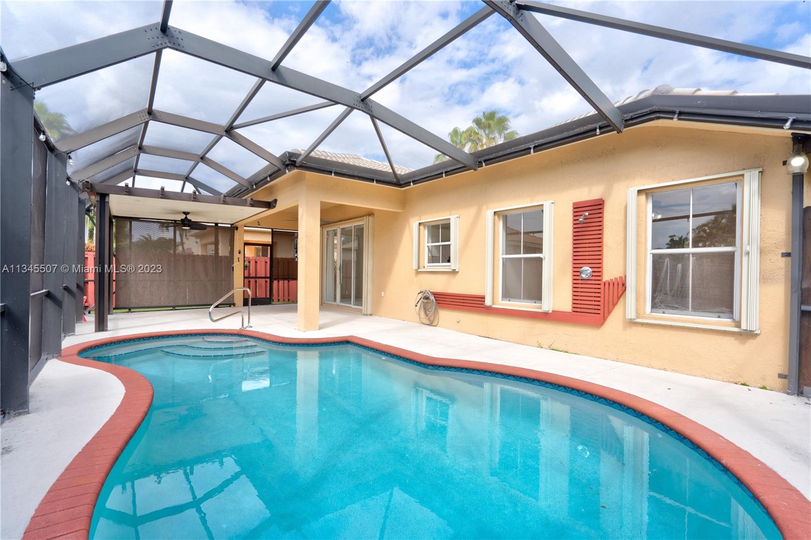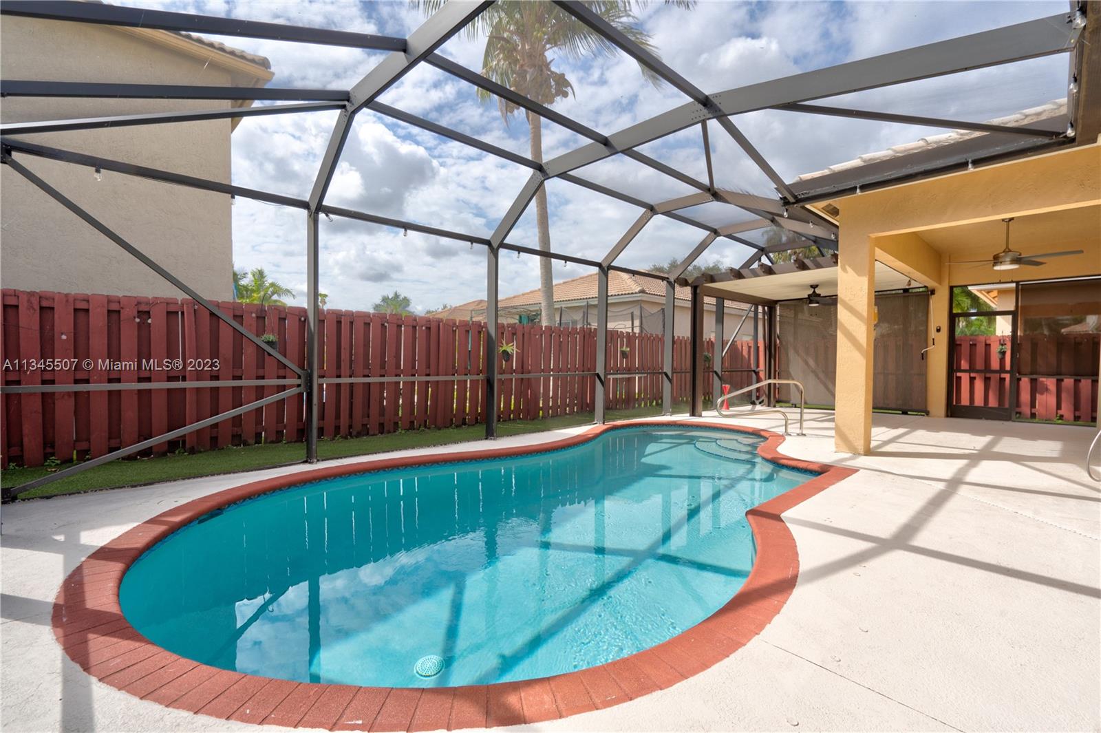 This beautiful property offers 3 bedrooms, 2 1/2 baths, and a pool home located in the heart of a gated community in Davie. Features include an upgraded kitchen with stainless steel appliances, granite countertops, screened-in patio with plenty of space around the pool for BBQ. Nice office in the Garage with its A/C unit, heated pool, Artificial Turf all around the pool area. Excellent location, really close to Sawgrass Mall by 545 & i75.
