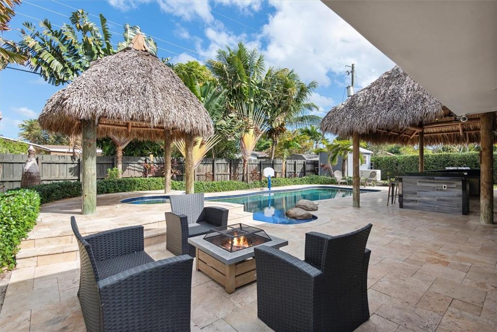 This renovated home is an entertainer’s dream! The backyard features a pool with jacuzzi (added 2017), ample patio space and an oversized bar covered by a 30x15 tiki hut. Outside there is an extra shed/workshop & generator. Inside the home you will find contemporary finishes throughout, and it has been wired for alarm, security cameras, full A/V rack, Lutron lighting & wifi thermostat. The open kitchen is surrounded by plenty of living space all with porcelain tile floors. The primary bedroom is split from the two guest bedrooms. All closets have custom cabinetry. Hurricane impact doors & windows. Great, convenient location! Situated in Pickwick Lake Estates just minutes to I-95 and houses of Worship, also close to Aventura Mall, Gulfstream and beaches.