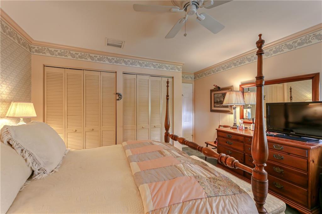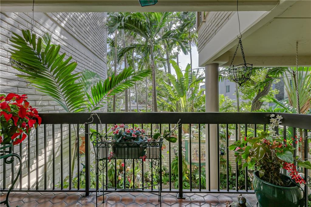 This Victoria Park Place townhouse has privacy in the back patio, with no other townhomes obstructing the breeze. This model has 2 bedrooms with an open den/office. Some owners have easily enclosed this area for a third bedroom. Large primary bedroom suite with dual sinks and two walk in closet. Main living area has a nice balcony overlooking the lovely garden patio. This unit has the A/C condenser located outside the back fence, so you do not hear that motor sound. Home has wooden Plantation shutters, protected by hurricane Roladen shutter system, metal front door, and impact garage door. #1408 is located "outside the gate", which means you have 2 parking spaces in front of your 2 car garage. Association coated roofs on in 2016. 2 pets OK. (Dining room chandelier NOT included).