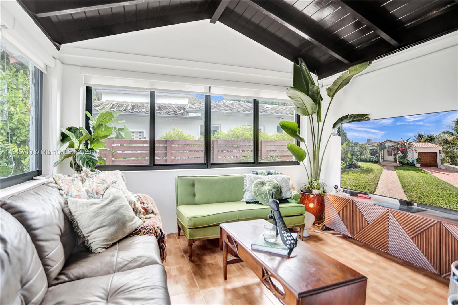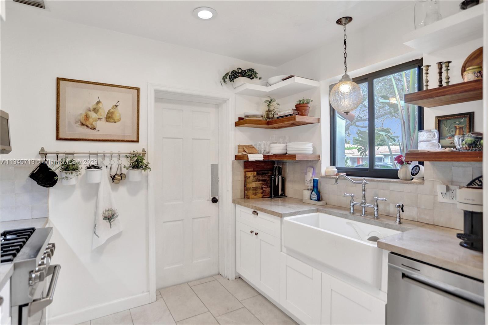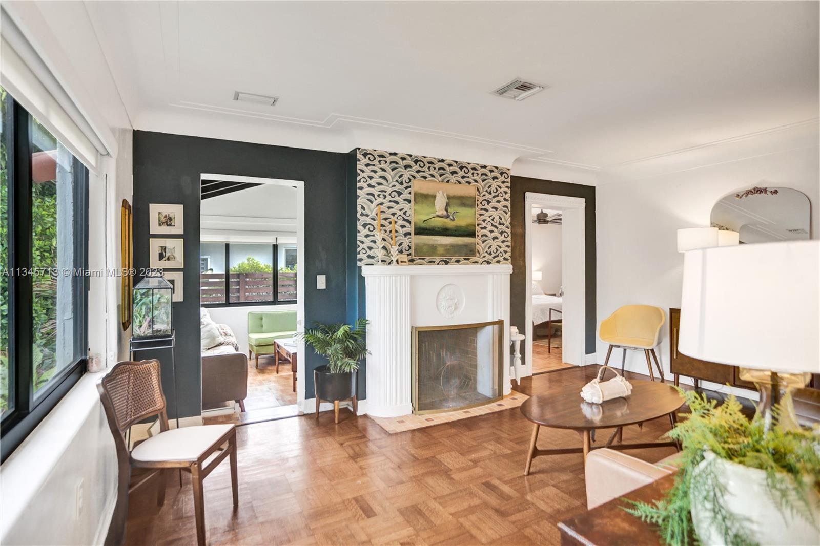 Stunning One-Of-A-Kind Vintage 3 bed, 2 bath, 1,679 SF on oversized 8,100 SF lot. Welcome to your new home in the exclusive Miami Shores Village nestled on a quiet cul-du-sac. Resplendent home has been lovingly updated while preserving rare design features such as cove ceilings, Deco fireplace with Bas-relief, original hardwood floors, intricately carved moldings. Unique finishes include hand cut Moroccan Zellige tile, quartzite stone counters, tumbled marble tile, beverage bar, South African Braai outdoor Fireplace/Grill, Pergola. Primary suite w/spa tub, separate shower, walk-in closet. Impact windows & doors, new HVAC, updated electric, new SS appliances, new washer & dryer, keyless entry, Bluetooth irrigation. Showstopping Bougainvillea and bird of paradise grace the covered entryway.