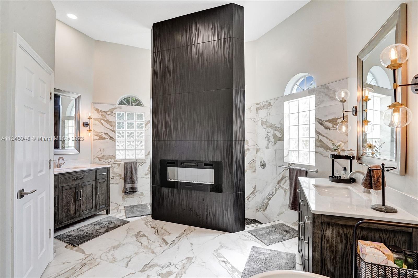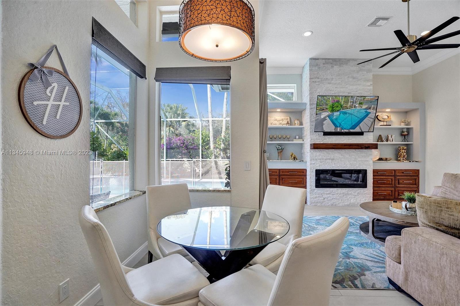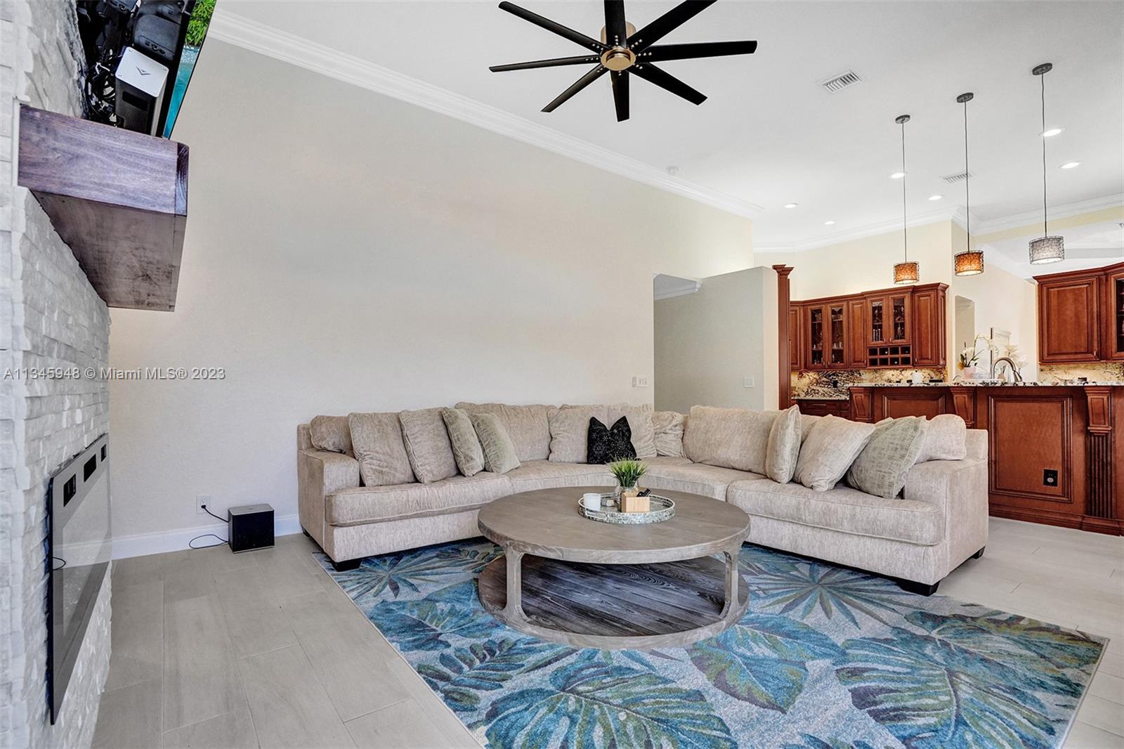 5/3 Triple split floor plan located in The Isles. This home has meticulous & impressive curb appeal. Large family room with fireplace that overlooks the screened saltwater pool. High vaulted ceiling, custom porcelain floors throughout the home, custom walls. Kitchen features Thomasville cabinets & high-end granite counter tops, wine refrigerator, newer appliances & eat-in kitchen. Built-in reverse osmosis filter for purified water. Pool resurfaced & new tiles with a waterfall & pool bath (Shower). Owner’s suite is exquisite with spa-like designs. Sitting area has view of pool. Barn door that leads to the custom closets & into bathroom with dual vanities, walk-through showers, heated fireplace & soaking tub. 3 car garage with finished walls & floors. Community private park with lake access