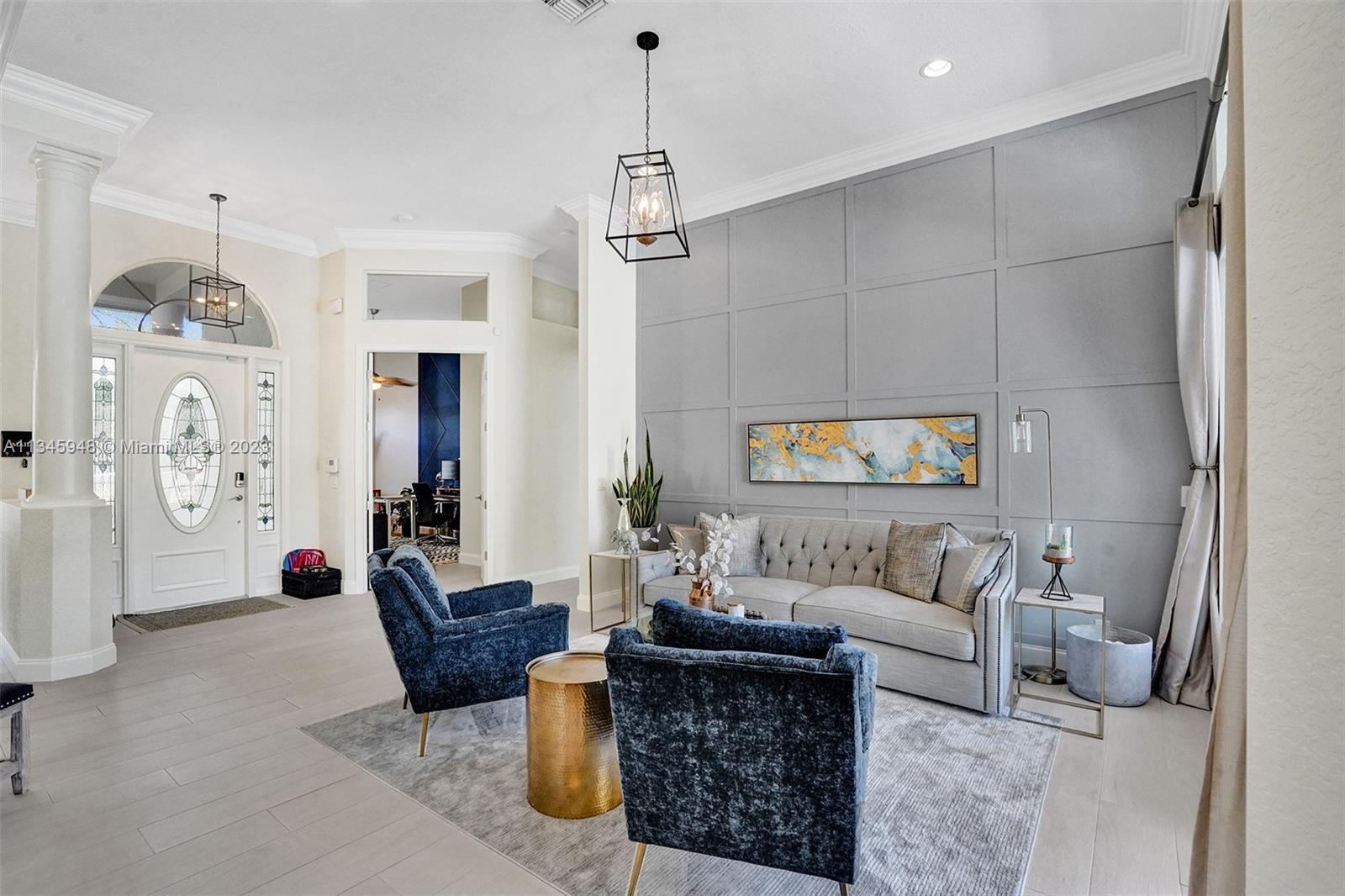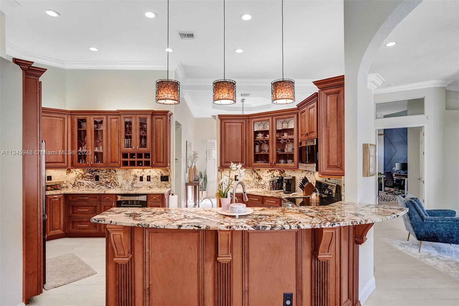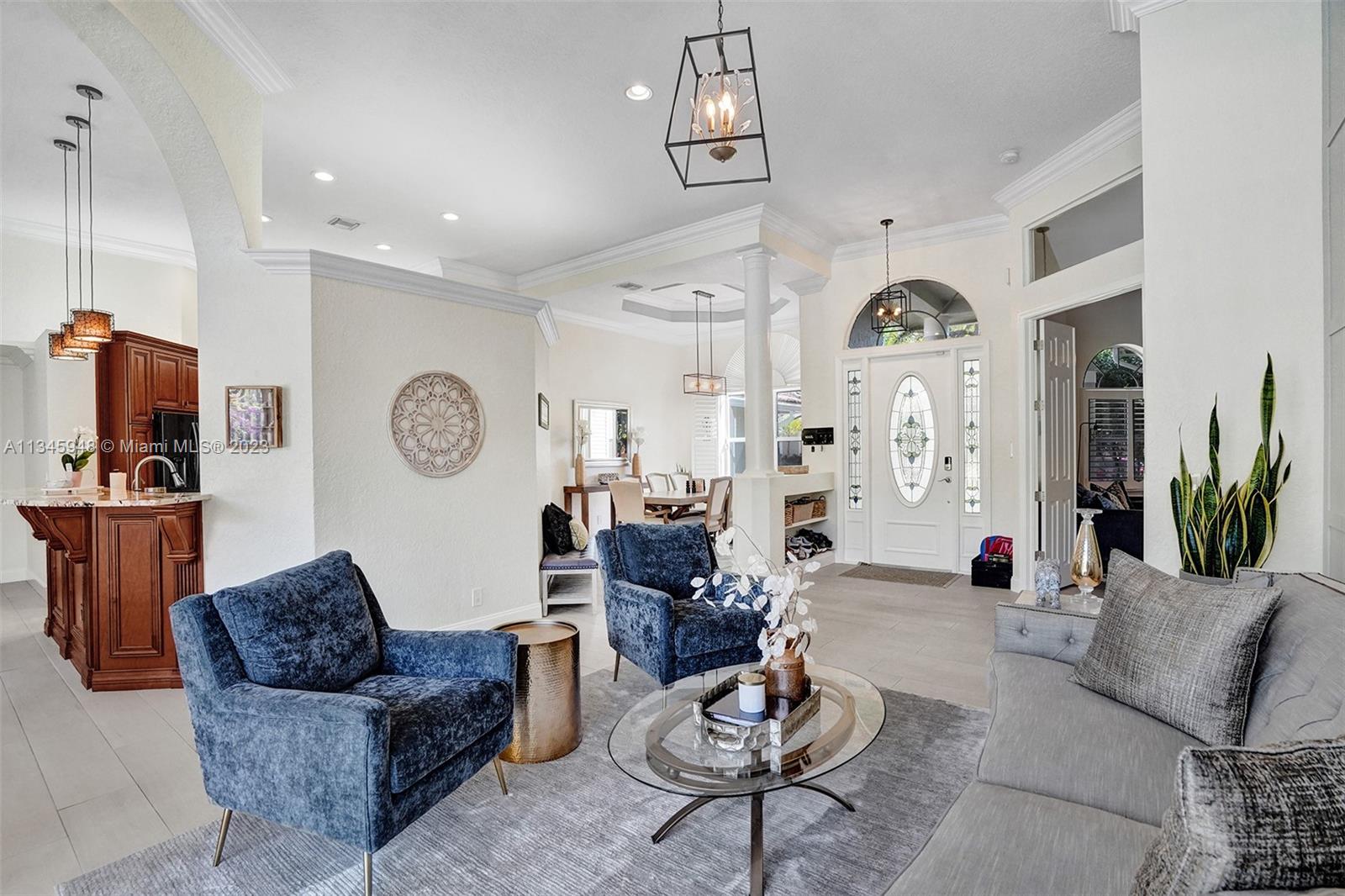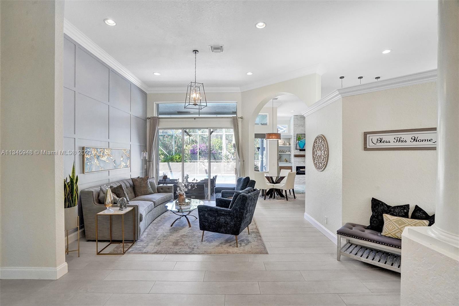 5/3 Triple split floor plan located in The Isles. This home has meticulous & impressive curb appeal. Large family room with fireplace that overlooks the screened saltwater pool. High vaulted ceiling, custom porcelain floors throughout the home, custom walls. Kitchen features Thomasville cabinets & high-end granite counter tops, wine refrigerator, newer appliances & eat-in kitchen. Built-in reverse osmosis filter for purified water. Pool resurfaced & new tiles with a waterfall & pool bath (Shower). Owner’s suite is exquisite with spa-like designs. Sitting area has view of pool. Barn door that leads to the custom closets & into bathroom with dual vanities, walk-through showers, heated fireplace & soaking tub. 3 car garage with finished walls & floors. Community private park with lake access