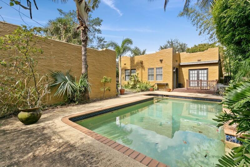 Charming 1925 Spanish Mission Style Single Story Home with Studio Apartment and Pool in the Heart of the Old Northwood Historic District! Main house offers 3 bedrooms and 1 bath with bright bonus Florida room boasting original Pecky Cypress ceiling and timeless arched windows! Enter through the covered alcove entry and Pecky Cypress door to the gracious living room with original fireplace. Once inside, relish the highly desirable Dade County wood pine floors, crystal door knobs, period lighting fixtures, stucco walls and high ceilings throughout. Make your way through the spacious dining area to the full kitchen boasting 2022 LG Fridge, wood cabinetry, stainless appliances and a 6 burner Viking Gas Cooktop and Viking Gas Wall Oven! Main home also offers washer/dryer and alarm system.