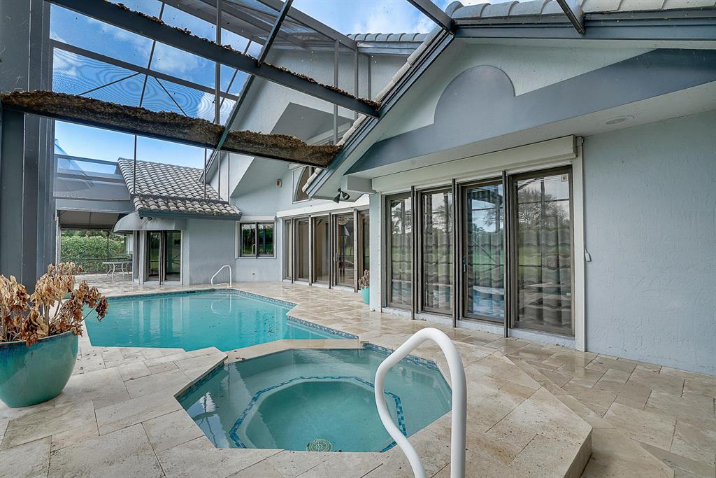 Beautiful water and golf view single family home situated on the best street in Boca Grove quick walk to Powerline Road to restaurants and minutes to Boca Town Center on 12th green in highly sought after Boca Grove Country Club private golf community, have you been searching for family pool home with high ceilings wide foyer with grand living room facing large pool/spa, cabana bath over looking lake and golf coarse, this 3 bedrooms and a den to make a 4th bedroom if needed, renovated kitchen, master bedrooms has closets galore, renovated master bath, large dinning room, circular driveway with 2.5 car garage.Two new AC in 2021, Full house generator ,Close to house of worship.
