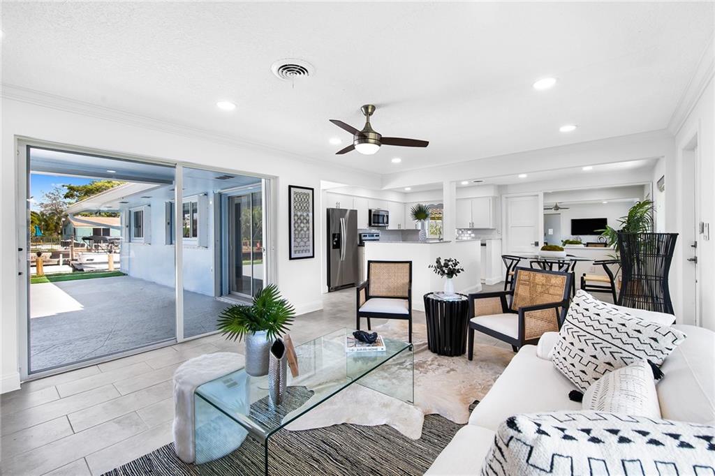 Welcome Home to your waterfront tropical oasis! Enjoy ocean access (fixed bridges), private dock with power & water. Fully fenced meticulous outdoor space, complete with Tiki Hut, astro turf, shed, xeriscaped side yard and stamped concrete patio. Natural light abounds in this 3 bed 2 bath spilt floor plan. Home boats remodeled primary & guest baths, tile & laminate flooring throughout, warm wood interior & exterior accents, new water heater 2022, accordion storm protection, 2 car carport & spacious laundry / utility room. Contact us today!
