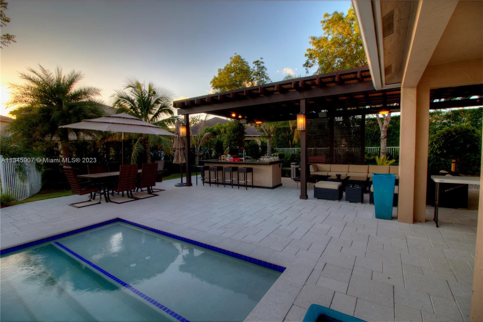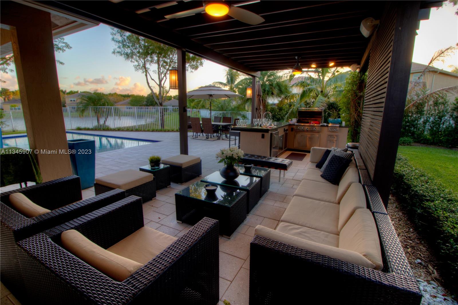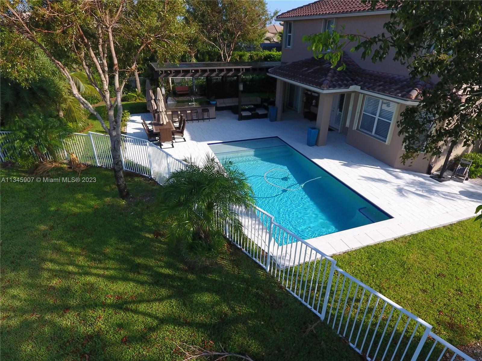 Stunning Waterfront home w/5 bedrooms + oversized 2nd floor den. At Cut-de-sac, gorgeous outdoor kitchen area with Salt water Pool and beautiful lake view! Huge backyard. Smart Home controlled via WIFI. Walking distance to A Rated Public Schools. Resort community amenities include pool/spa, basketball, tennis, volleyball, playground, clubhouse w/fitness center & more! Easy commute to Miami, Ft. Lauderdale, Ocean/beaches & nightlife!