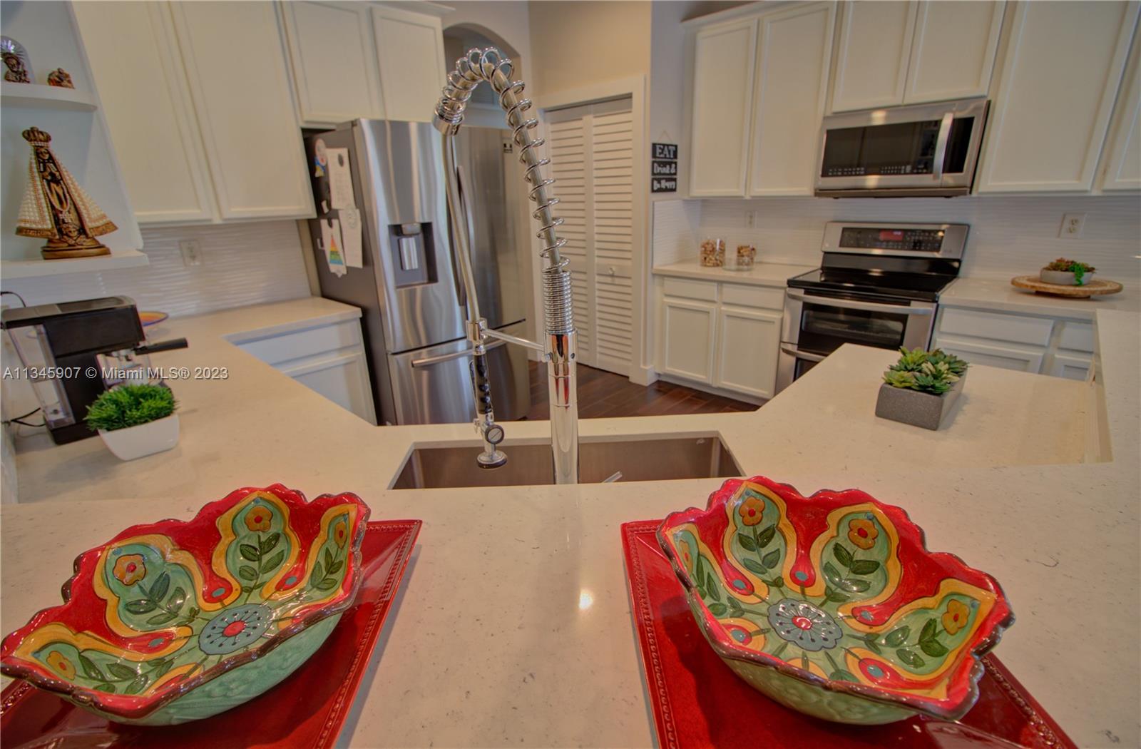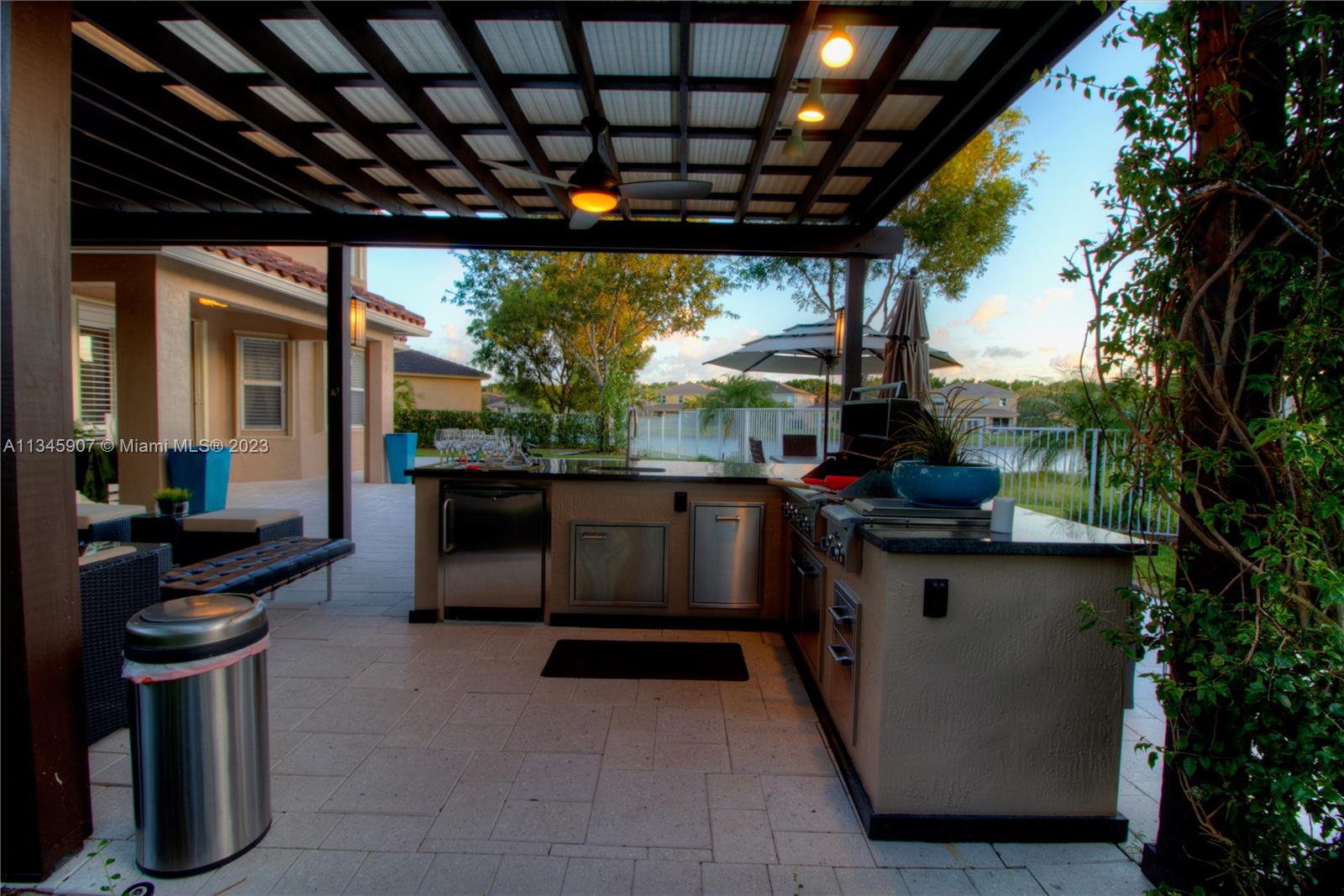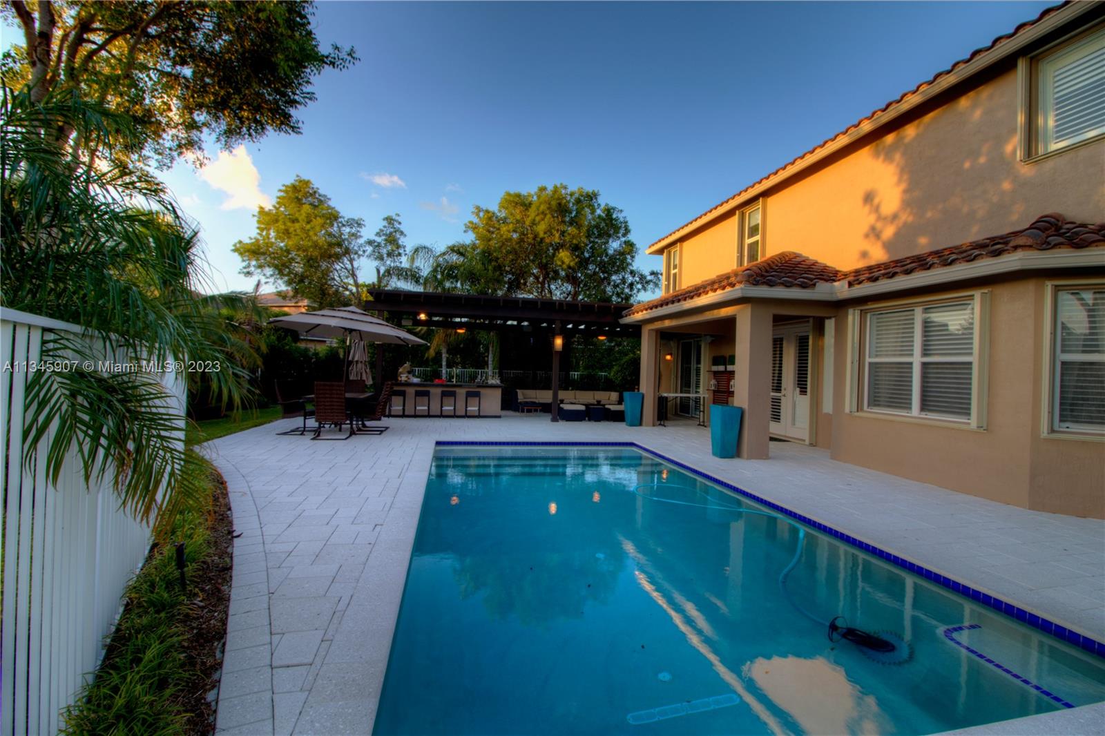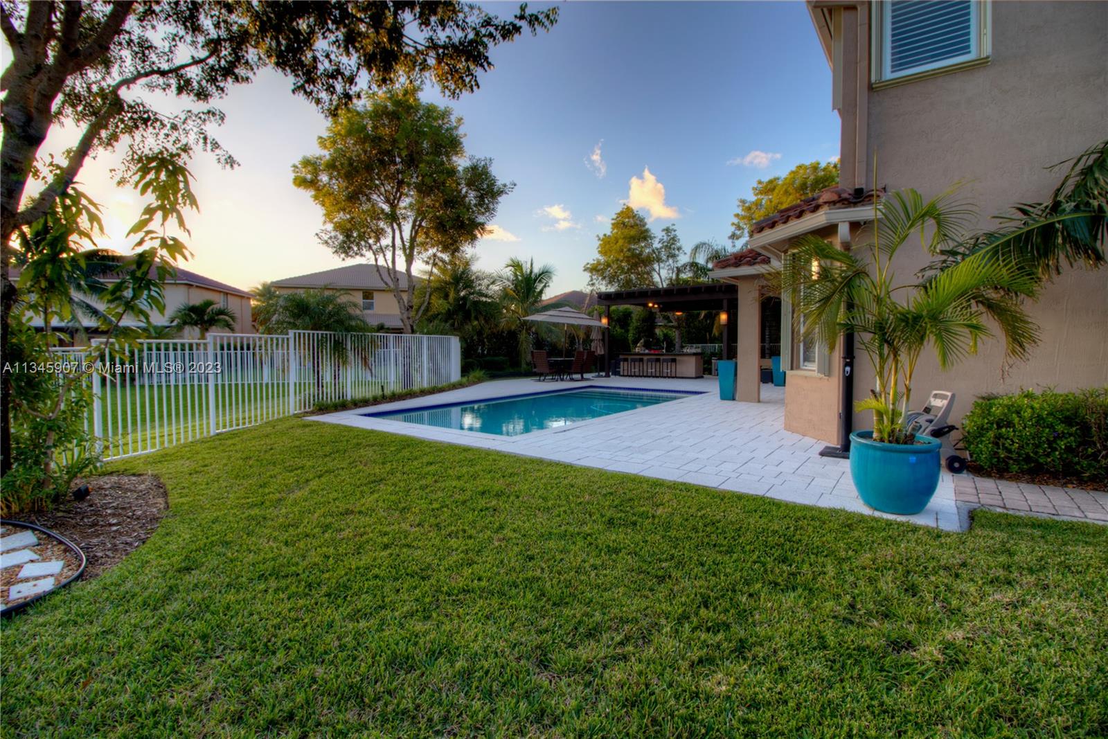 Stunning Waterfront home w/5 bedrooms + oversized 2nd floor den. At Cut-de-sac, gorgeous outdoor kitchen area with Salt water Pool and beautiful lake view! Huge backyard. Smart Home controlled via WIFI. Walking distance to A Rated Public Schools. Resort community amenities include pool/spa, basketball, tennis, volleyball, playground, clubhouse w/fitness center & more! Easy commute to Miami, Ft. Lauderdale, Ocean/beaches & nightlife!