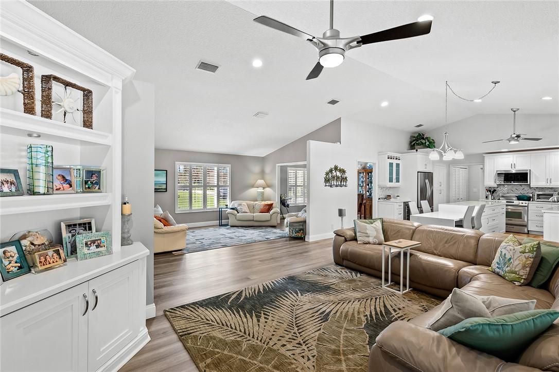Unique luxury home with 2 separate homes under 1 roof, 1 Acre Lot, No HOA. 7 bedrooms & 4 bathrooms. Main house has 4 bedrooms with an additional room exercise/game room. Bedrooms have custom closets. Luxury Vinyl plank flooring throughout. Kitchen completely remodeled with wine cooler and open concept/vaulted ceilings & built-In cabinets. Spectacular view of saltwater pool and lush landscaping. Attached living area has separate entry- 3 beds /2 baths and is fully remodeled w/new appliances & updated kitchen & baths. PGT Impact windows and accordion shutters on porch and upstairs windows. Nest cameras inside & out, smoke & carbon monoxide detectors. Steel shed (175 mph rated), TONS of storage, All Appliances stay, 3 AC units, Wi-Fi App controlled devices, close to shopping and highways.