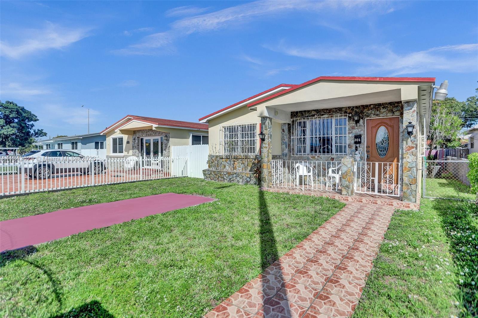 Beautifully maintained home with 3 bedrooms, 2 full bathrooms in the heart of Hialeah. Property features a dining room, living room, and a great family room with full bathroom, laundry room and access to the large backyard. Tile flooring throughout, new central A/C, and parking area within gated property line. Kitchen also has access to side of property. Enjoy the Seller's pride and joy -- delicious avocados grown straight from the backyard. Located near great stores, schools and major highways.