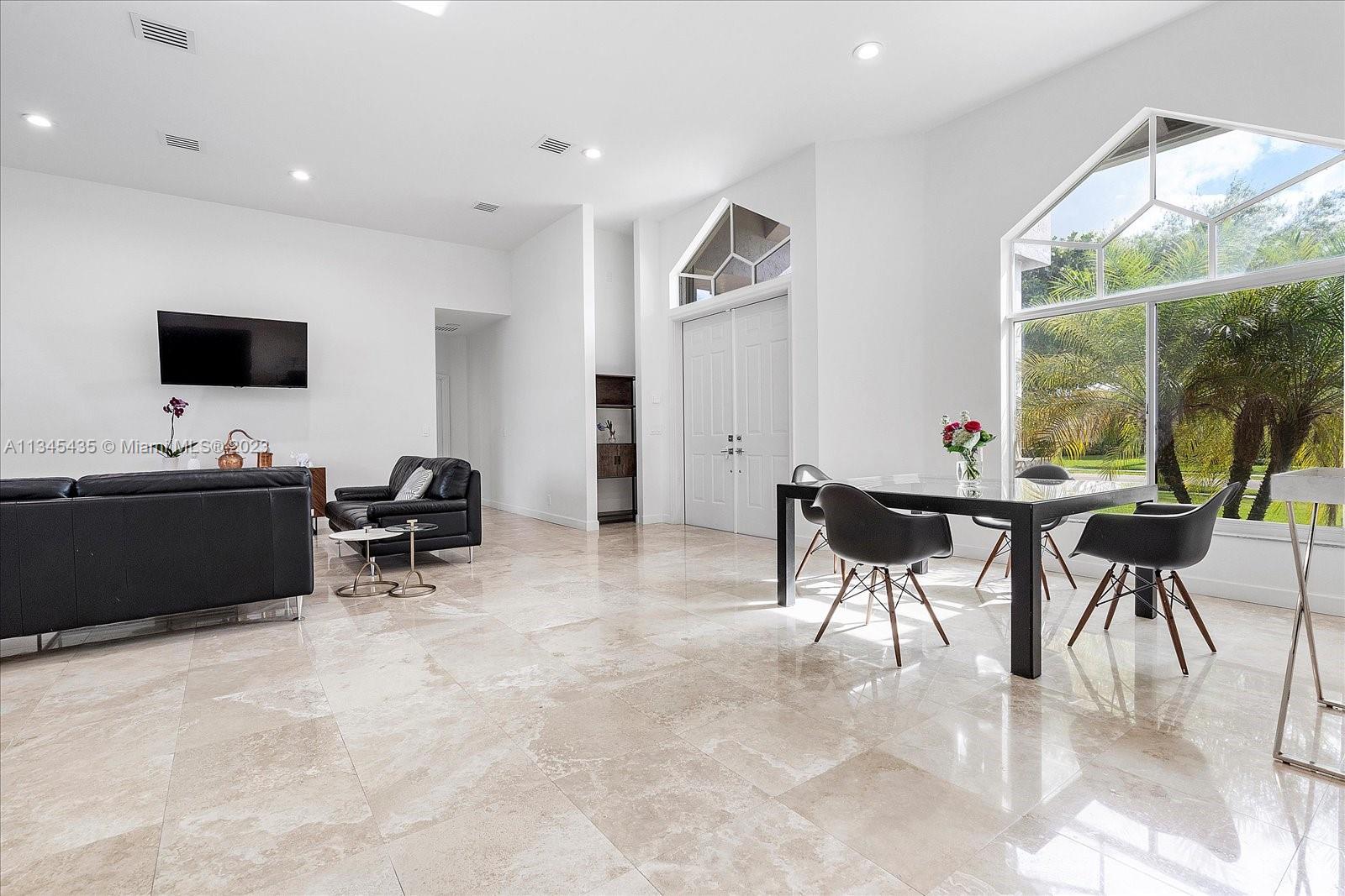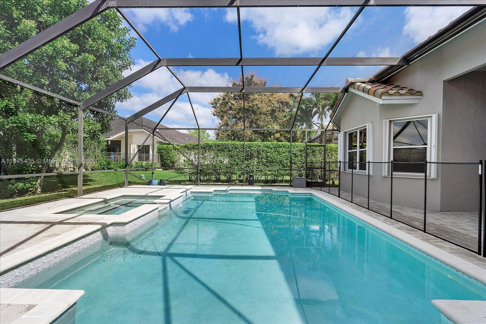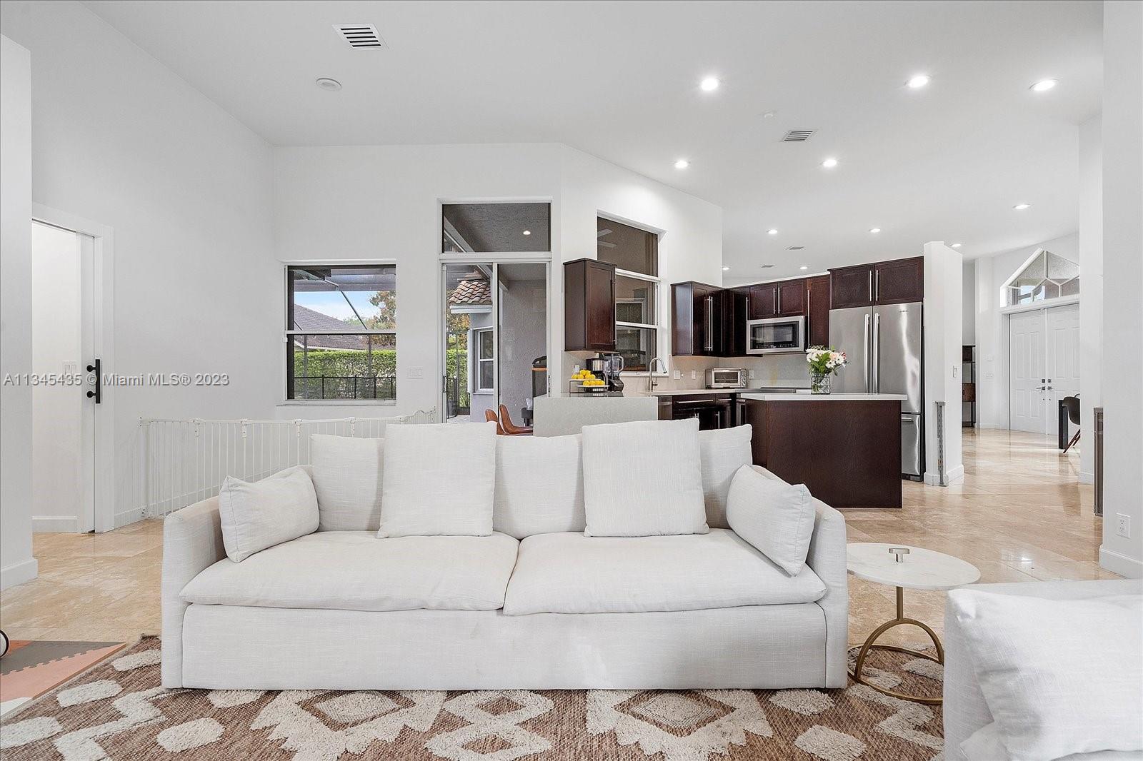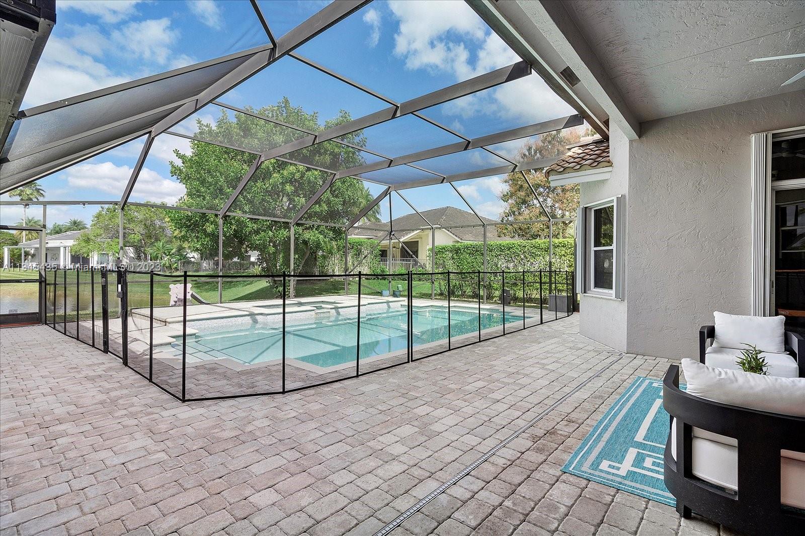 Recently updated one story waterfront home located in Prestigious Weston Hills Country Club. This home shows like a model. The kitchen has been remodeled; it features Quartz countertops, & all newer appliances. Travertine floors in all the living areas and hardwood flooring in Master. The Children's wing has porcelain wood plank floors and a renovated bathroom. The pool is oversized, screened in, and offers serene lake views. Owner has made so many upgrades: ring system and interior cameras, new refrigerator and washer & dryer in an oversized laundry room, new dishwasher, installed UV lights in the A/C System to control air quality, new garage flooring, all interior lighting replaced, added additional A/C vents, removed popcorn ceilings, 2 eco bees & new water heater.