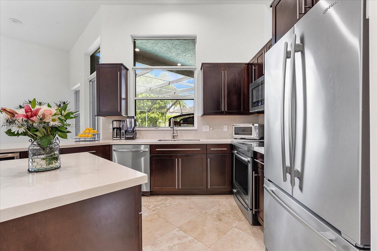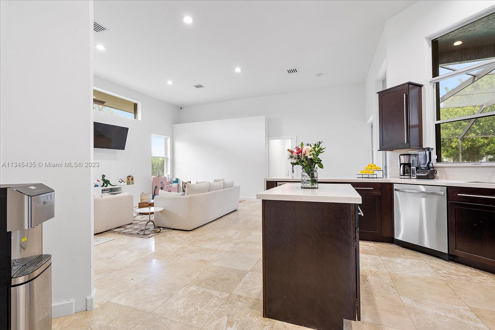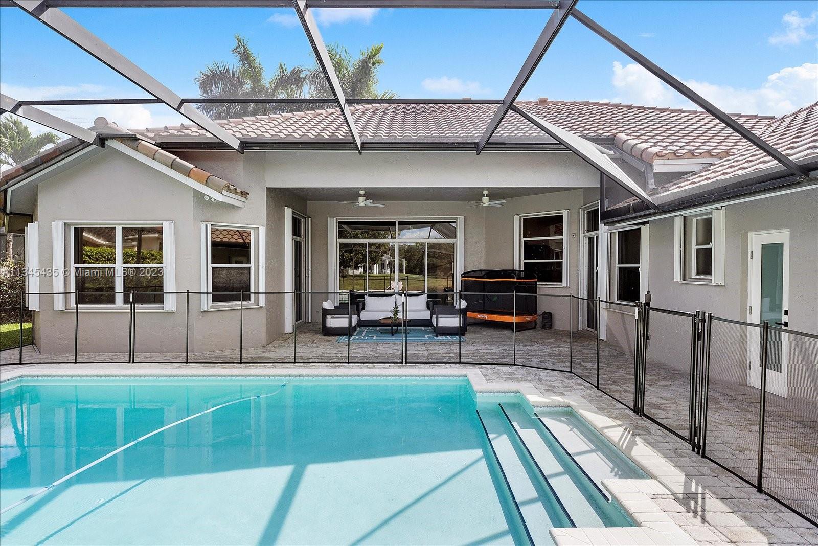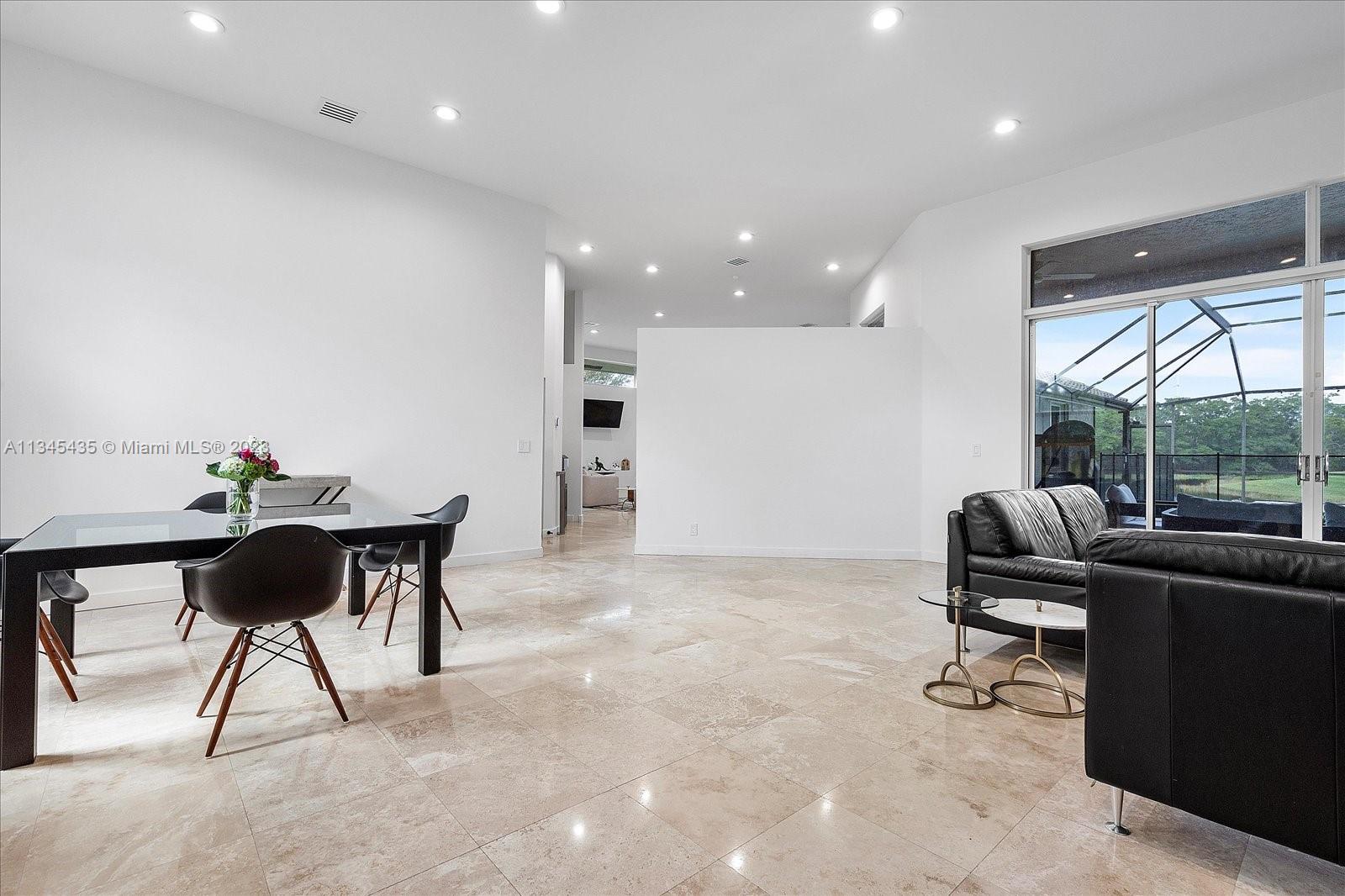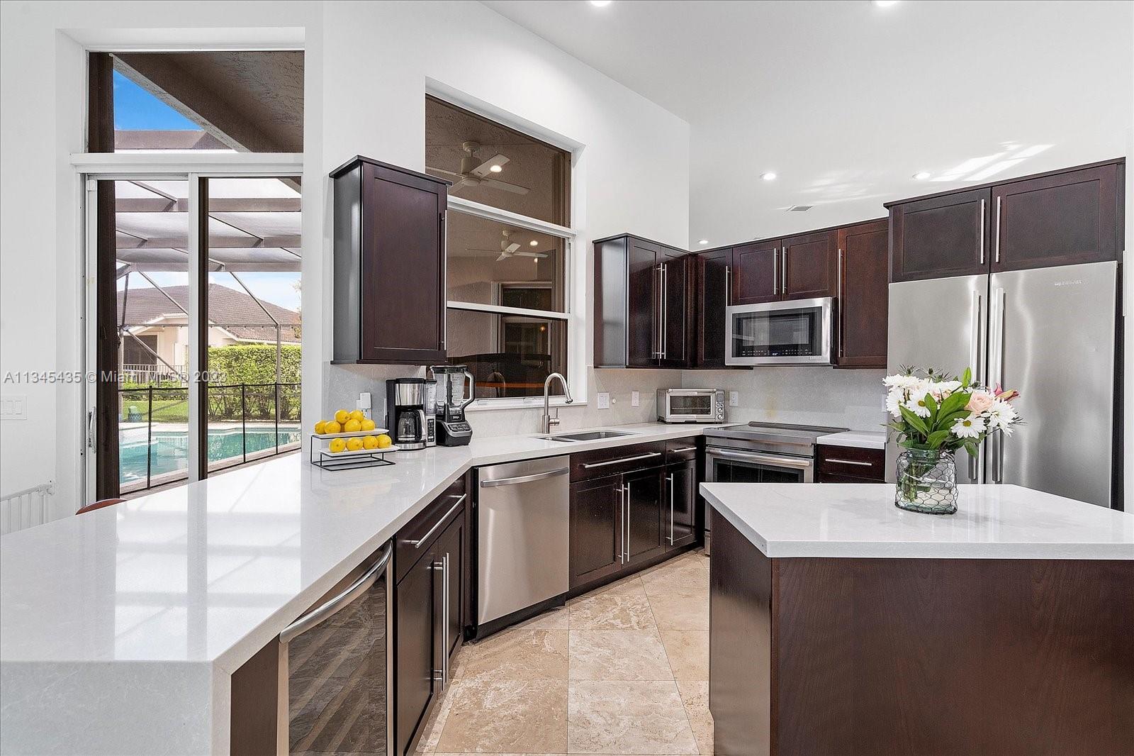 Recently updated one story waterfront home located in Prestigious Weston Hills Country Club. This home shows like a model. The kitchen has been remodeled; it features Quartz countertops, & all newer appliances. Travertine floors in all the living areas and hardwood flooring in Master. The Children's wing has porcelain wood plank floors and a renovated bathroom. The pool is oversized, screened in, and offers serene lake views. Owner has made so many upgrades: ring system and interior cameras, new refrigerator and washer & dryer in an oversized laundry room, new dishwasher, installed UV lights in the A/C System to control air quality, new garage flooring, all interior lighting replaced, added additional A/C vents, removed popcorn ceilings, 2 eco bees & new water heater.