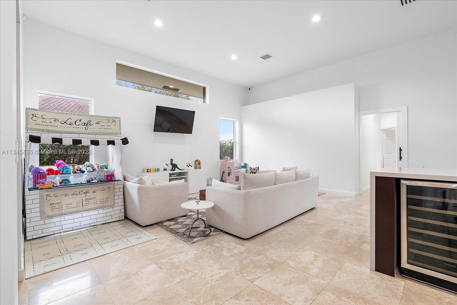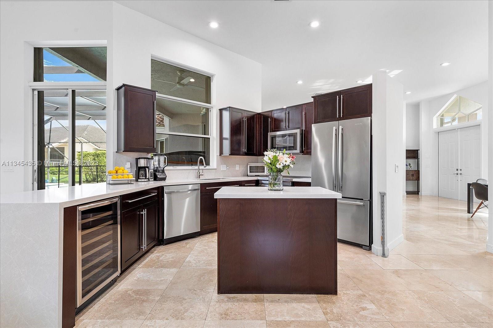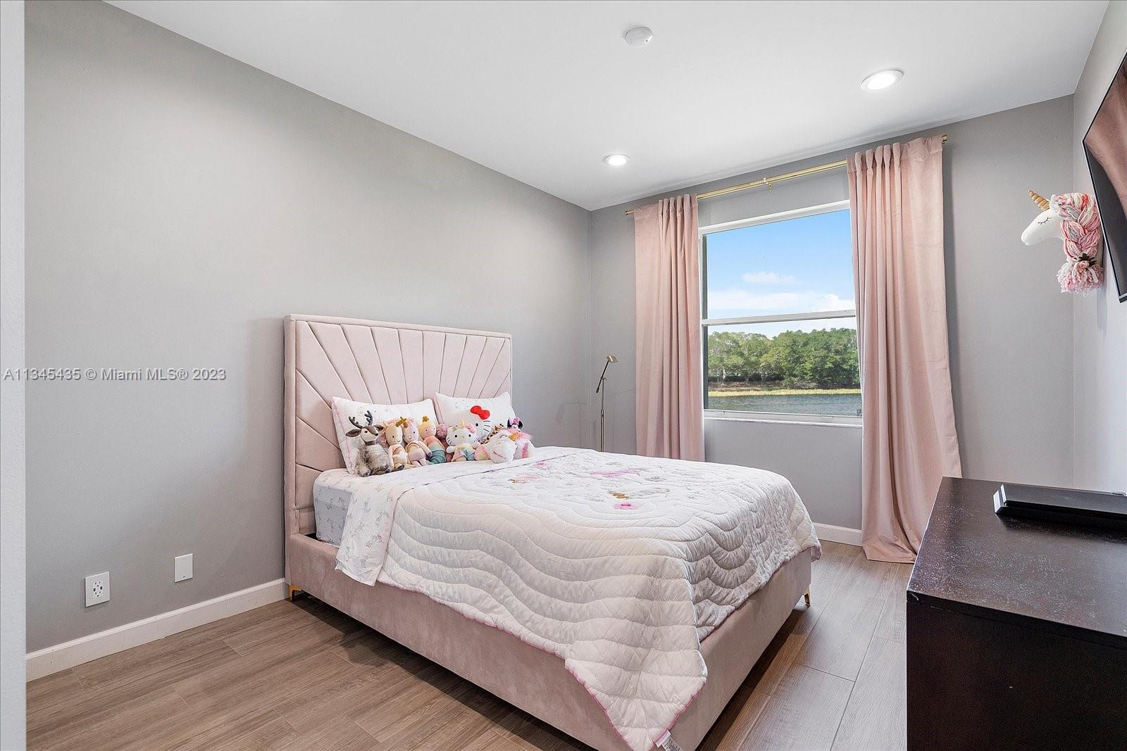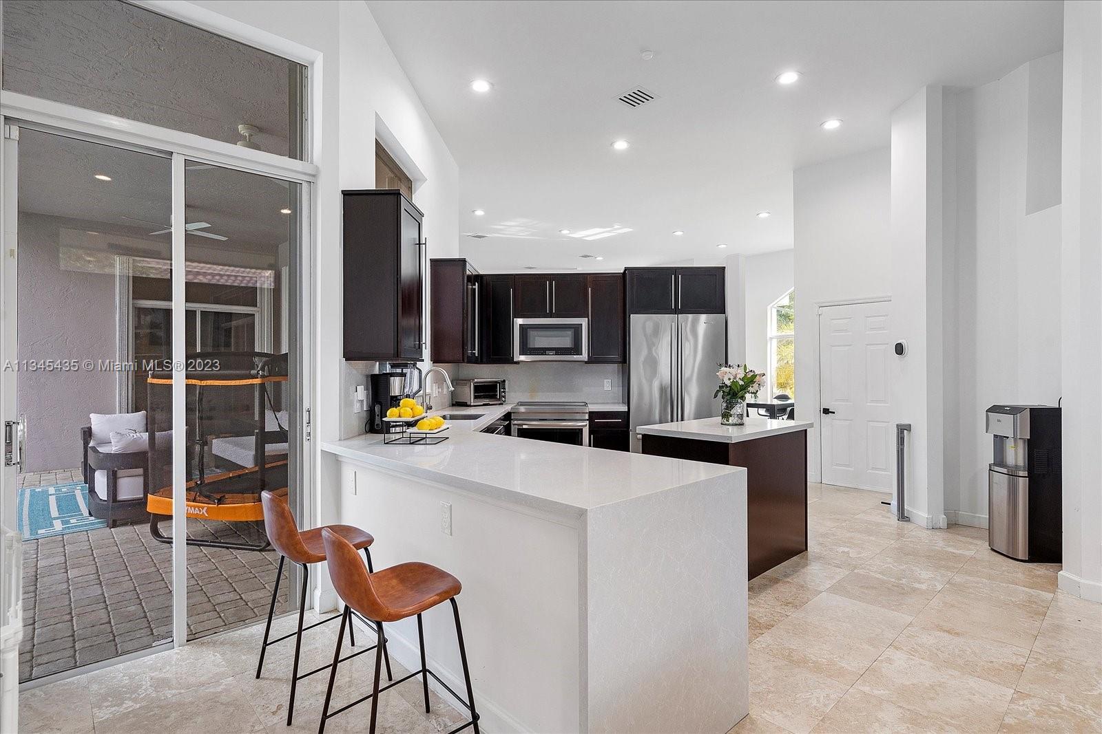 Recently updated one story waterfront home located in Prestigious Weston Hills Country Club. This home shows like a model. The kitchen has been remodeled; it features Quartz countertops, & all newer appliances. Travertine floors in all the living areas and hardwood flooring in Master. The Children's wing has porcelain wood plank floors and a renovated bathroom. The pool is oversized, screened in, and offers serene lake views. Owner has made so many upgrades: ring system and interior cameras, new refrigerator and washer & dryer in an oversized laundry room, new dishwasher, installed UV lights in the A/C System to control air quality, new garage flooring, all interior lighting replaced, added additional A/C vents, removed popcorn ceilings, 2 eco bees & new water heater.