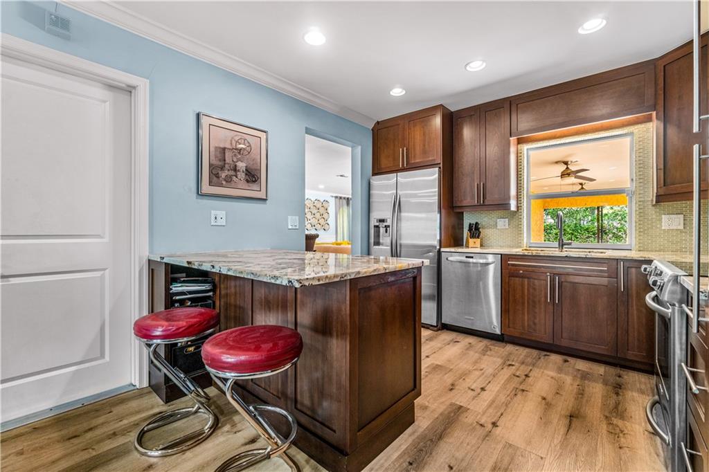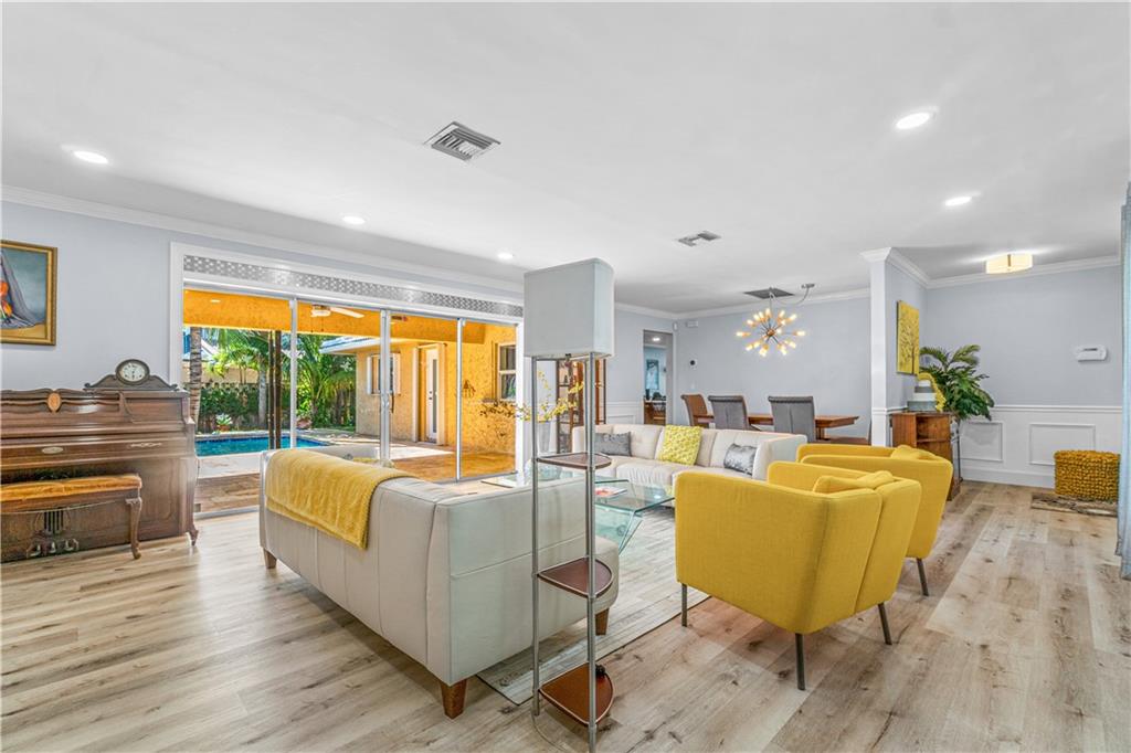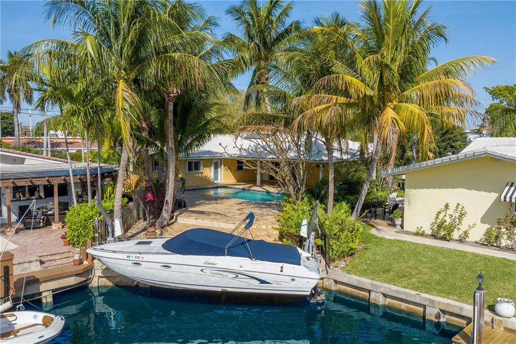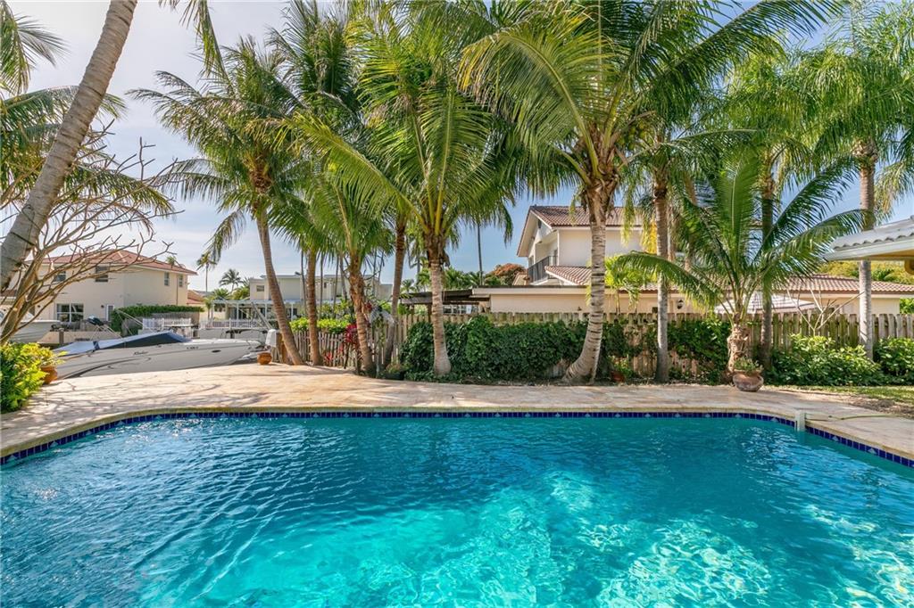 Nestled on a sprawling corner lot in East Boca Raton with two distinct backyard spaces, this waterfront gem dazzles with existing highlights and infinite possibilities. The property, within earshot of Lake Rogers & Spanish River Park, is built for entertaining. Lush landscaping frames an expansive pool that overlooks a dock/lift that can accommodate a nearly 30-foot boat. A second oversized green space is perfect for home gardening, children’s play & more. Interior highlights inside the three-bedroom, two-bath open layout include: Luxury vinyl flooring; two living room areas; gourmet kitchen with state-of-the-art appliances; walk-in closets in every bedroom; new AC unit & solar hot water heater. Welcome Home with an incredible location in one of the most sought after areas in East Boca.