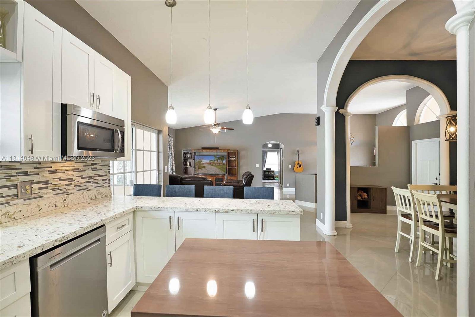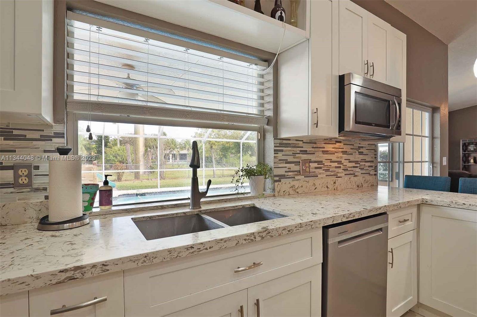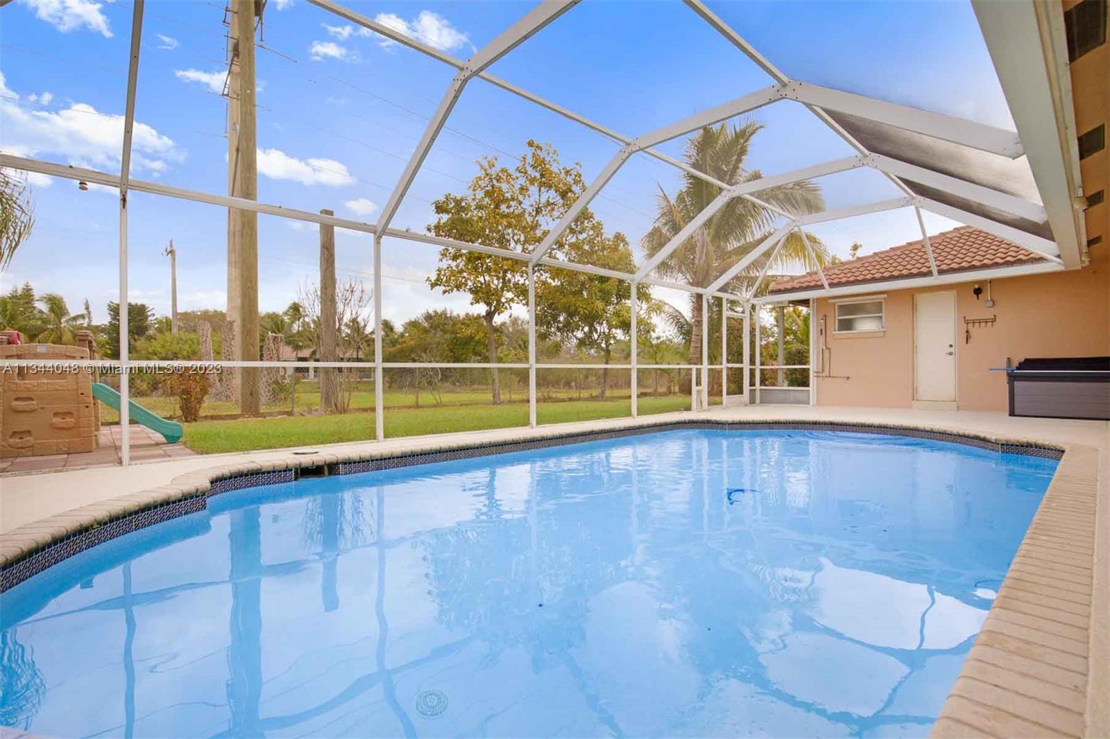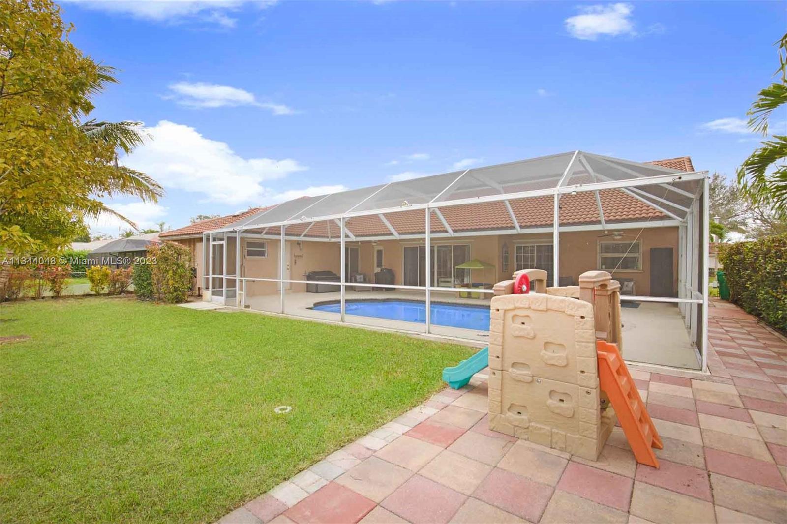 Located in the highly desired community of Brookside Court. Once you drive up to your home you’re greeted by the large circular paver driveway that leads you to your double front doors. When you enter the front doors, you’re greeted by the natural light, vaulted ceiling, views directly out to your pool, & water views. The captivating views bring the outside in & you have a spacious 4/2.5 floor plan to enjoy w/ 2 car garage. Upgraded open kitchen w/ island, peninsula, & pantry w/ newer appliances. Open kitchen overlooks the family room, formal dining, and living areas. Spacious bedrooms. Two Cabana baths lead you to the pool area. Screened Pool enclosure. Outdoor Shower. Fenced Yard. Fruit Trees. Hurricane Shutters. Roof 2020! Walkable to all schools, parks, water park, skate park & more!