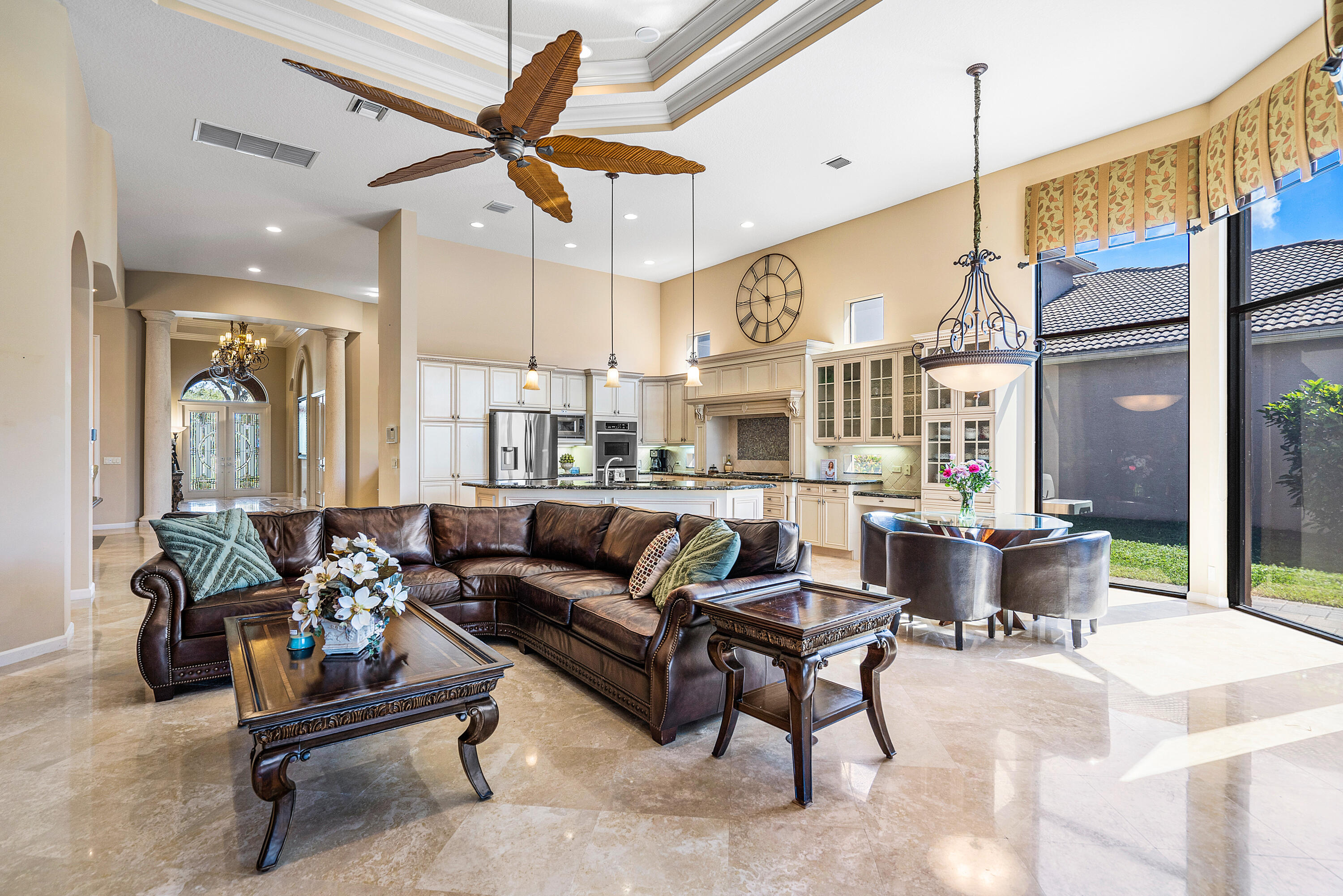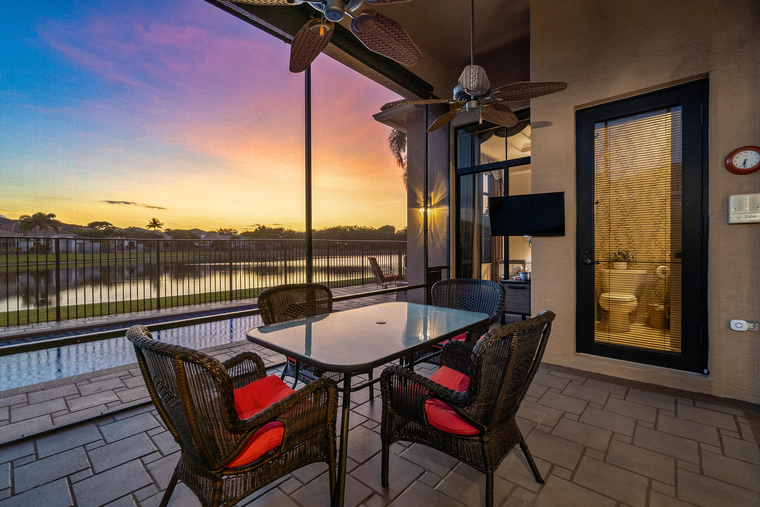 Rarefied elegance in this beautiful lakefront Barcelona model on an expanded lot. The builders upgrades are abundant in this single-story, 3 bed, plus study or convertible 4th bedroom, 3 full & 2 half bath home. Featuring Saturnia marble floors w/ intricate inlays in the foyer, wood floors in the study, custom millwork, & an incredible alabaster gourmet kitchen w/ professional-grade appliances. The Primary suite is located in a private wing and features 2 outfitted closets & a luxurious primary bath. Remaining bedrooms feature en-suite baths and custom closets. The highlight is the expanded side yard w/ tremendous lake views from the recently refinished pool & patio space. With a full house generator, full hurricane protection, screened patio, & a 2 car garage. Sophisticated and pristine!