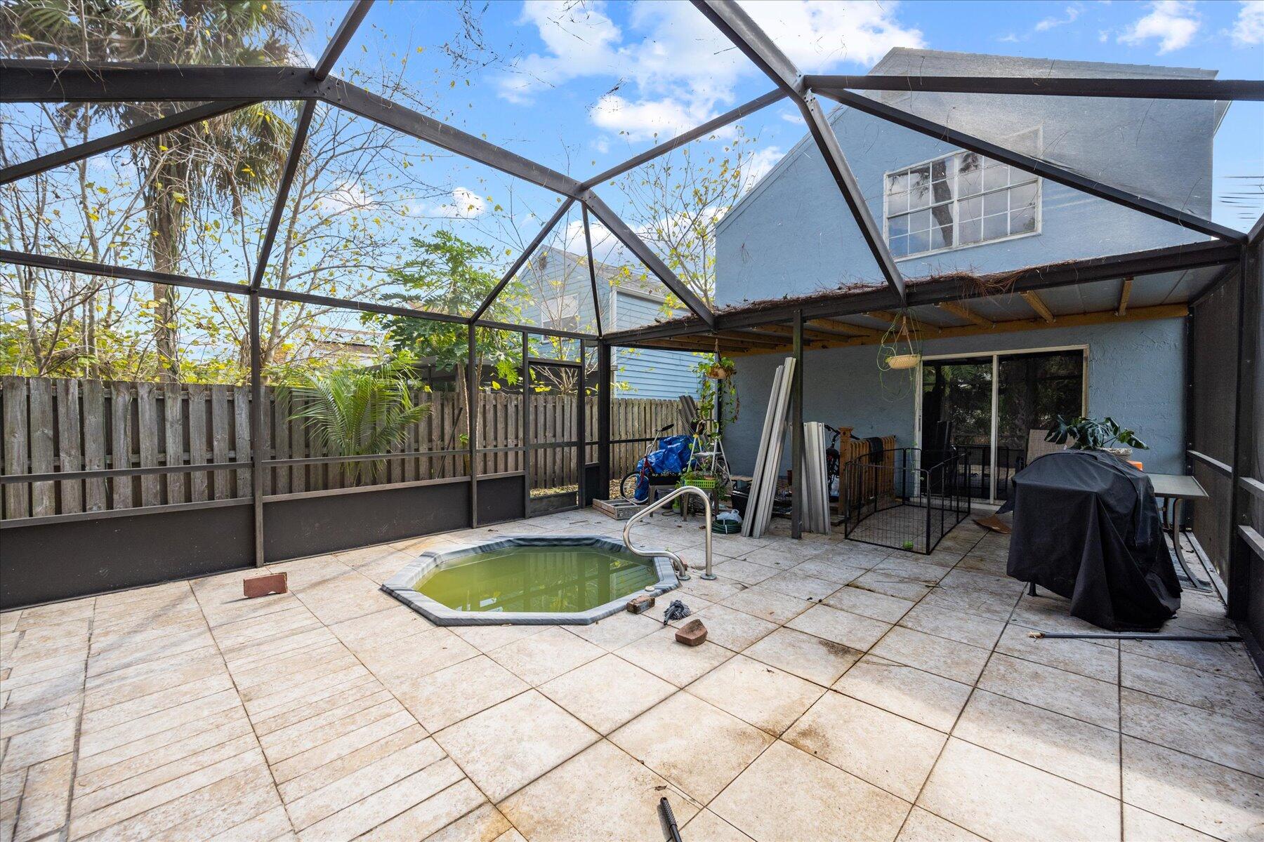 This property is now back on the market due to buyers financing. This home boasts fresh paint, tile flooring, new A/C handler installed in 2021 and water heater in 2019. Explore the updated kitchen, featuring white shaker cabinets, quartz countertops, and newer stainless steel appliances.Enjoy 4 bright and spacious bedrooms, including 2 master suites(1 on main floor), both with en-suite bathrooms, complete with a shower/tub combo and elegant modern vanities. Each additional bedroom is designed for comfort and privacy, providing ample space for family or guests. Step outside to discover your very own fenced in and screened backyard oasis, for maximum privacy. Close proximity to shopping, dining, beaches, and entertainment. Easy commuting with major highways and short drive to PBI Airport