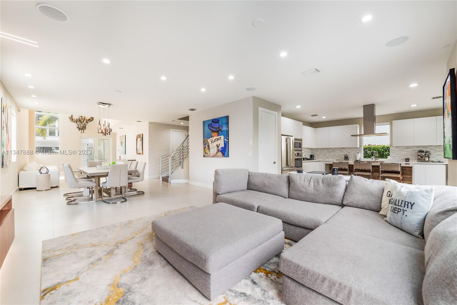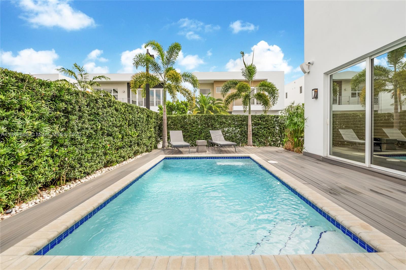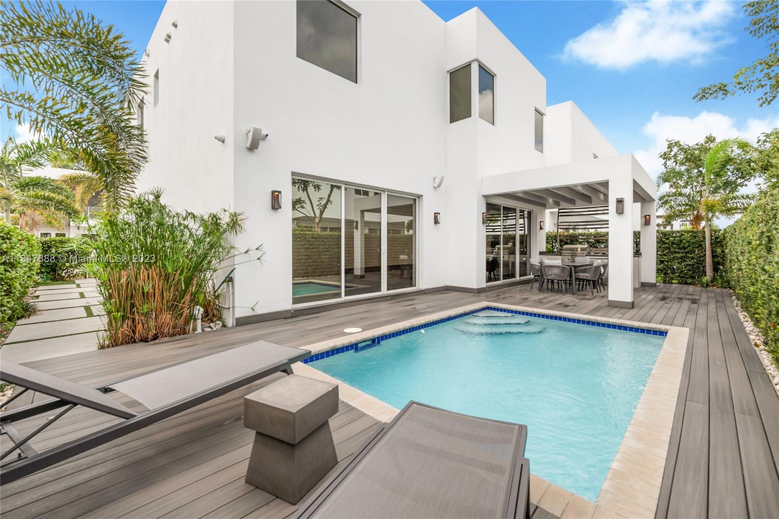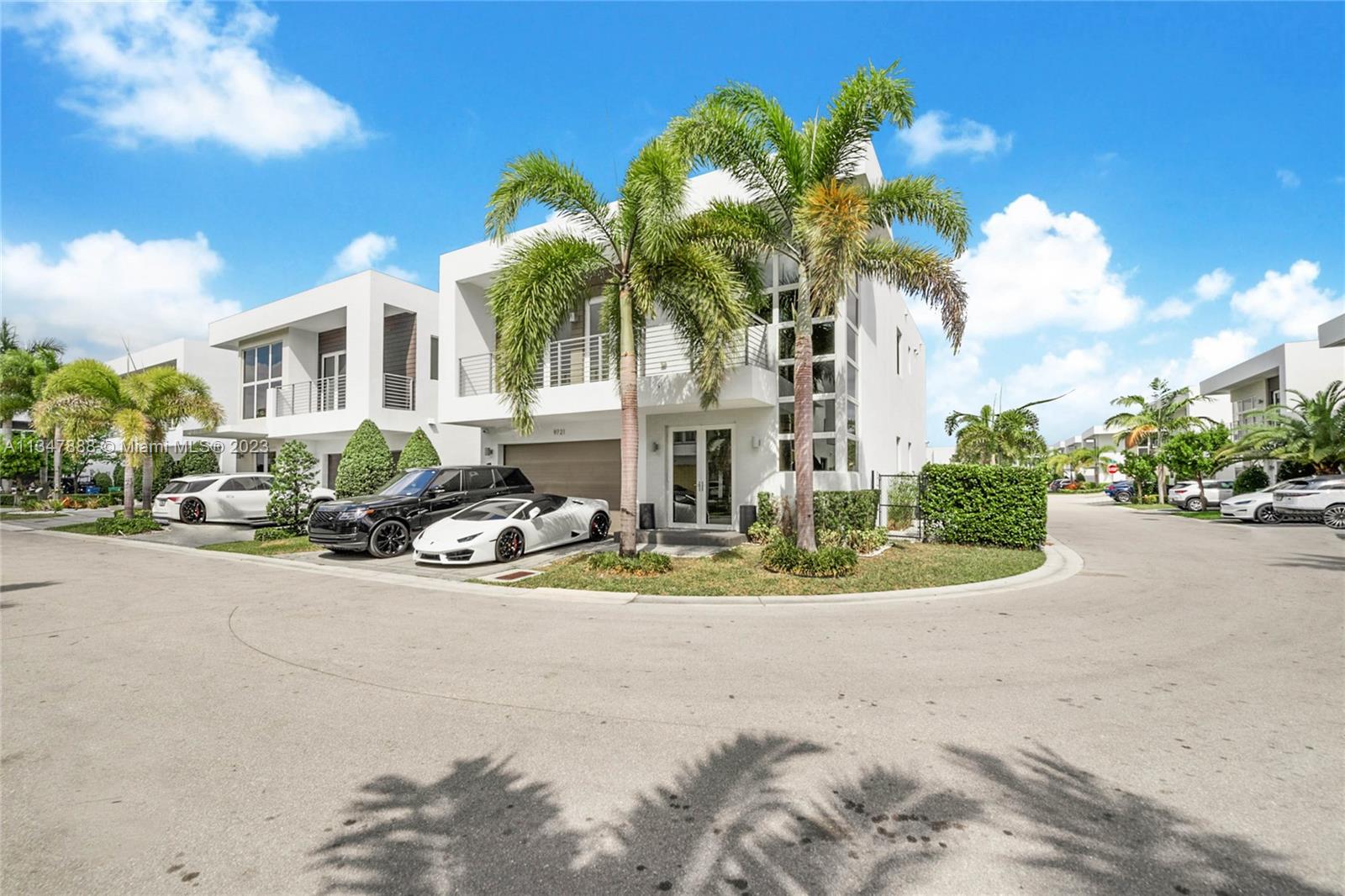 Immaculate turnkey corner lot home nestled within the highly sought-after gated community of Modern 45 located in the beautiful city of Doral, Fl. This contemporary 5 bed, 4 bath two story home boasts many upgrades and bonus features that makes it stand out from the rest. The interior features 24 foot foyer ceilings, large 30x30 porcelain tiles and hardwood flooring, stunning custom media center, state of the art kitchen with high-end stainless steel Viking/Bosch appliances including a Lexington gas range, new high-end GE washer/dryer, completely upgraded master bathroom with jet tub, custom wallpaper. **BONUS: If sold at asking price only, Seller will include ALL furniture, TV's and full-on professional $30k Foresight golf simulator setup in the air-conditioned two car garage.