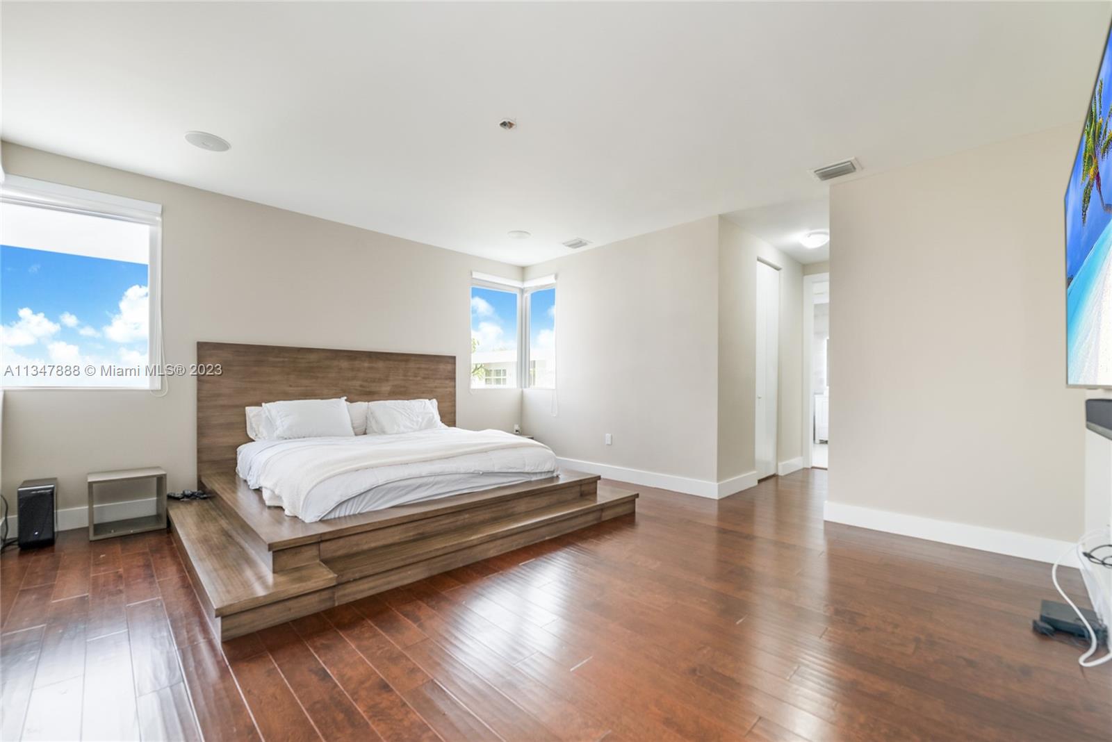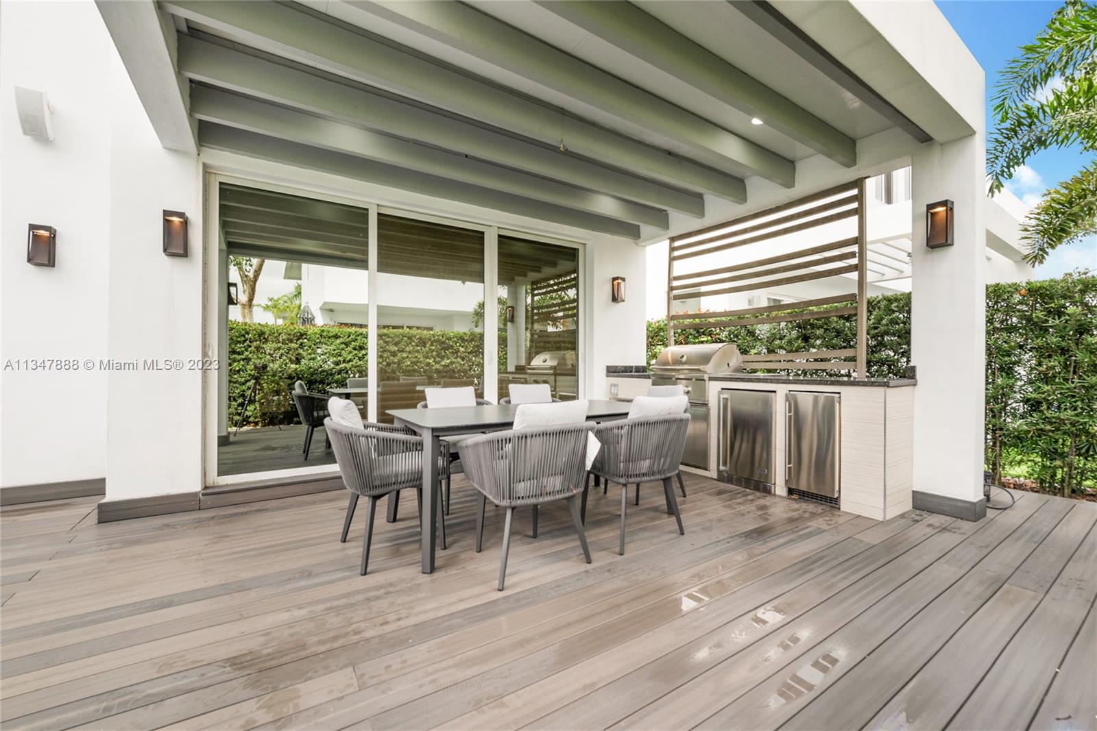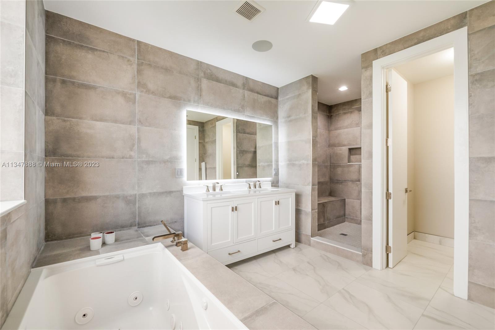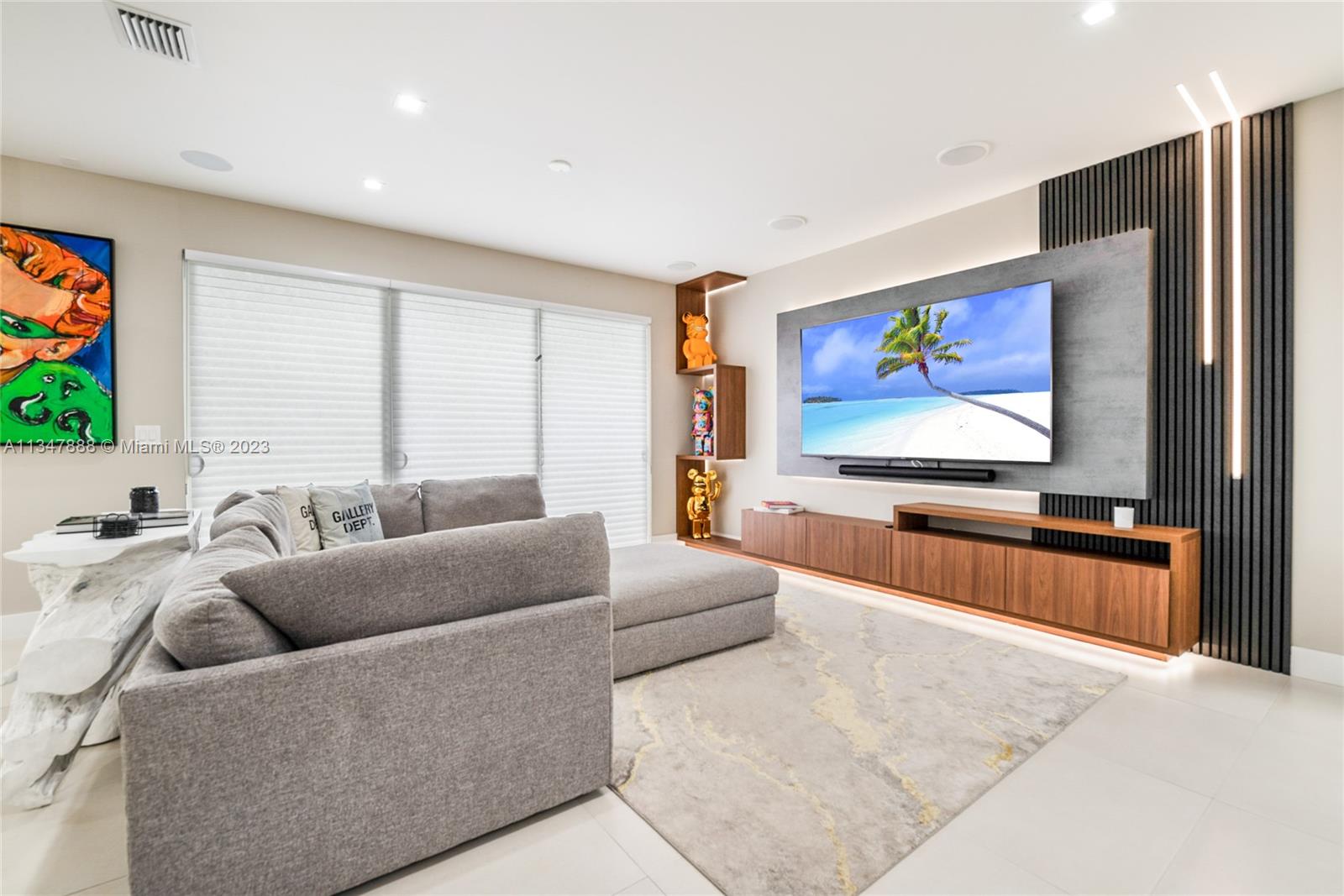 Immaculate turnkey corner lot home nestled within the highly sought-after gated community of Modern 45 located in the beautiful city of Doral, Fl. This contemporary 5 bed, 4 bath two story home boasts many upgrades and bonus features that makes it stand out from the rest. The interior features 24 foot foyer ceilings, large 30x30 porcelain tiles and hardwood flooring, stunning custom media center, state of the art kitchen with high-end stainless steel Viking/Bosch appliances including a Lexington gas range, new high-end GE washer/dryer, completely upgraded master bathroom with jet tub, custom wallpaper. **BONUS: If sold at asking price only, Seller will include ALL furniture, TV's and full-on professional $30k Foresight golf simulator setup in the air-conditioned two car garage.