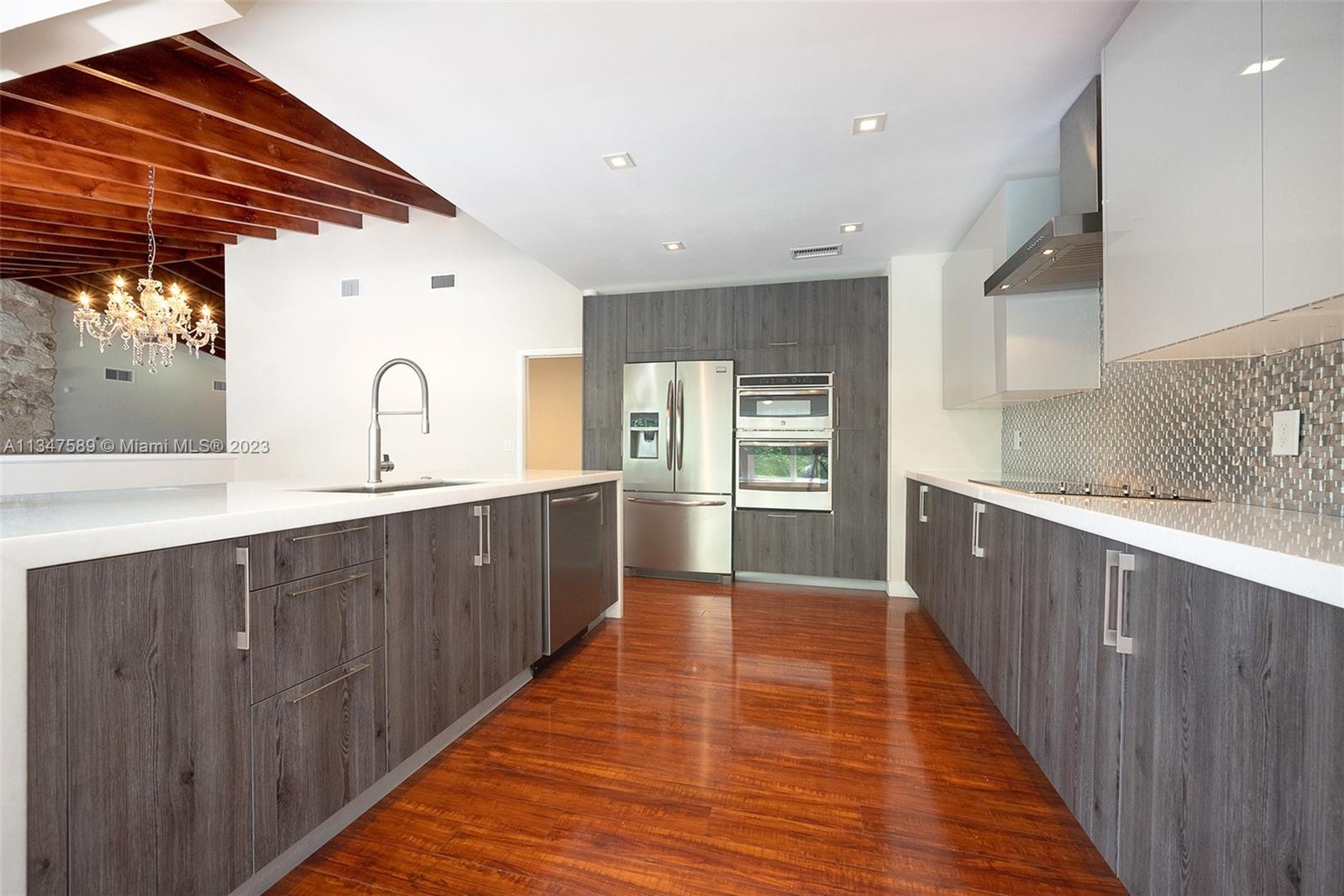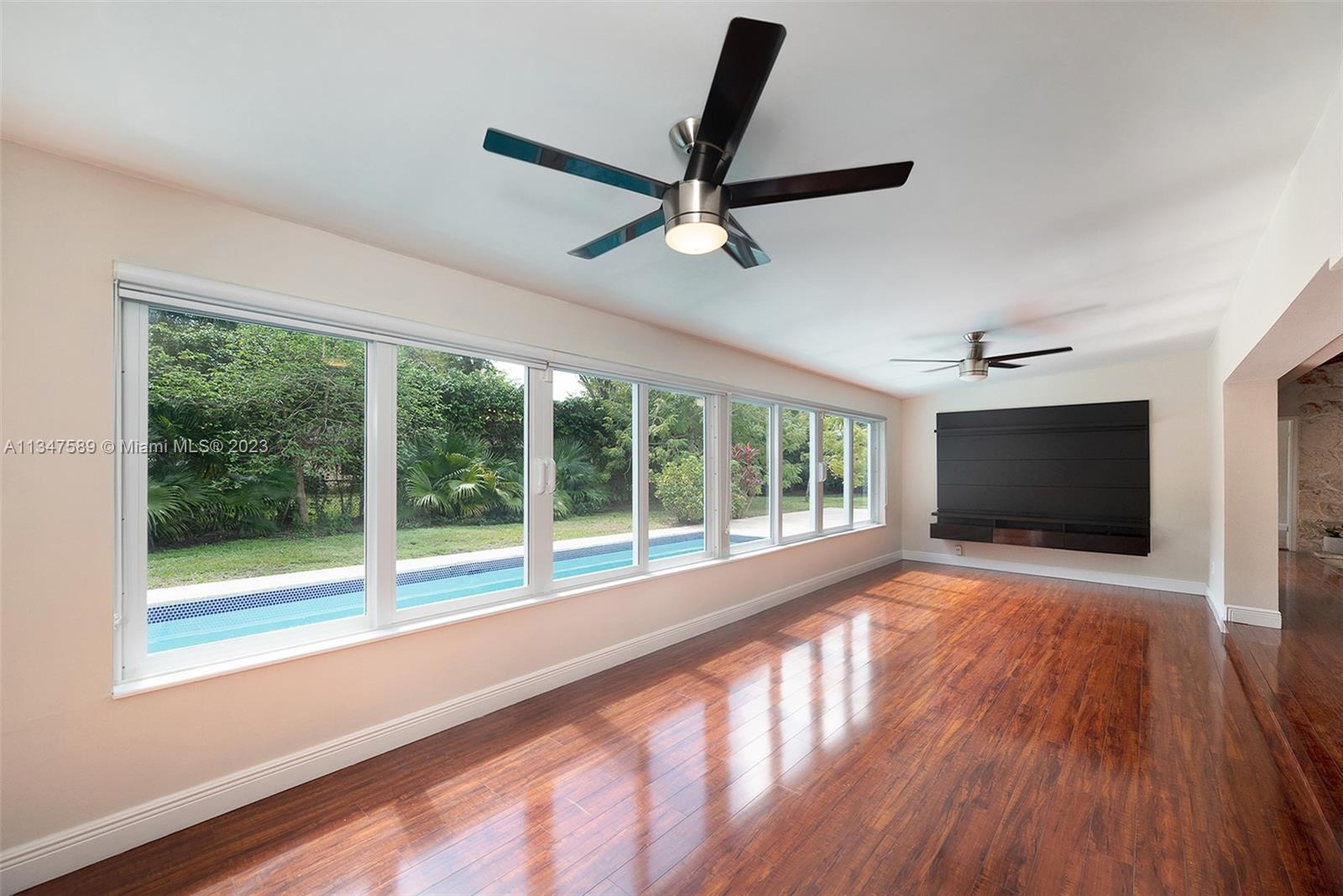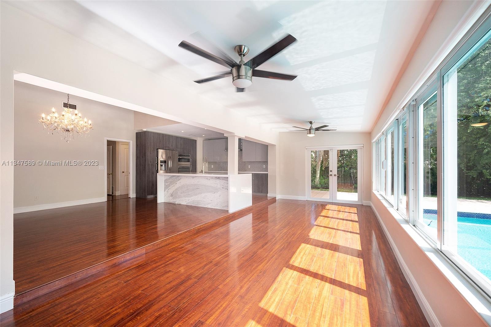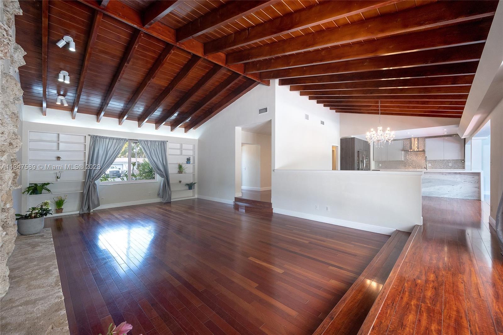 Come and see this fantastic home in a great school district. Spacious and designed living area with large impact windows that offer incredible views of the backyard and pool. The formal dining room with exposed beam ceilings and wood flooring is perfect for hosting gatherings with friends or family. The bedrooms have ample storage, and the kitchen is completely renovated, featuring marble countertops, stainless appliances, and plenty of cabinet and drawer space. There is also a 2 car garage for all your storage needs.
