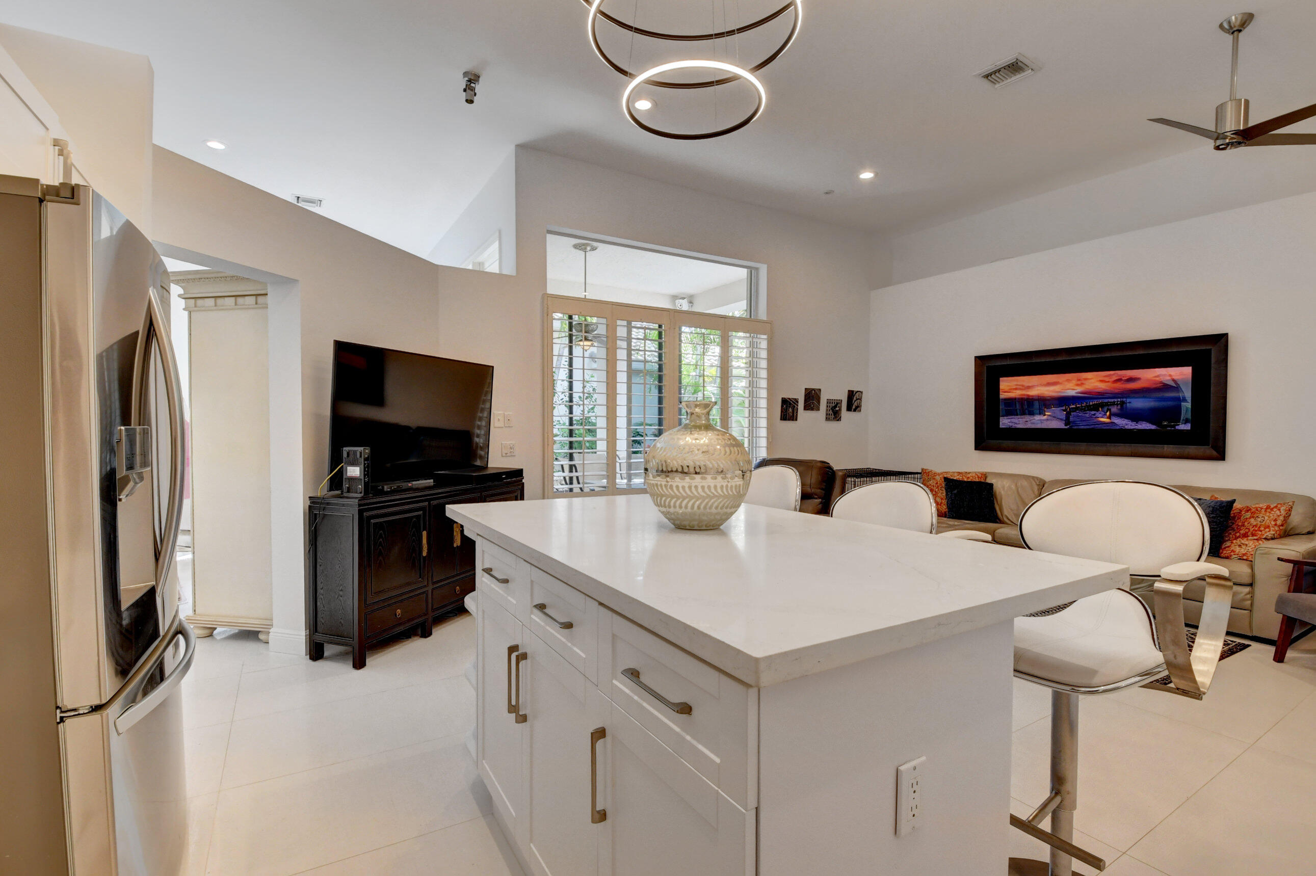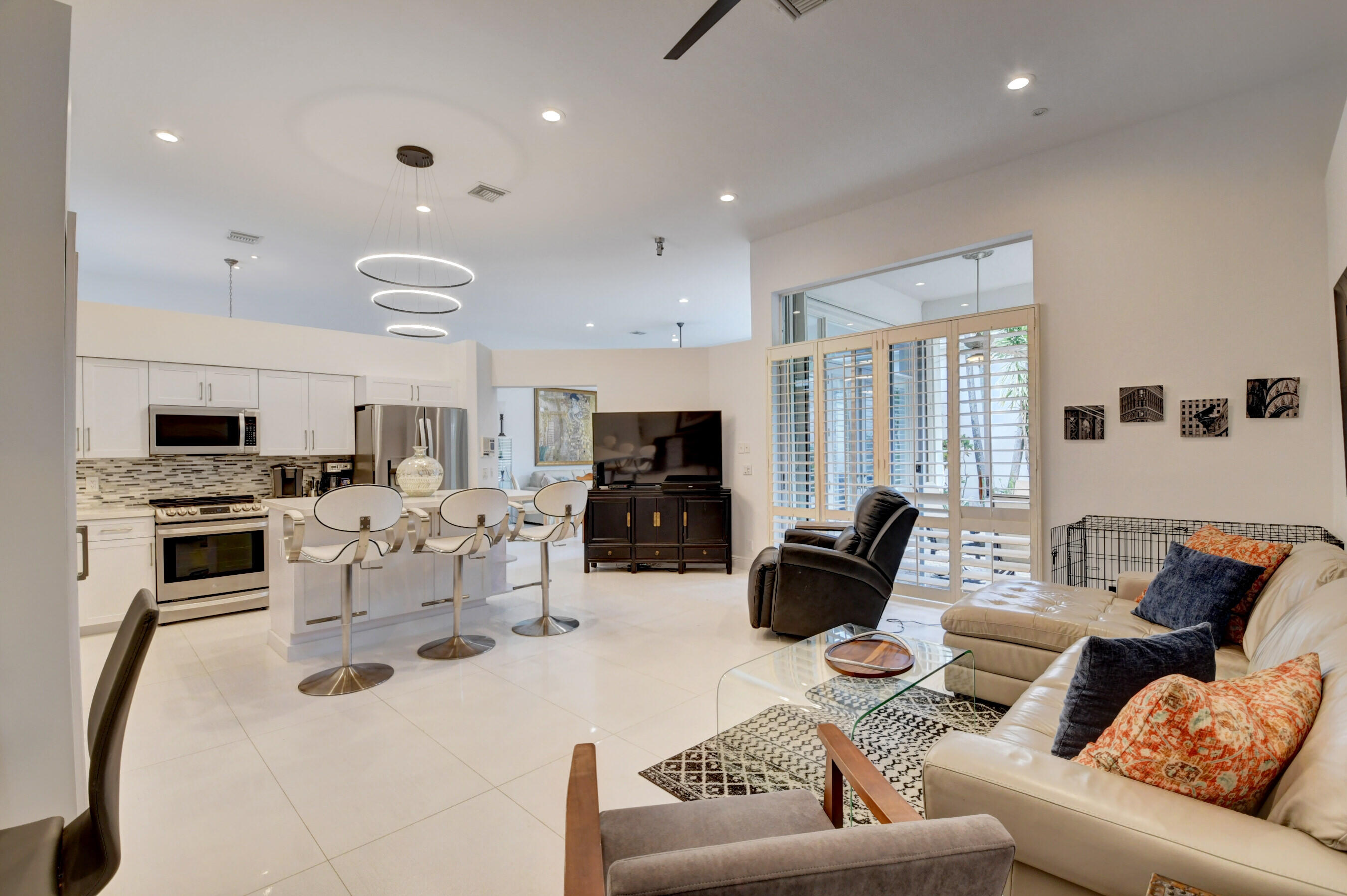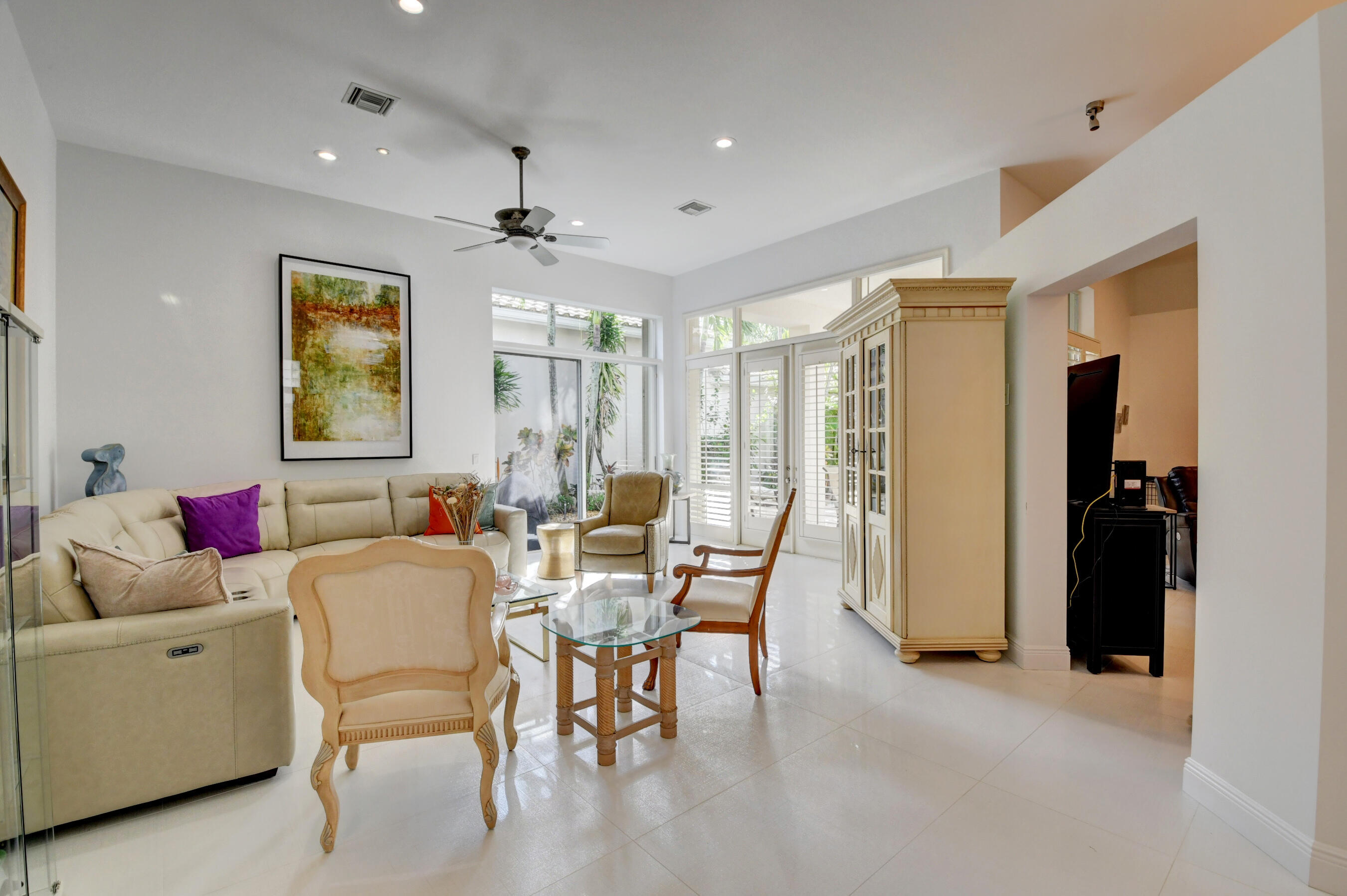 Located in the Banyans of Broken Sound, this renovated 3 bedroom 2 bath courtyard home has been created into a masterpiece with sophisticated modern elegance. This ever-so-spacious home has a wonderfully open concept floor plan, bright & light newly painted interior & exterior, porcelain tile flooring, smooth walls, plus direct courtyard access from every bedroom. The chefs kitchen blends beauty and functionality with quartz counters, center island and stainless appliances. You'll love the master suite which includes wood floors, walk-in closet, dual sinks, frameless shower and stunning wood vanity. The courtyard offers the perfect outdoor haven for total privacy, fresh air and relaxing under the covered patio, or enjoying the Florida sunshine in the heated pool.