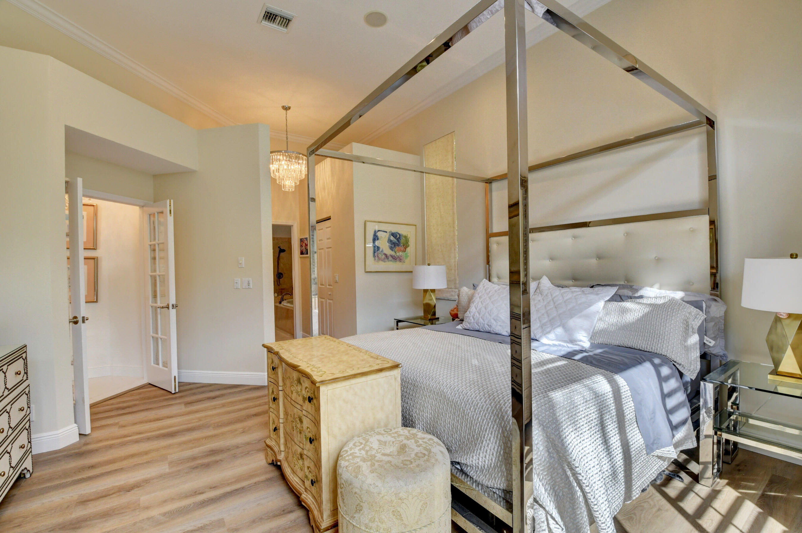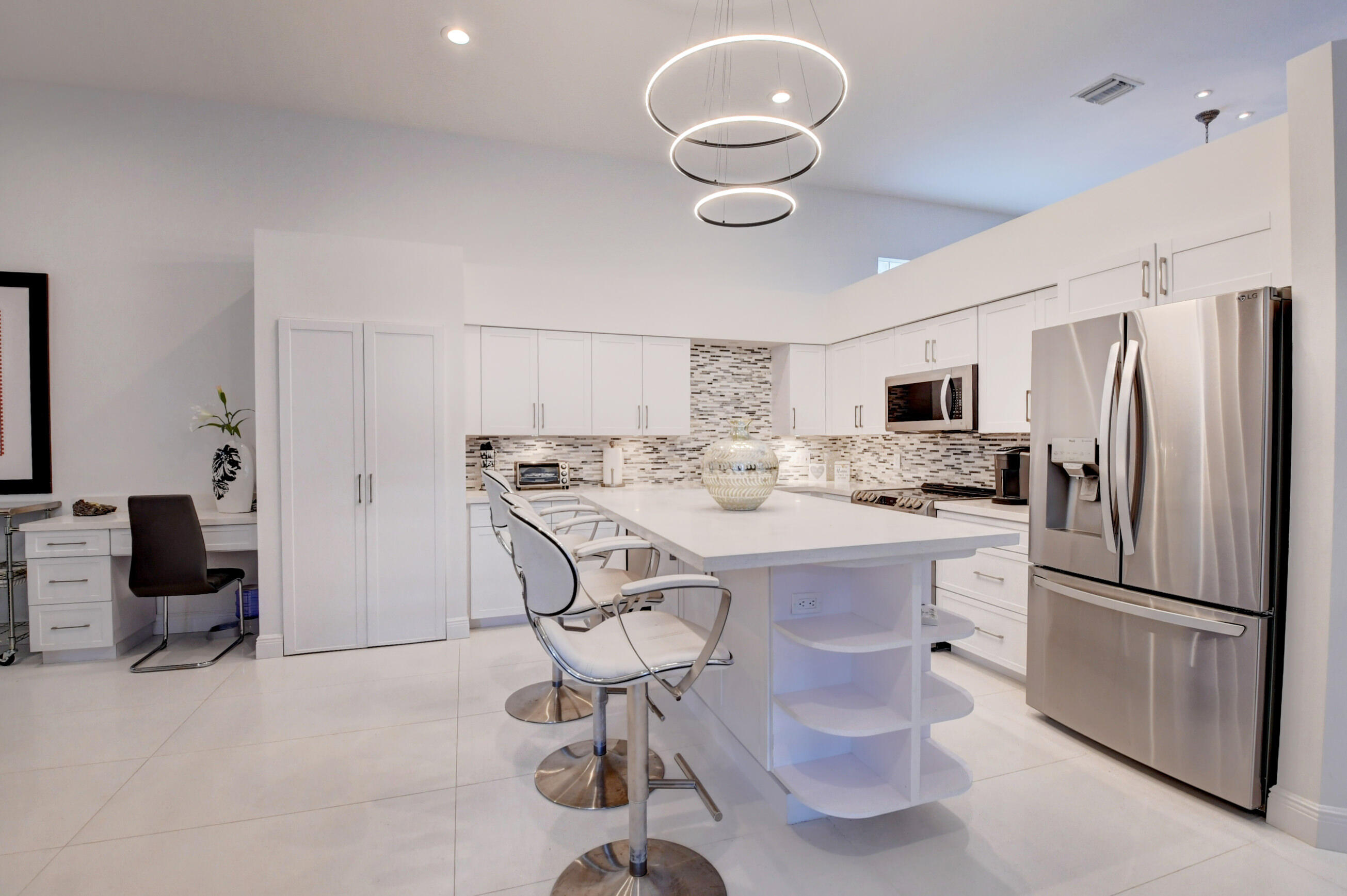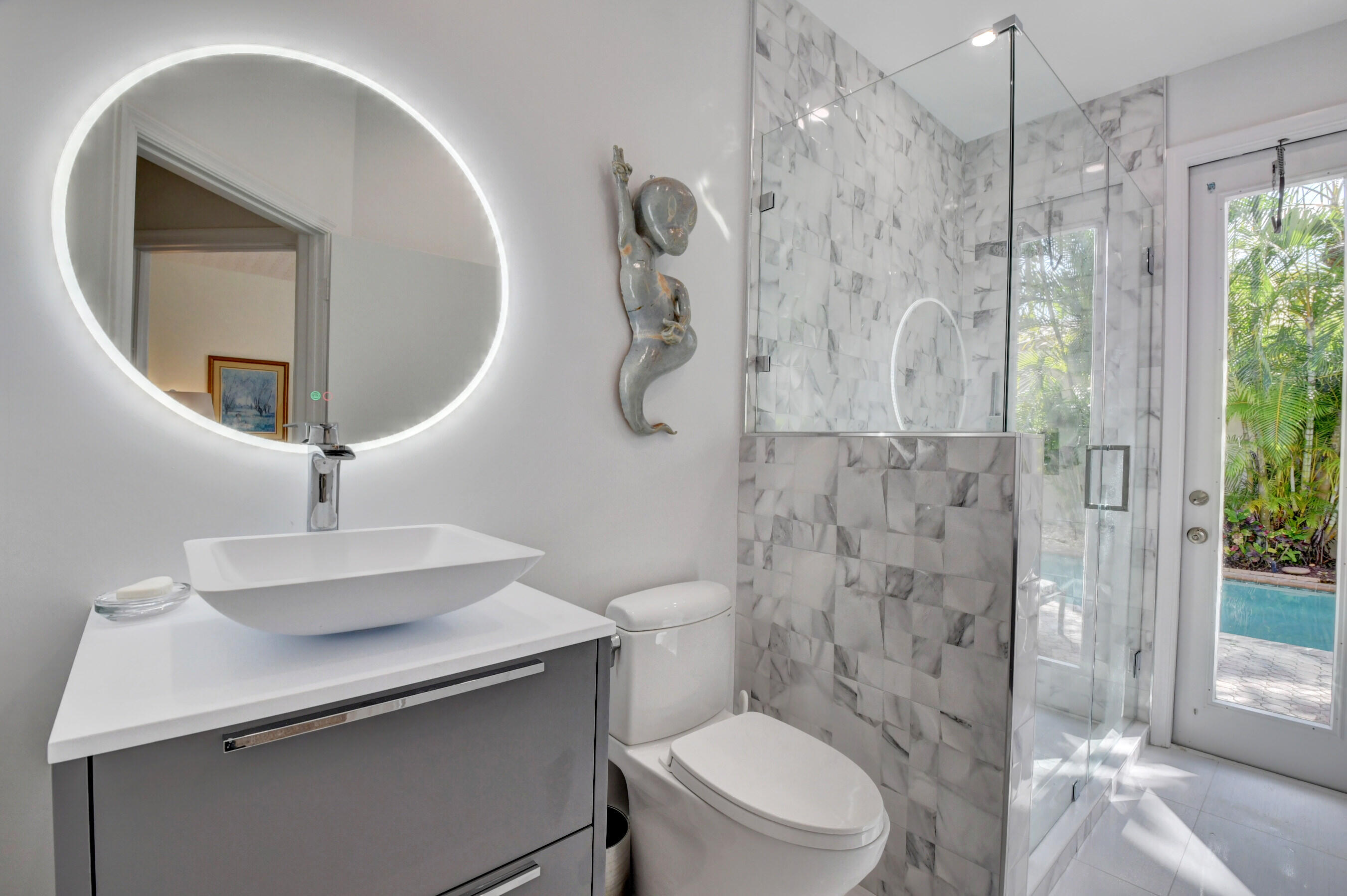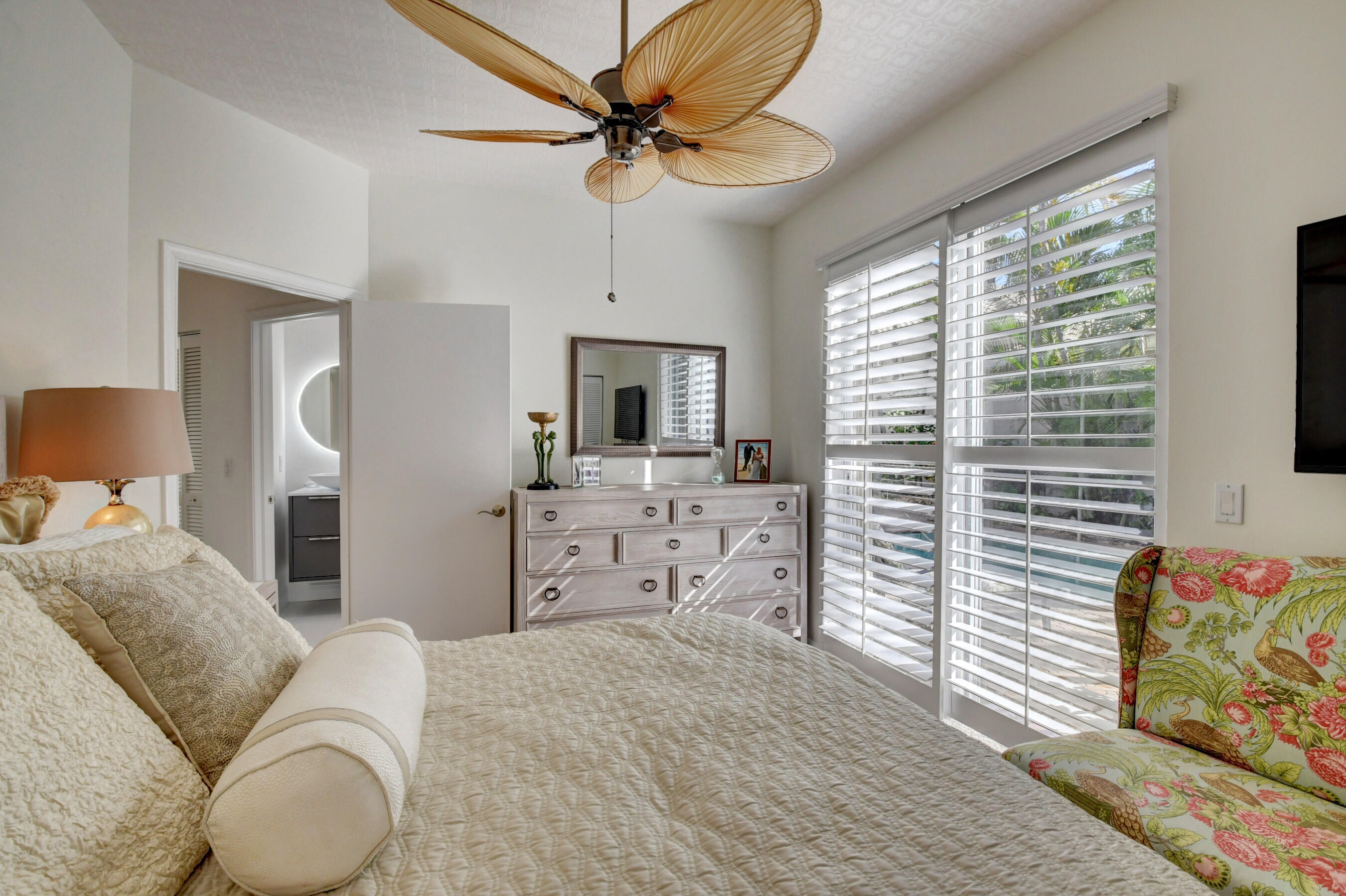 Located in the Banyans of Broken Sound, this renovated 3 bedroom 2 bath courtyard home has been created into a masterpiece with sophisticated modern elegance. This ever-so-spacious home has a wonderfully open concept floor plan, bright & light newly painted interior & exterior, porcelain tile flooring, smooth walls, plus direct courtyard access from every bedroom. The chefs kitchen blends beauty and functionality with quartz counters, center island and stainless appliances. You'll love the master suite which includes wood floors, walk-in closet, dual sinks, frameless shower and stunning wood vanity. The courtyard offers the perfect outdoor haven for total privacy, fresh air and relaxing under the covered patio, or enjoying the Florida sunshine in the heated pool.