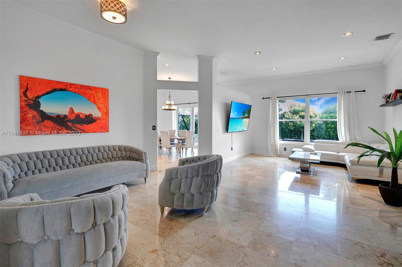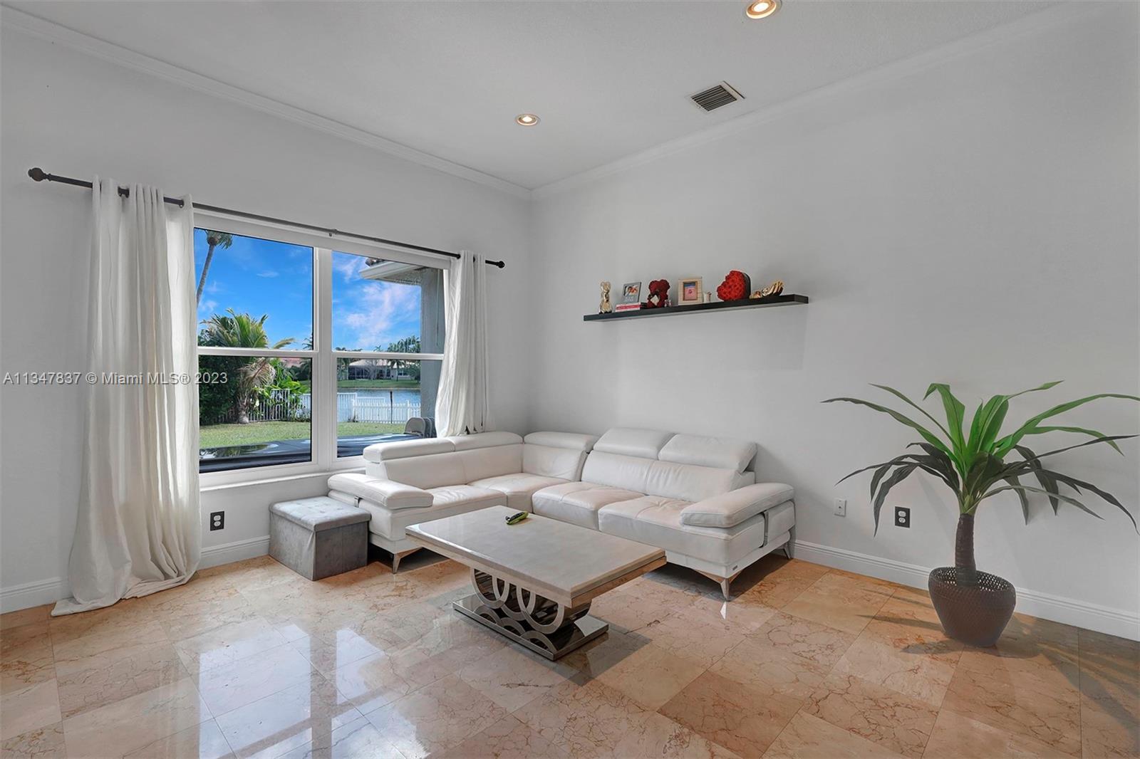Make yourself at home in this spectacular Newport model in upscale Pembroke Falls. Panoramic Lakeview from main living areas, oversize corner lot, circular driveway, Marble floors throughout except for bedrooms, split floors plan, vaulted ceiling, crown moldings, 24" polished Crema Marfil marble floors throughout and wood in bedroom. Kitchen with granite counter tops and wood cabinets, stainless appliances. Huge master suite with jacuzzi tub and sep shower. Cover terrace overlooking the lake. Great for entertaining! Resort-Styled Clubhouse!!