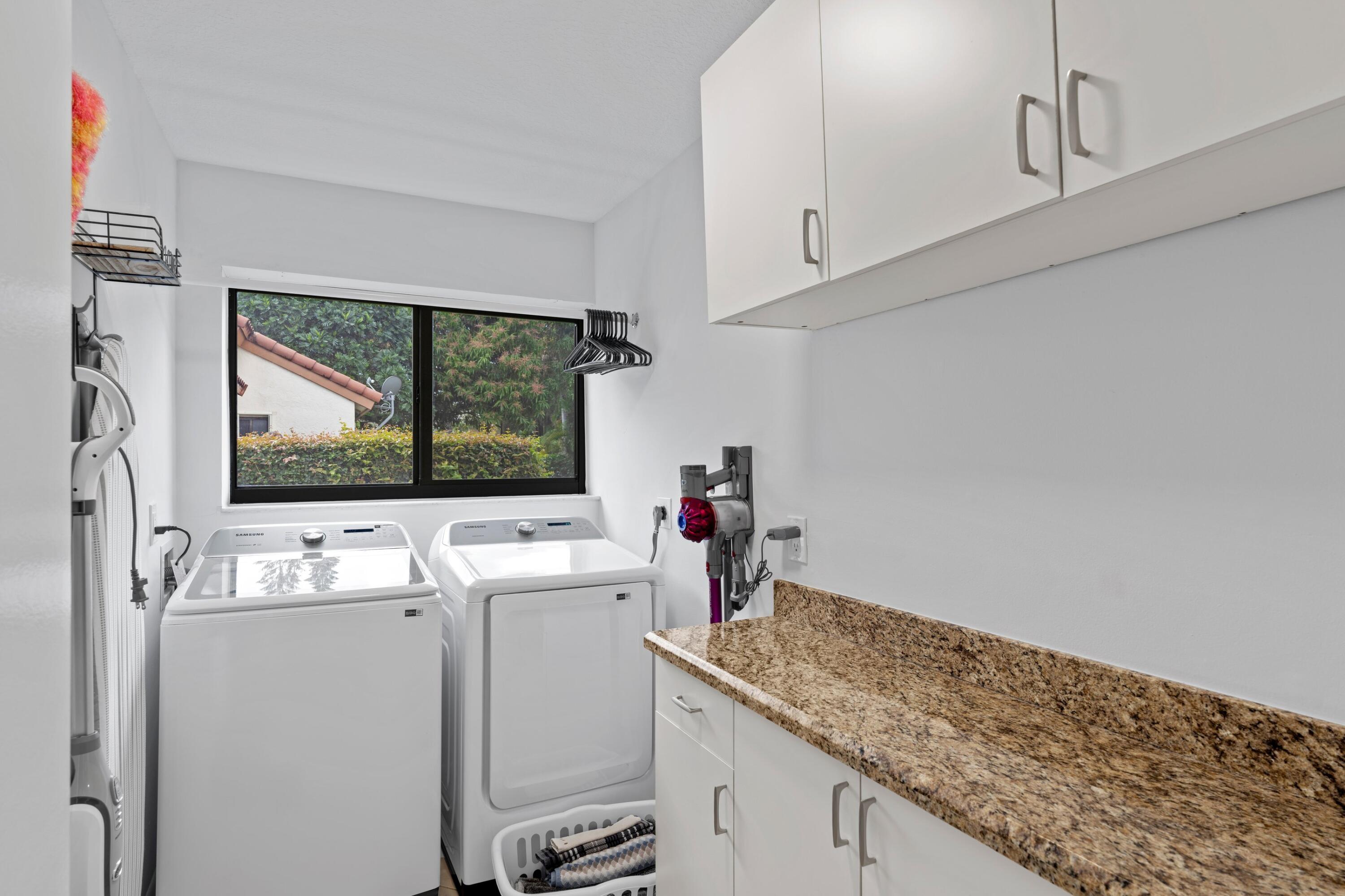 Beautiful One-Story Home on Cul-de-sac in Boca Raton's Desirable Waterside Gated Community for any age! BOAT SLIPS AVAILABLE - OCEAN ACCESS! Bright Open Floor Plan | Dramatic Vaulted Ceilings | Large Foyer | Impact Skylights. Eat-In Kitchen, Custom White Wood Cabinets, Granite Counters, S/S Appliances. Large Sliding Doors to Screened in Patio & Custom Designed Pool! Impressive Master Bedroom with Vaulted Ceilings, Access to Patio & Walk-In Closet l Ensuite with Dual Sink Granite Vanity, Soaking Tub, Oversized Glass Shower, & Private Cabana Bath! NEW Carpets! ALL HURRICANE IMPACT DOORS/WINDOWS 2022 | AC DUCT WORK 2022 | ATTIC INSULATION 2022 | A/C 2022 | W/D 2022 | Stunning Gardens Views & Landscaping! One of only 5 houses in the community that has private pool.