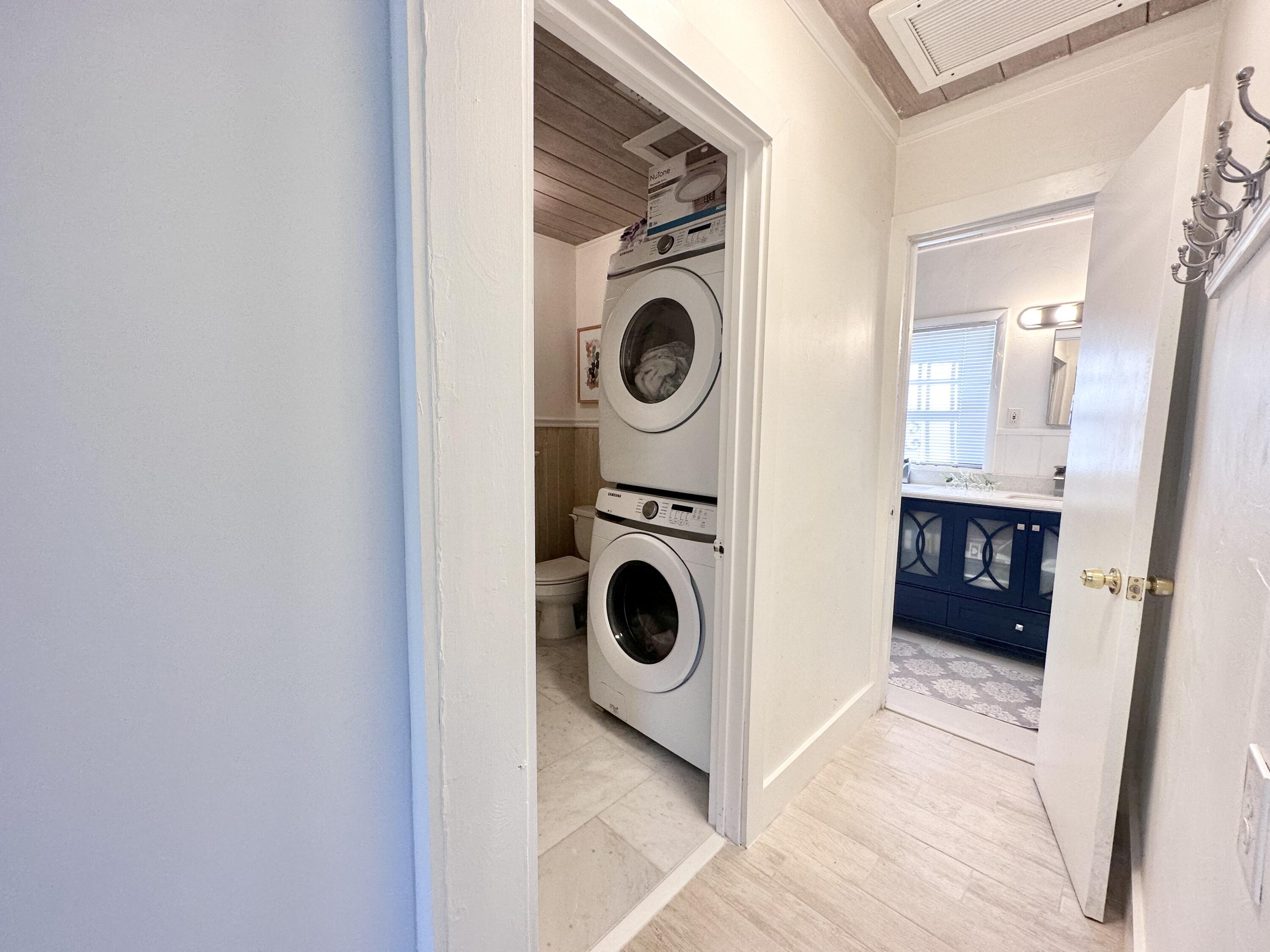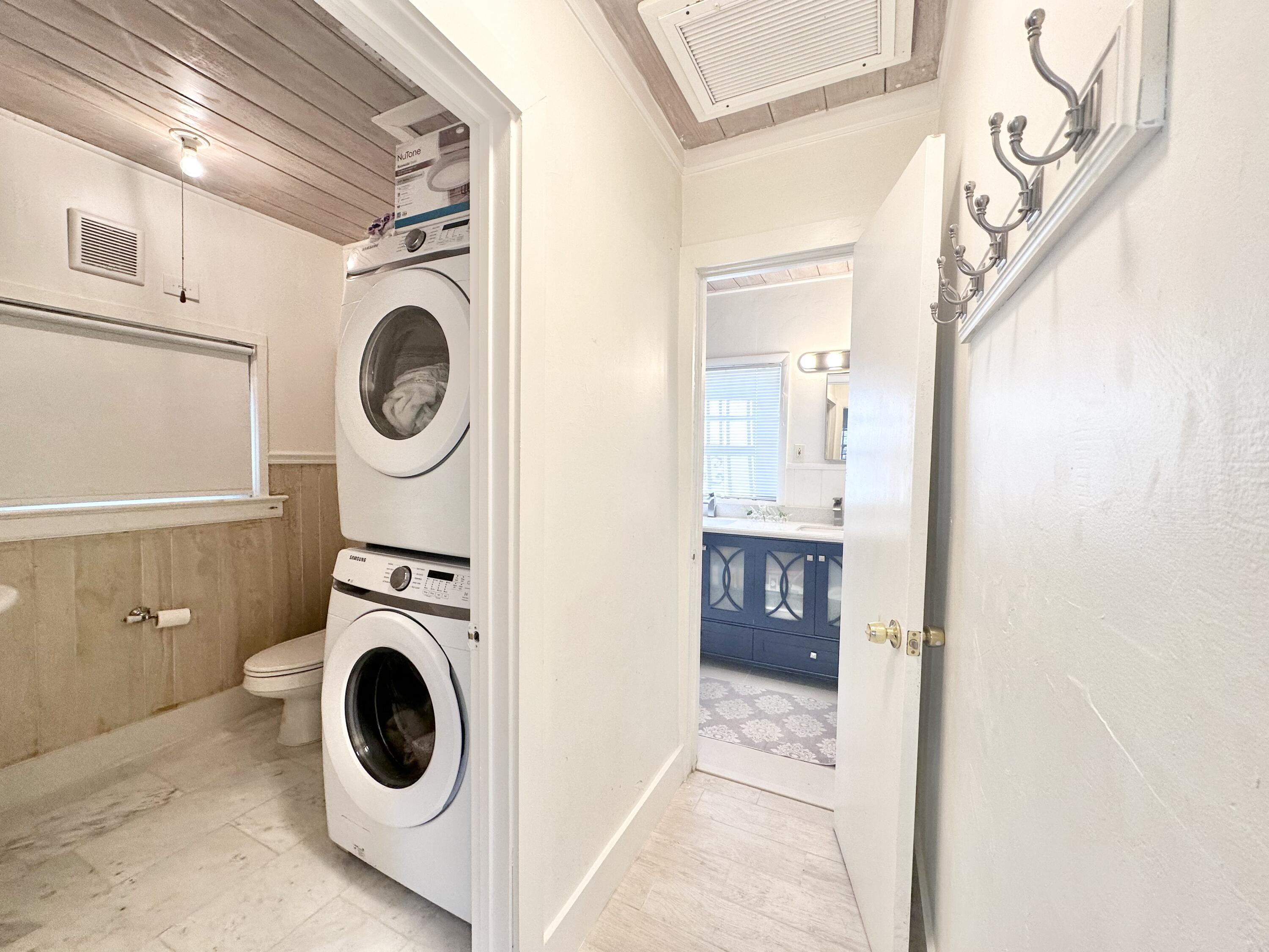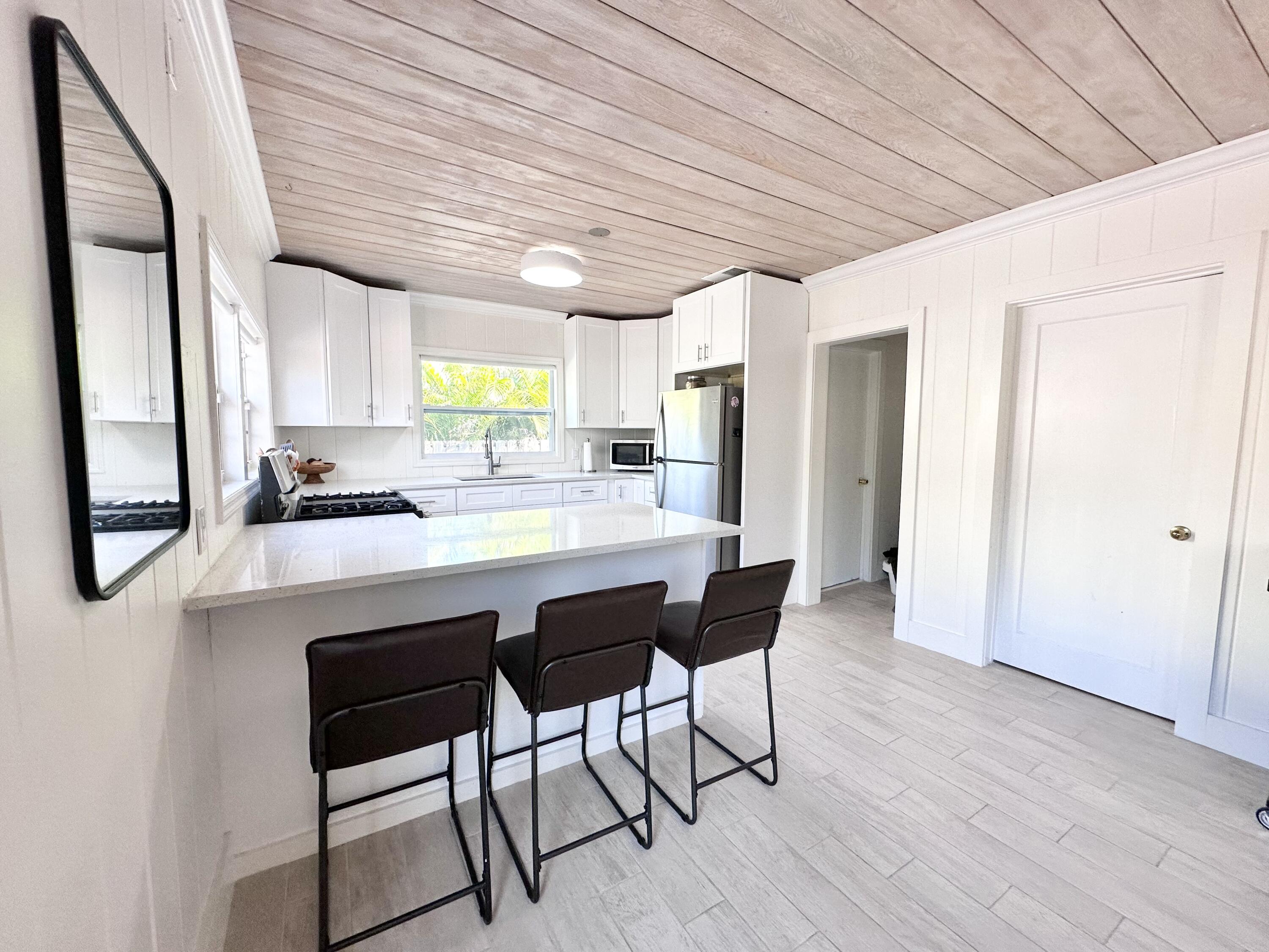 Prime opportunity to build the home of your dreams in a truly one of a kind neighborhood - historic Old Northwood. Set at the back of the property this charming 2 bedroom, 1.5 half bathroom bungalow leaves plenty of space to add a new home to the property and will be perfect for guests or to rent out for extra income after you build. Enjoy the completely updated kitchen with generous counter space and gas stove. Large windows provide an abundance of light to the new tile and marble floors throughout the home. The full bathroom has been recently updated with a new vanity and flooring. Outside the expansive deck is perfect for entertaining and the driveway provides off street parking. Building plans must be approved by the City of West Palm Beach. New roof in 2019.