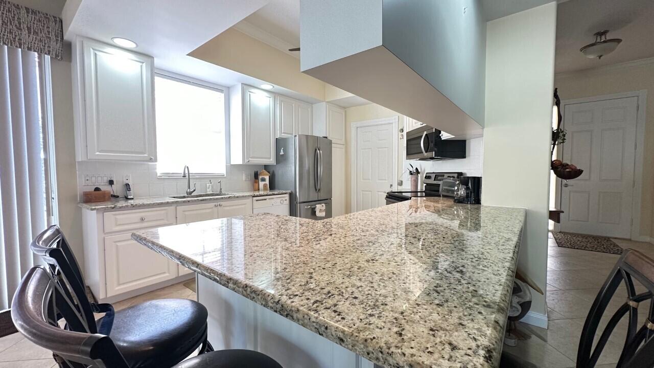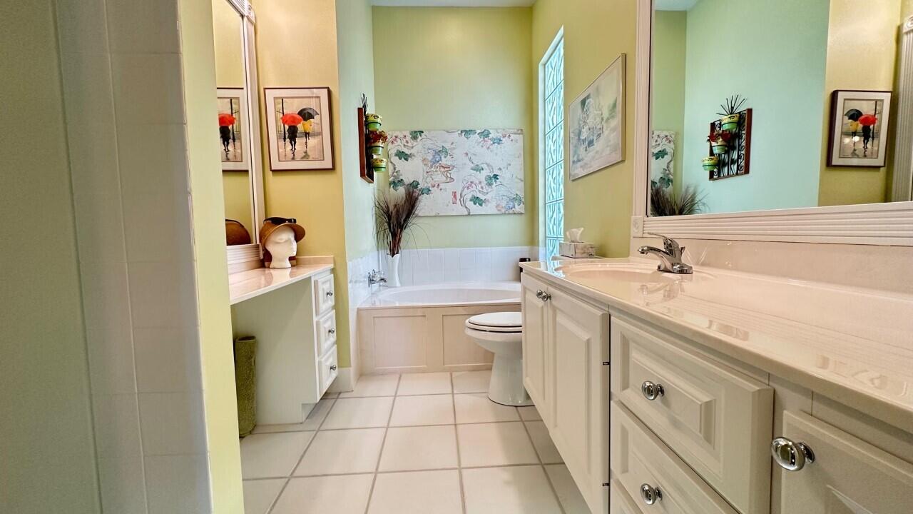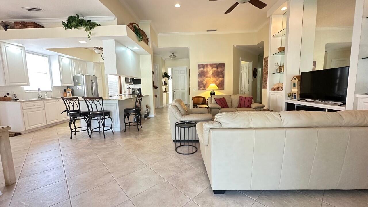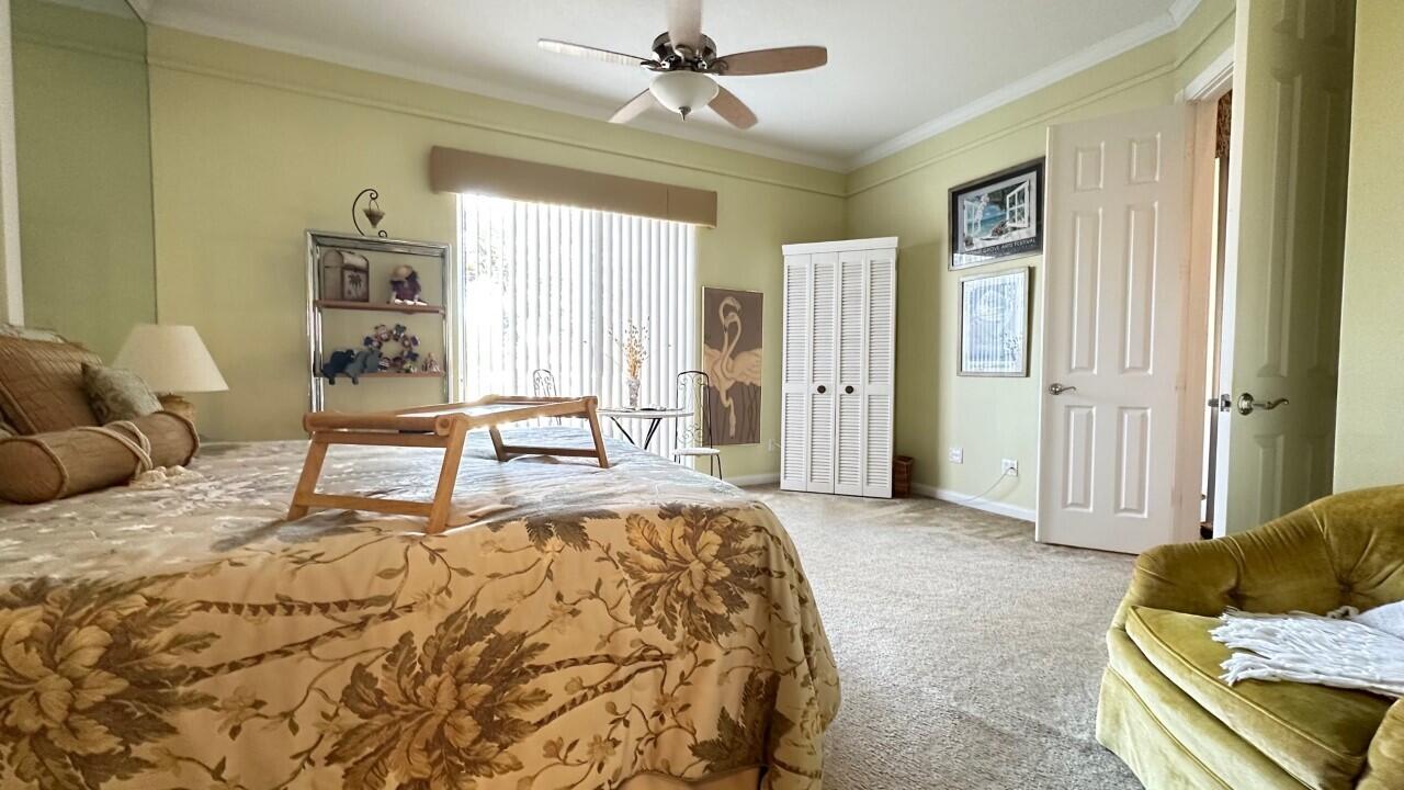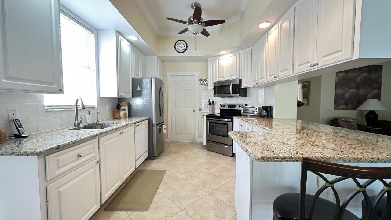 Enjoy the sunrise from an east facing garden overlooking a tranquil lake setting.This well maintained Oakmont model boasts ceramic tile through the main living areas, wood-like flooring in the den and carpet in bedrooms. The Great Room has stunning 12 foot ceilings, floor to ceiling built in wall unit and combines the kitchen, dining and living spaces-excellent for entertaining. The kitchen has updated appliances and granite countertops. The den has built in desk and shelving, The primary bedroom has crown molding, generous closet space plus a double bathroom arrangement - large walk in shower, Roman tub with Jacuzzi,two separate vanities. The guest bedrooms are split from the primary offering plenty of privacy.
