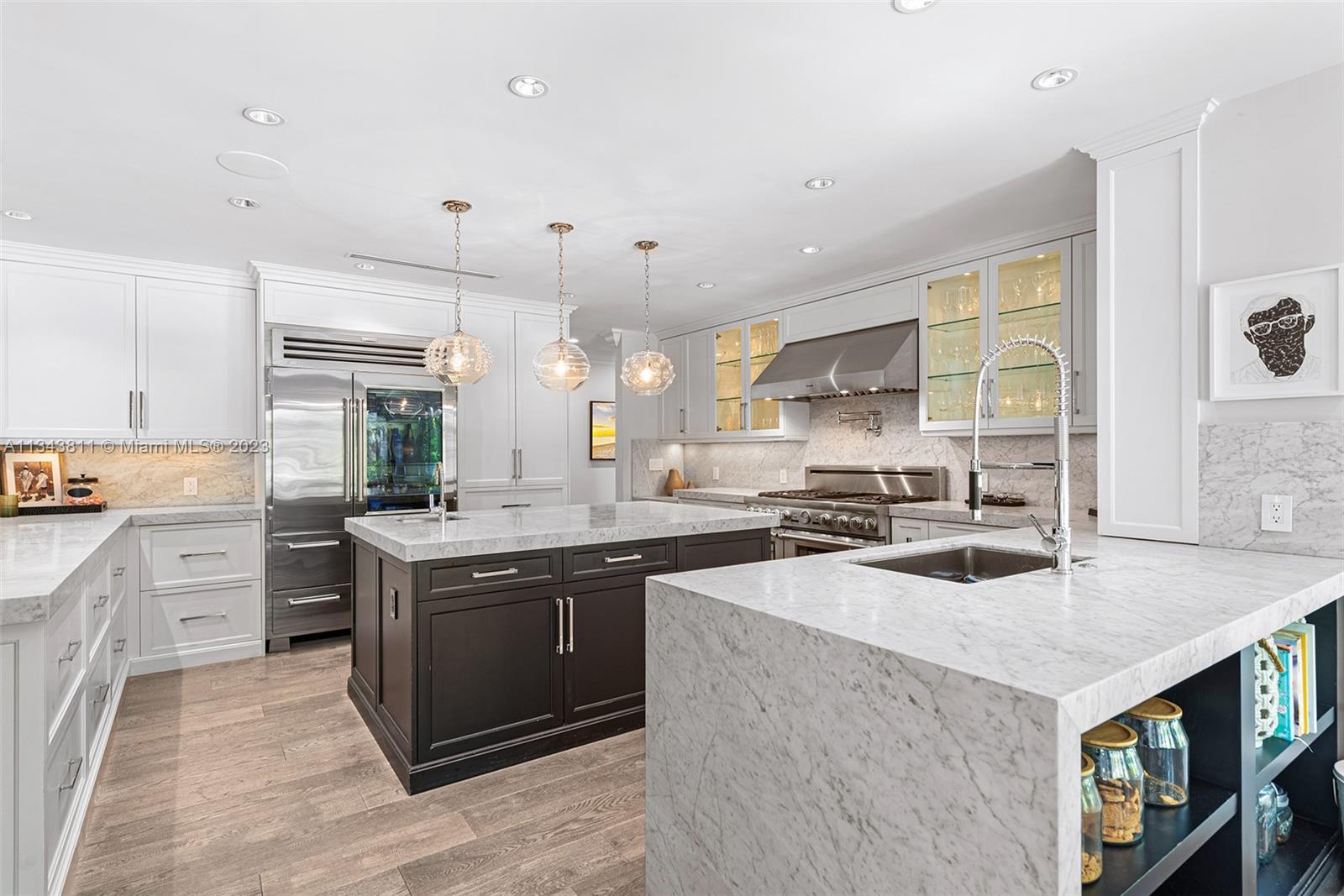Past the gates of treasured Hammock Lakes, at the end of one of Miami's most beautiful streets is a gated timelessly updated home whose beauty radiates from the inside out. Refined sophistication greets you in a formal foyer, coffered ceilings w/ inlaid moldings catch the eye, custom built-ins adorn the walls, oak wood floors cast a warm richness, and a flawless floor plan offers ease of living. Carrera marble chef's kitchen w Sub Zero fridge, Thermador appliances w gas range, designer lights, Dornbracht and Kohler fixtures, surround speakers, Control 4 system, dual high capacity wine fridges, marble baths & sumptuous primary suite are just the start. Outdoor updates include ipe deck, leathered marble summer kitchen, 1000 gallon buried generator, pickleball court, new front gate. Dreamy!