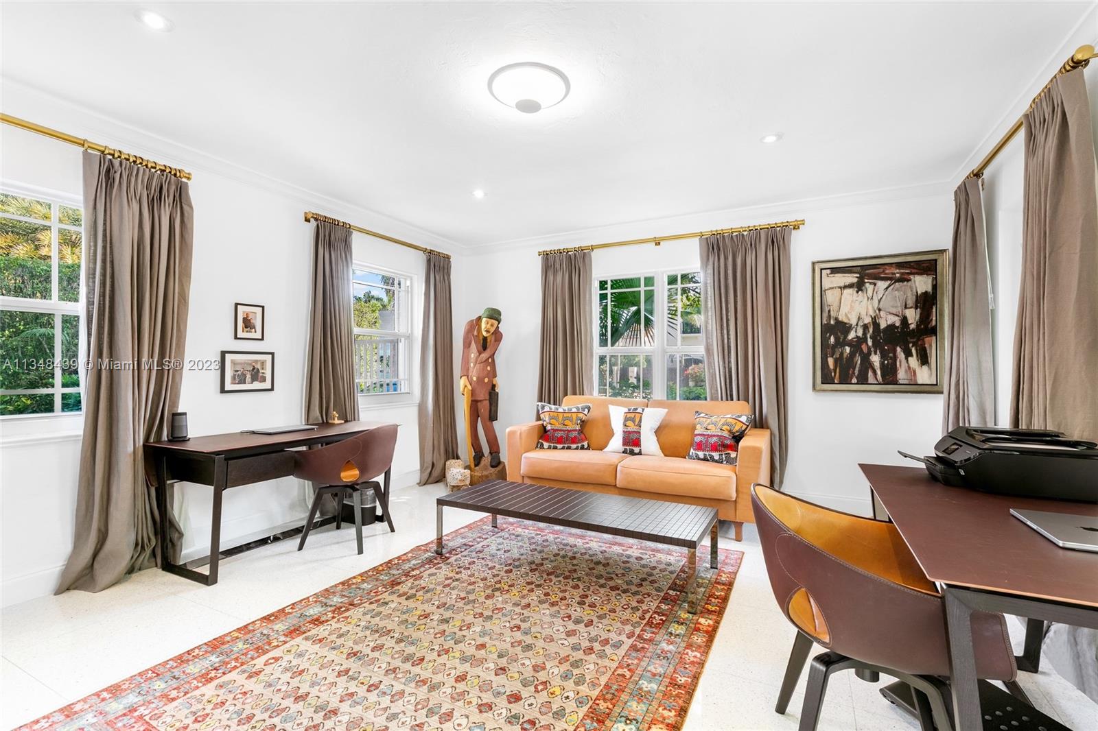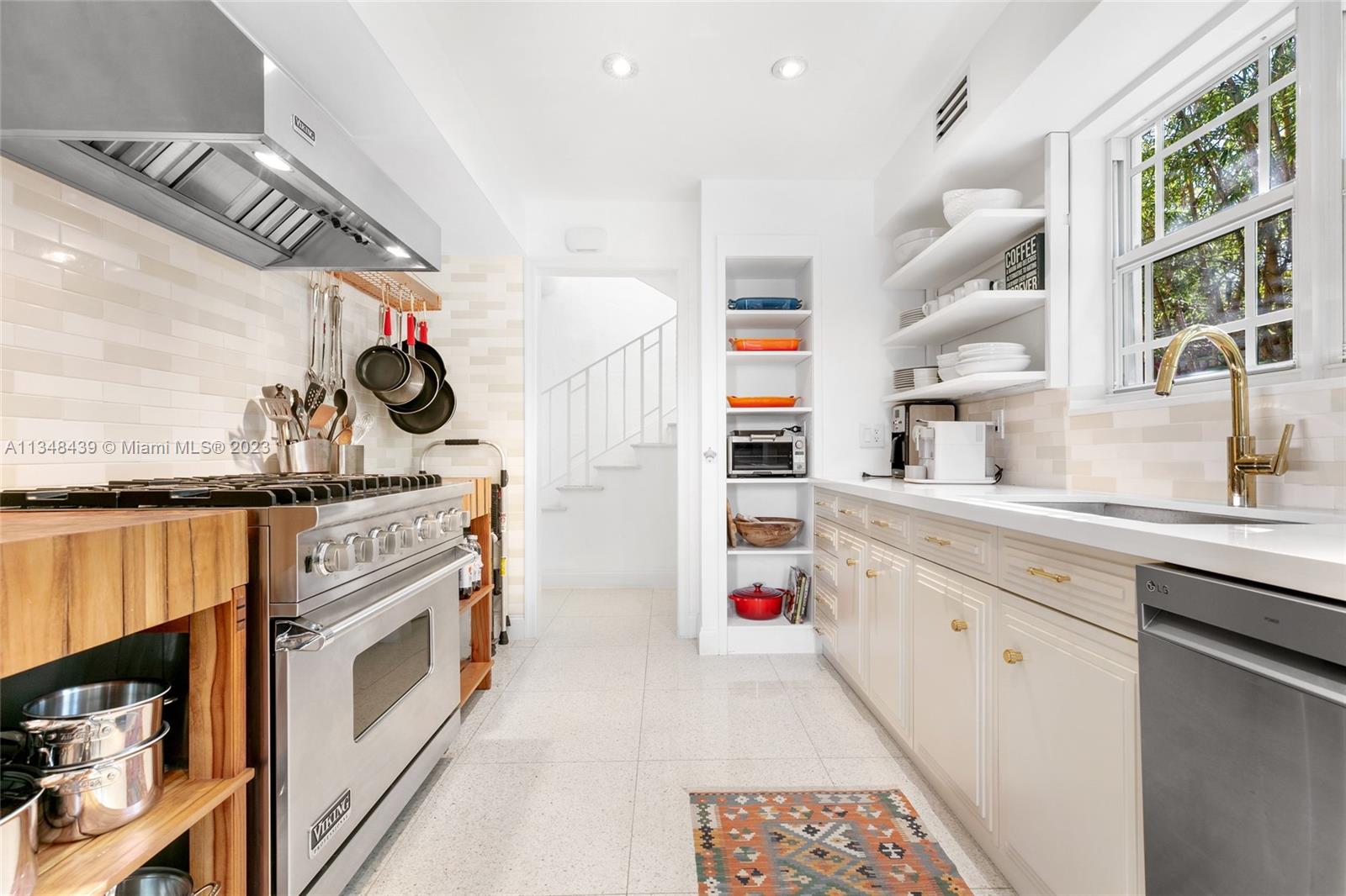 Tucked behind lush landscaping, this fully renovated Miami Beach Bungalow exudes charm & features vaulted ceilings, immaculate terrazzo floors, custom built-ins and abundant natural light through high impact floor-to-ceiling windows. A Gourmet kitchen has a Viking gas range stove & stunning white cabinetry. The home features Updated electric and plumbing as well as a brand new Roof. The ground floor primary suite has a large walk-in closet & spa-like bathroom w/ intricate tiles, free-standing tub & dual sinks. Enjoy a salt water pool & open patio which features French doors that lead into the dining room & access to the primary suite. 2 Car driveway w/ electric for charging. Walking distance to the trendiest shops, restaurants, Trader Joes, Fresh Market & fitness studios in Sunset Harbour.