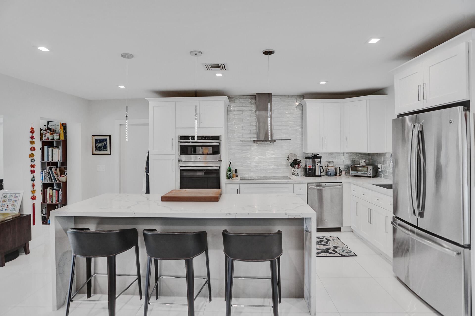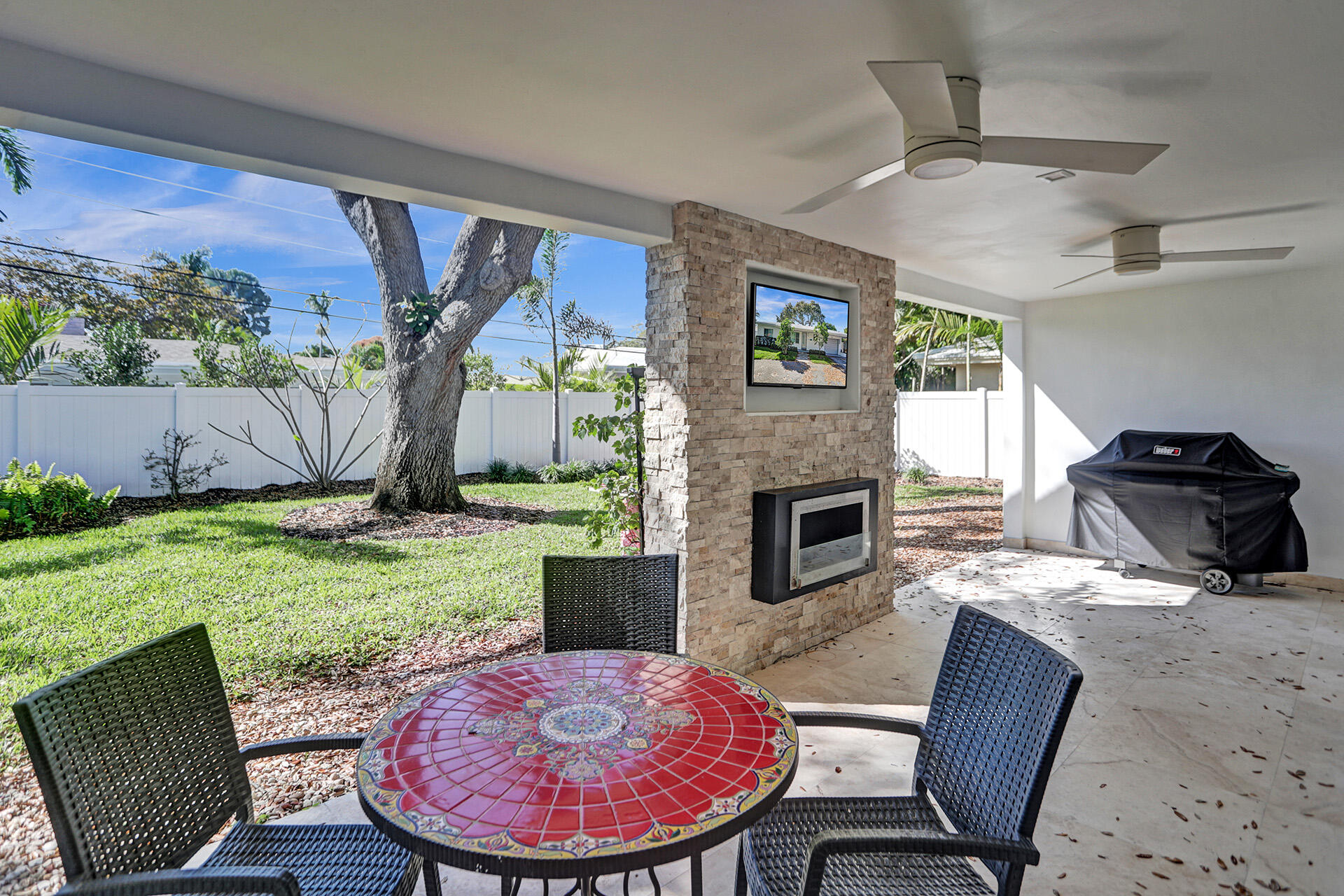 The Sophisticated interior by Ed Albers of DCOR, Rehobeth DE, really shines in this 3/3 Coral Shores gem...thoughtful, elegant finishes throughout this fully updated home in a wonderfully convenient location less than 2 miles from the beach and all that FLL has to offer...Full impact windows and doors, beautiful open kitchen with quartz countertops, island and GE Profile appliances including induction cooktop, 3 bedrooms and 3 full bathrooms (2 en-suite), updated electric, built-in queen sized murphy bed, LED lighting and large format porcelain tile throughout, fantastic covered patio area with built-in bio fuel fireplace and electric for TV, fully fenced backyard with plenty of room for a pool if desired, one car garage and circular drive for plenty of parking...gorgeous and move in read