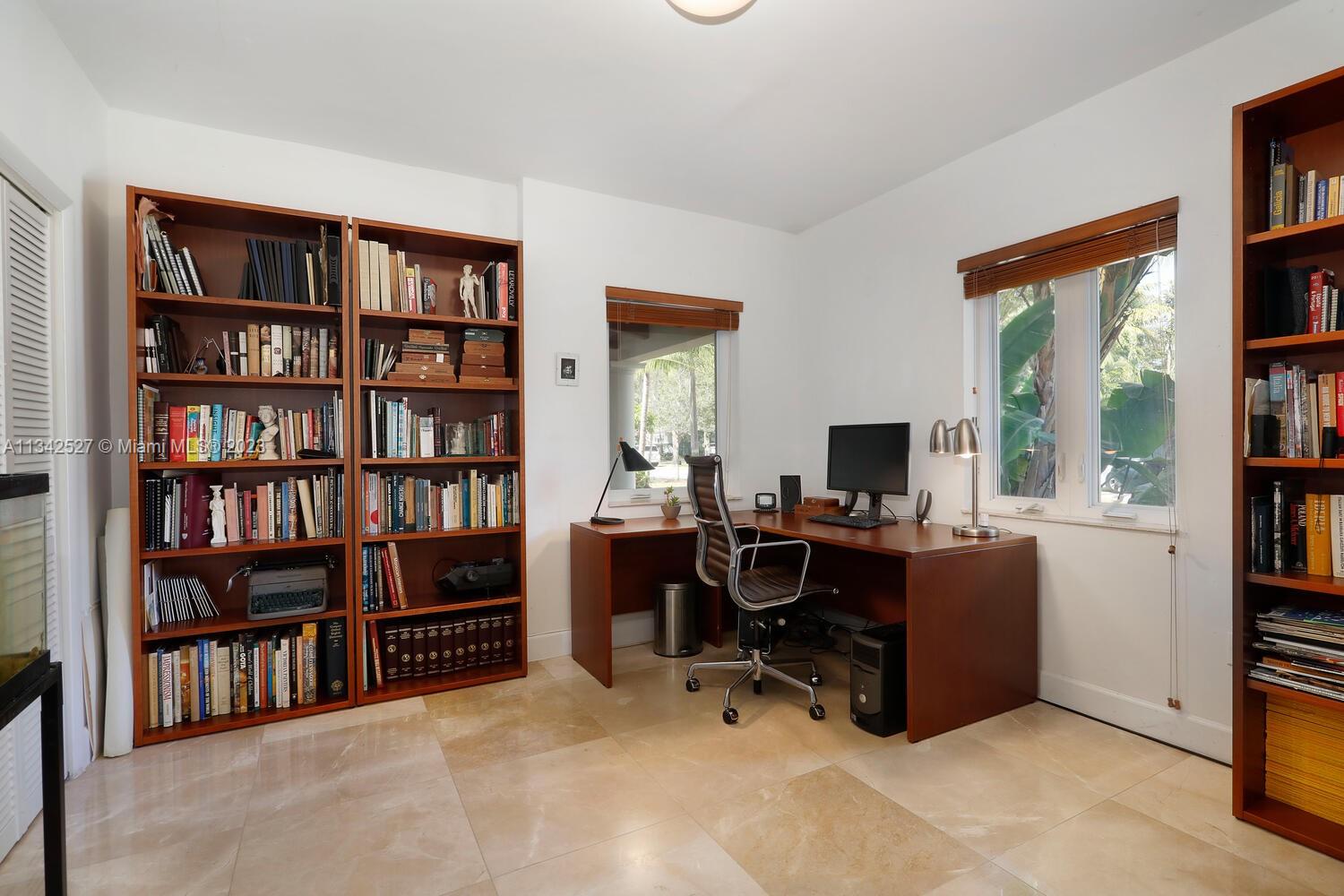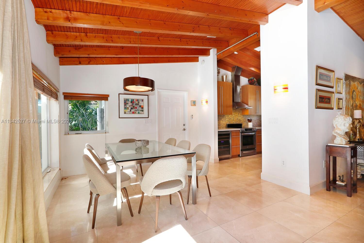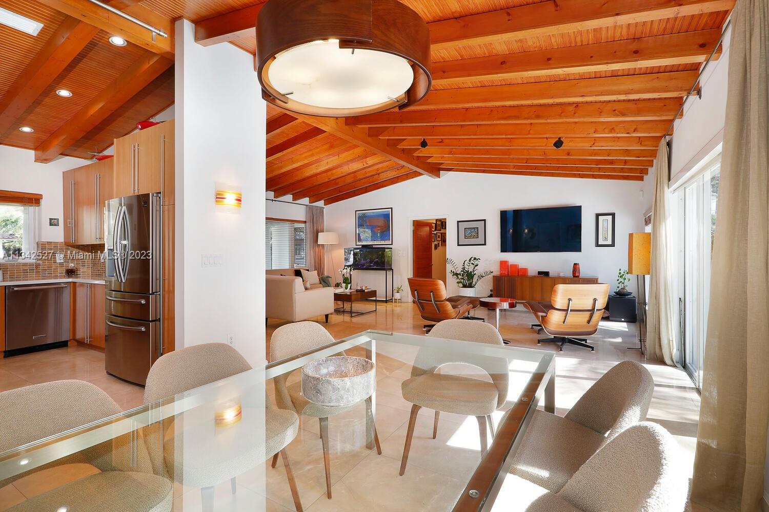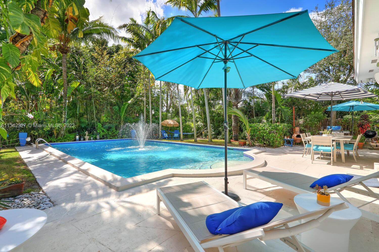 Lovely Bermuda-style inspired home set on large 12,500 sqft lot with lush tropical landscaping surrounding 25K gallon saltwater pool, located in the highly coveted South Gables neighborhood. Completely rebuilt in 2005 according to the South Florida Building Code including new roof, impact glass casement windows and doors, and all new interior infrastructure. This beautiful home features open floor light-filled living spaces with cathedral wood ceiling, elegant Crema Marfil marble flooring and stunning views of the pool and secluded garden area. Modern-style kitchen with wood cabinetry, quartz countertop and energy saving stainless steel appliances. Ample land for home expansion. Home features ADT/Ring alarm system with closed circuit cameras and large air conditioned two car garage.