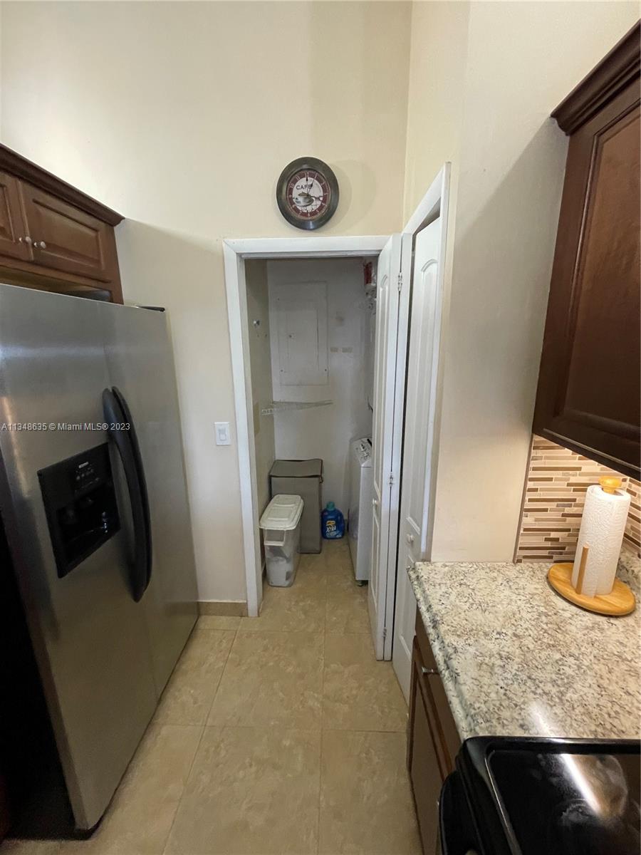 Excellent and beautiful one-story town home in strategic location a few miles from shopping, restaurants and main roads. This corner unit features two bedrooms, two baths, two assigned parking spaces, vaulted ceilings, brown wood cabinets, Laminate countertop, stainless steel appliances, marble floors and walls in bathrooms, hurricane shutters, enclosed patio with a beautiful view. This gated community features a community pool, clubhouse and playground great for family entertainment. The best part is the low HOA fee of $168 per month.