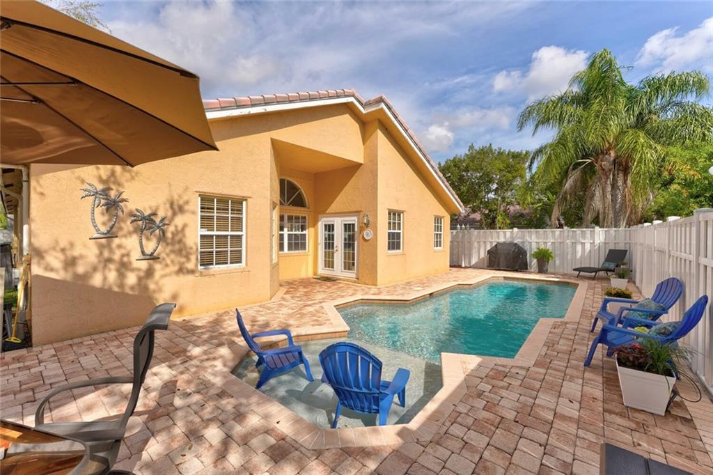 Just reduced, your buyer gets a great deal! Beautifully remodeled ONE story 3/2 POOL home with BRAND NEW ROOF (just completed March 2023) in the lovely gated community of Sawgrass Preserve. Enter thru your double front impact doors. Plus office/4th bdrm-partial garage converted-seller can convert back if preferred. Open layout design has vaulted ceilings & high hat lighting! Large kitchen with island open to family room/dining room great for entertaining. Range, water heater, and dryer- all gas. Spacious master bedroom has spa-like bathroom with double vanity & large glass enclosure. Tile thru-out. Inside laundry room. Soak up the sun in your newer pool w/ sunshelf. Fully fenced, private corner lot. Hurricane shutters. Low HOA! Easy access to highways, close to restaurants & shopping!