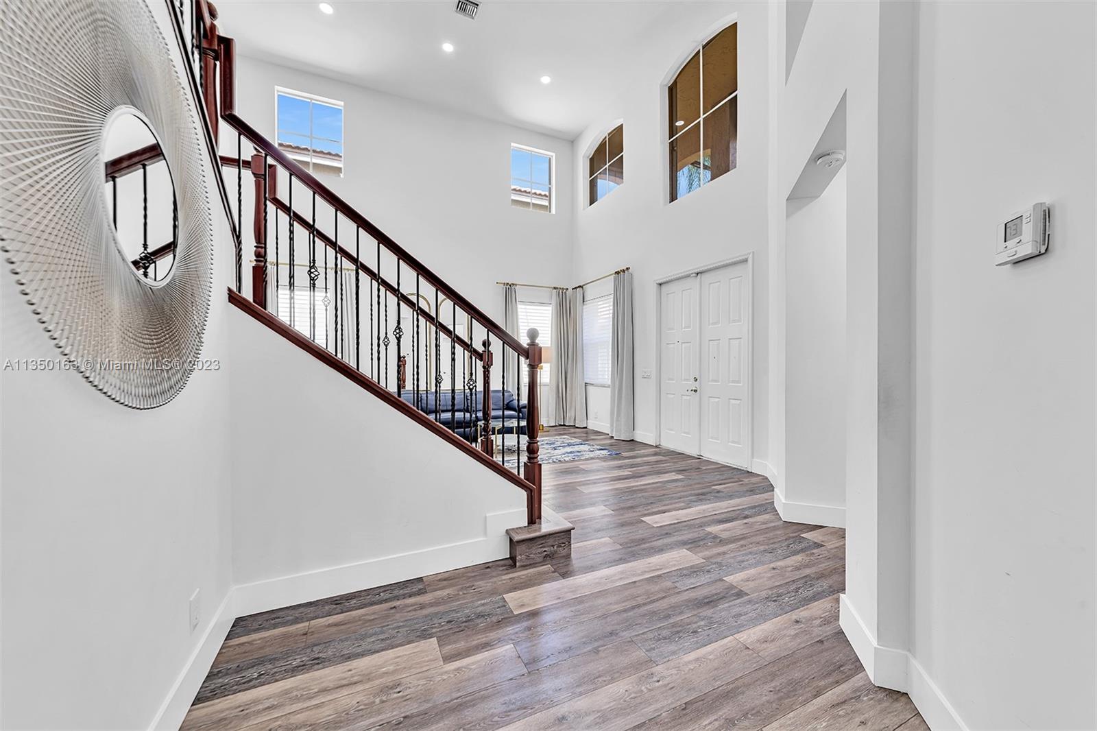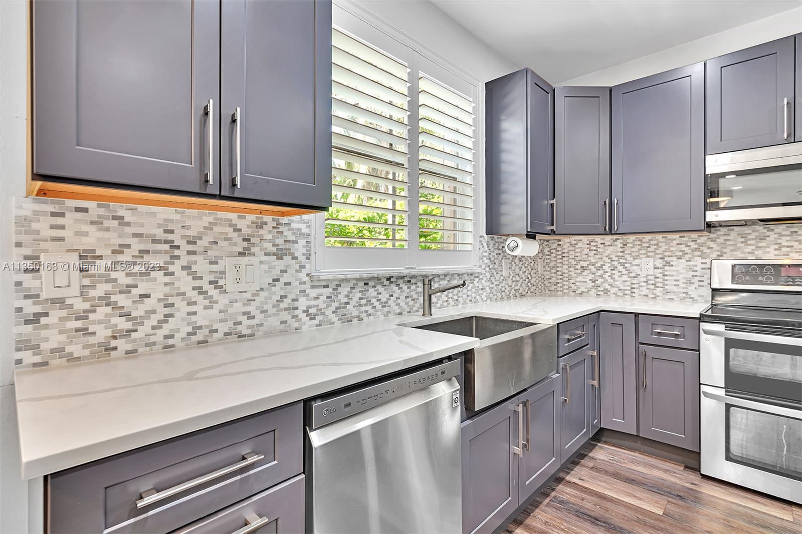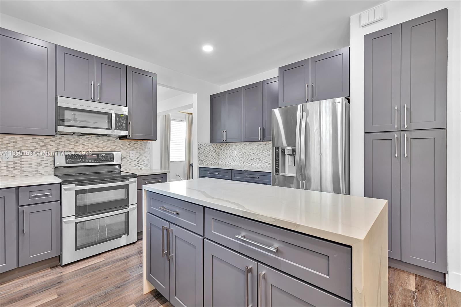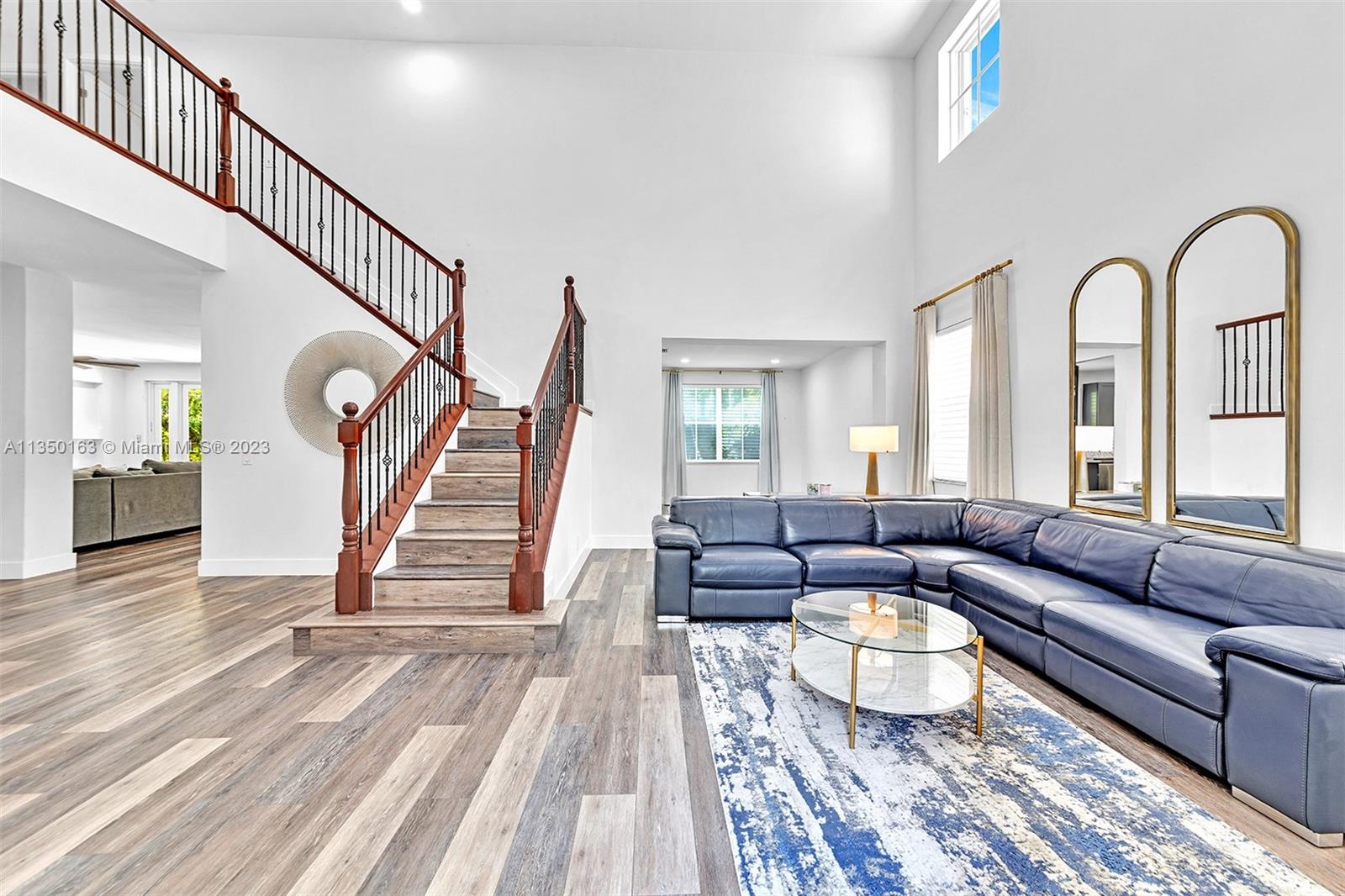 This exquisitely remodeled 6 bedroom/4 bath pool home is located in one of the most desirable neighborhoods in Weston and offers high end appointments throughout.The main floor opens to a sun-filled great room with soaring ceilings and features a gourmet kitchen with modern cabinetry, farmhouse sink, upgraded quartz countertops, waterfall quartz island, stainless-steel appliances and glass tile accents. Formal dining room, large family room with fireplace. One bedroom and bath on the first floor. Large owner's suite features walk-in closet. The master bath features seamless/frameless glass shower doors and dual sinks. Additional amenities include a private fenced backyard with resort style pool, covered patio and 3-car garage. A/C 2017. 24hr Guard Gated Community. A rated Weston schools.