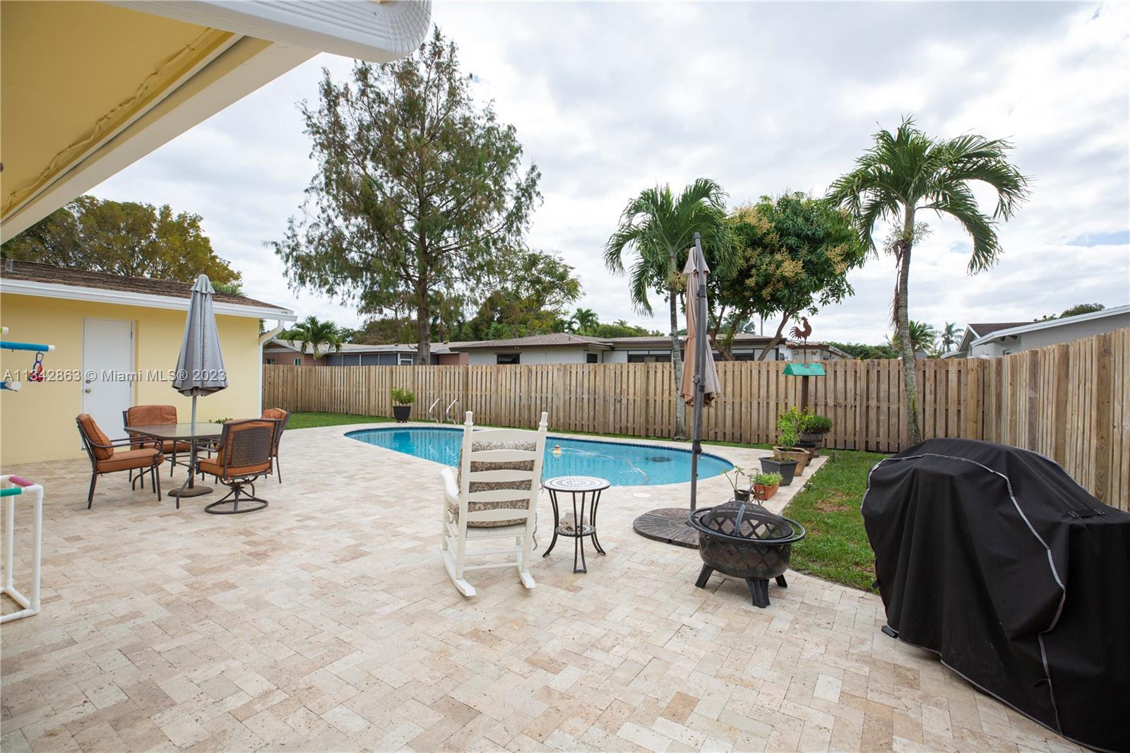 Totally updated home ceramic wood look flooring threw out the entire home. 3 bedroom plus den 2 bath home.Custom gourmet kitchen with gorgeous stone countertops all new stainless steel appliances oversized Island in the kitchen. Open concept living space with large Family room and dining room. Impact windows and doors. Remodeled bathrooms. Beautiful Pool with privacy fence and large back yard.