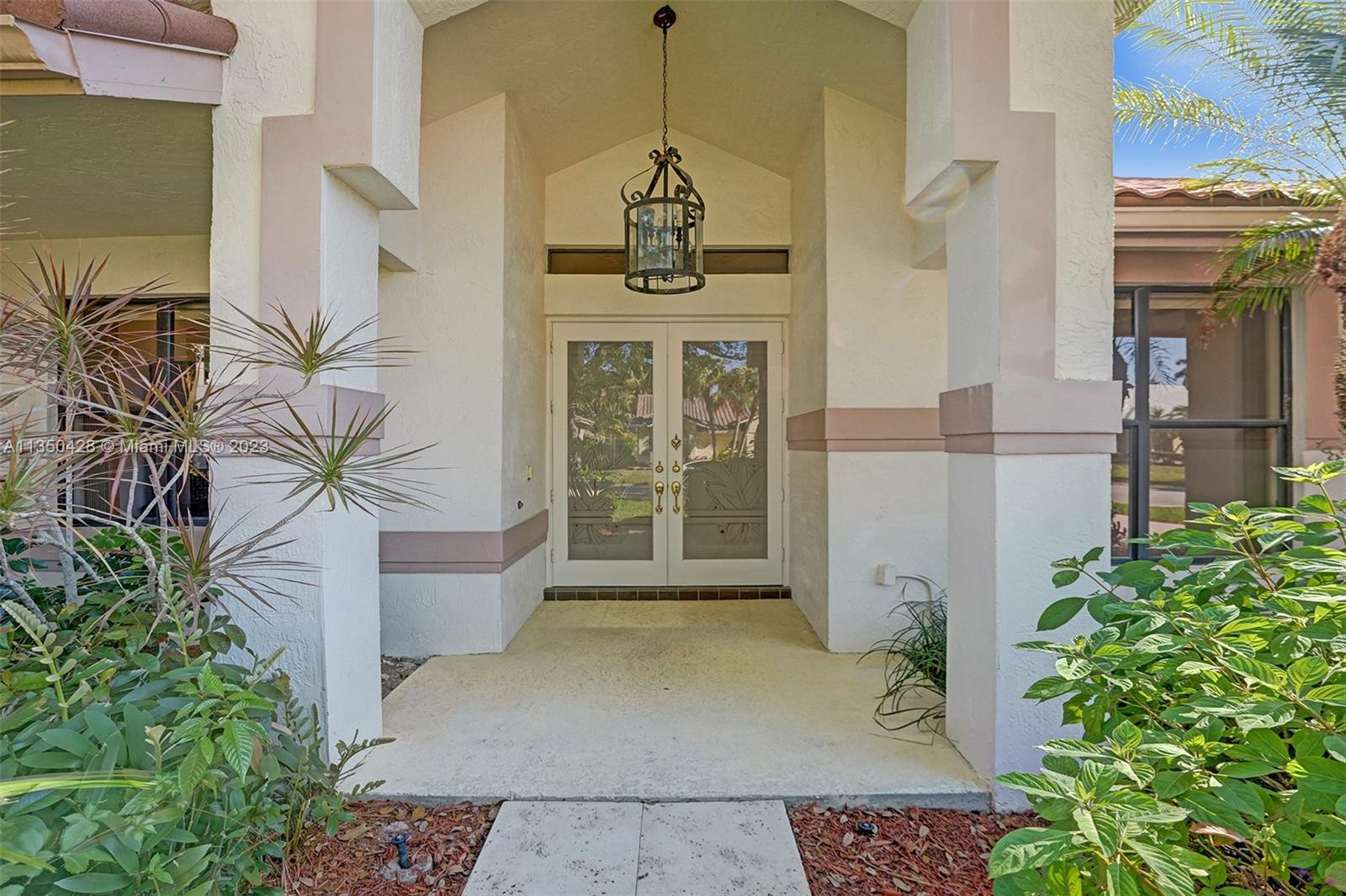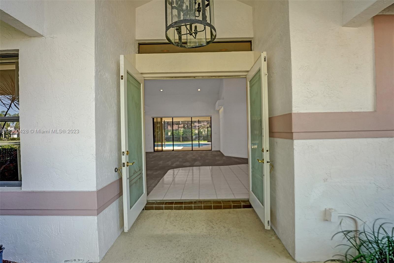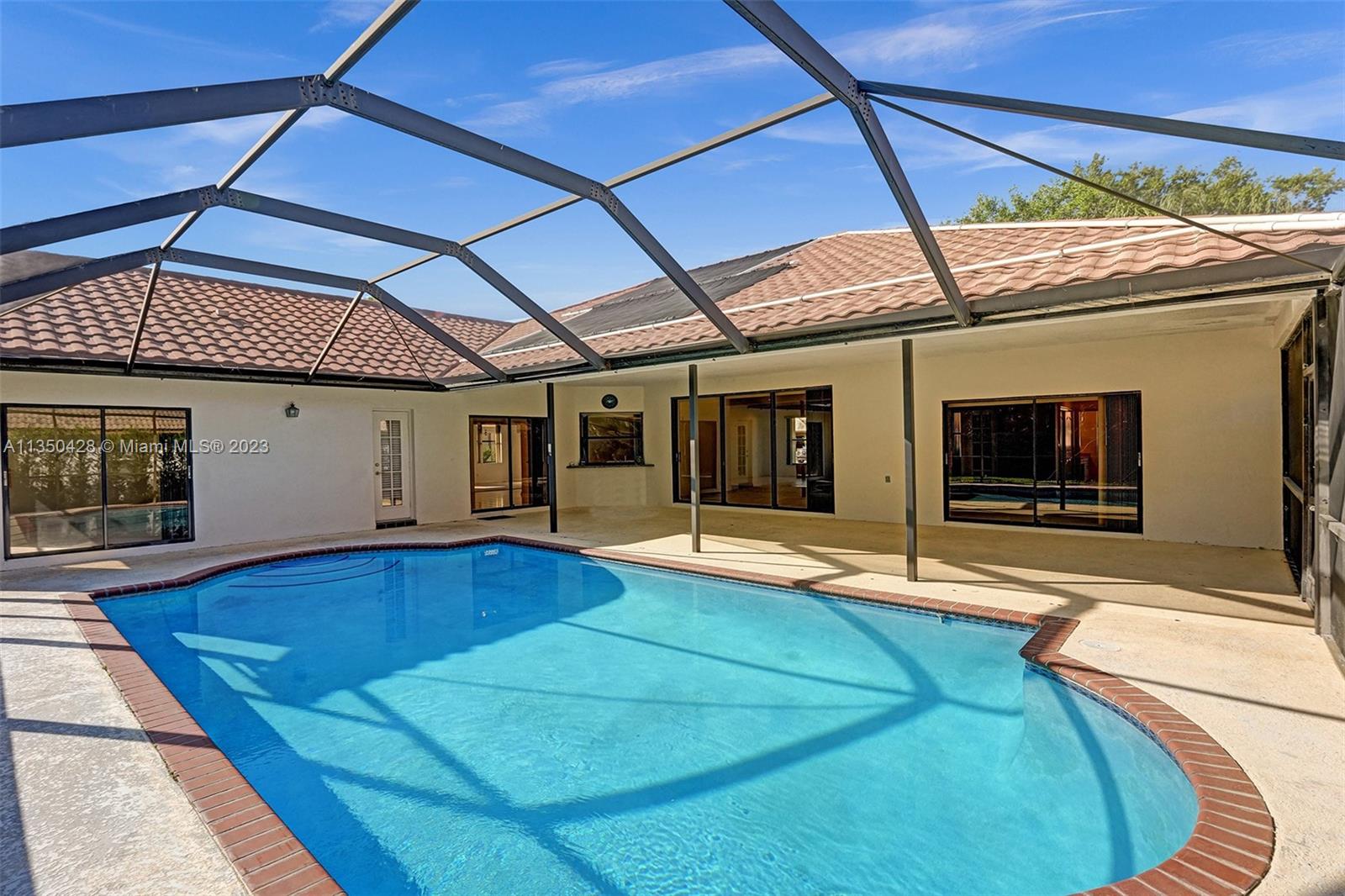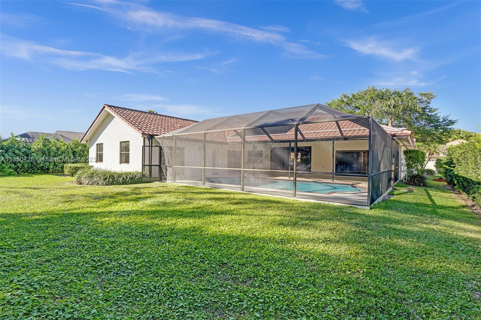 Prestigious CARRIAGE POINTE ESTATE home with 4 bedrooms & 2 bathrooms w/ lovely screened in patio and pool in 24 HOUR GUARD GATED COMMUNITY. Expansive primary suite w/ 2 closets. This already spacious home feels even larger with its vaulted ceilings. Sits on a cul de sac with minimal car activity. Kitchen has solid wood cabinets and granite counter tops w/ tranquil view of pool and backyard. Across from the kitchen is a flex room for family, kids playroom, etc. Both bathrooms have dual sinks. Large windows let in tons of natural light. METAL ROOF that looks like clay tile. AC is 2021. Brand NEW CARPET in 3 rooms. Enjoy pure backyard privacy as the lot backs to Sandy Ridge Preserve. This home was well cared for and clean as a whistle and ready for you to make it your own.