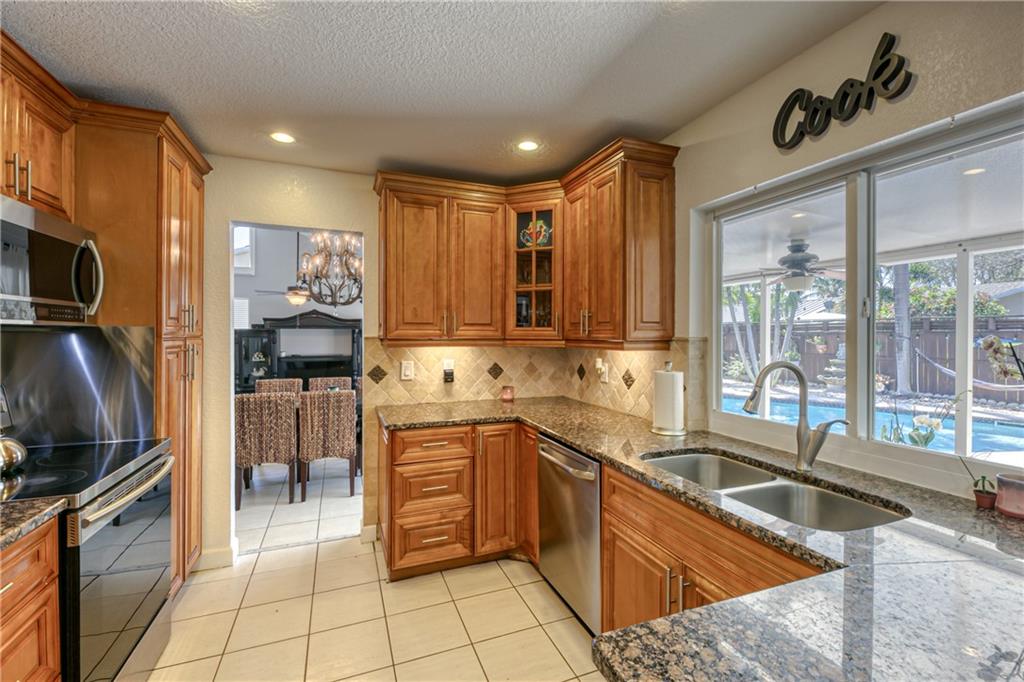 This Beauty in Palm Aire Village East is a MUST SEE!!!! Gorgeous 4BD/2.5BA, 2 car garage home features vaulted ceilings, updated kitchen with stainless steel appliances and granite counters and a large master suite with spacious bath. This home boasts a fully fenced in backyard oasis with a crystal blue pool, covered patio and your very own putting green for the golf lovers!!! Truly great for entertaining family and friends! All Impact windows and doors with accordion shutters for double protection, gutters and sprinkler system. Great family friendly neighborhood, close to I-95 and turnpike, Calvary Chapel, Casino, Executive Airport and Pink Soccer Stadium.