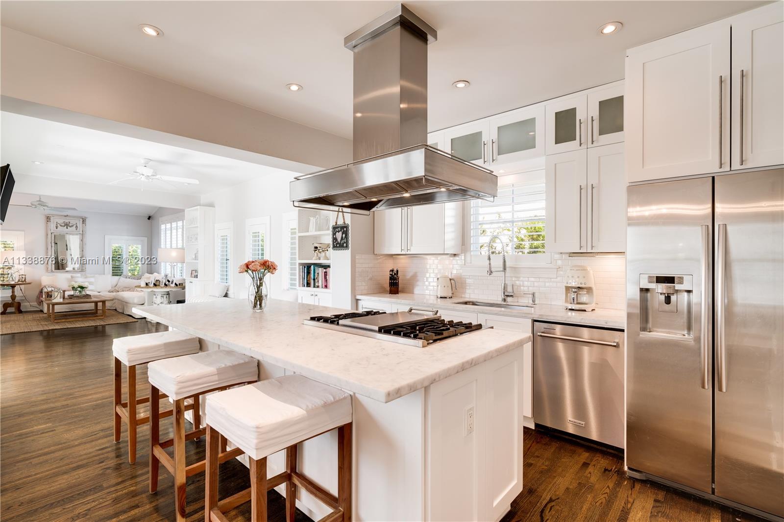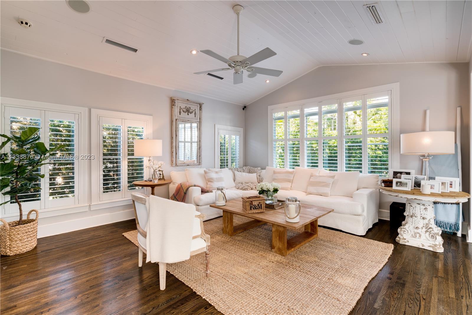 HELLO GORGEOUS! This magazine-quality home is a showstopper! Located in one of the most desired pockets of Coral Gables, this impeccably remodeled property has created a picturesque environment that says “home” from the moment you enter. The warmth of the wood floors as well as many of the finely crafted details melds into harmonious, flowing spaces. Impact windows, a stunning kitchen with Carrera marble and newer appliances including a gas cooktop, plantation shutters, and surround sound are just a few of the extras to enhance the living experience. The primary suite with its large walk-in closet and spa-like bath are a sublime getaway. Exterior lighting as well as a new canopy awning invites you outdoors in the evening. A Very Special Home.