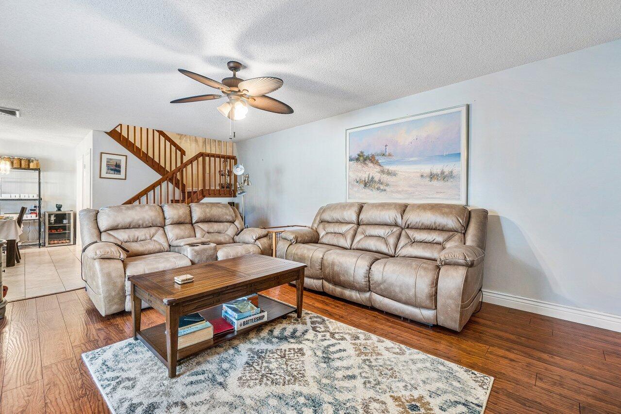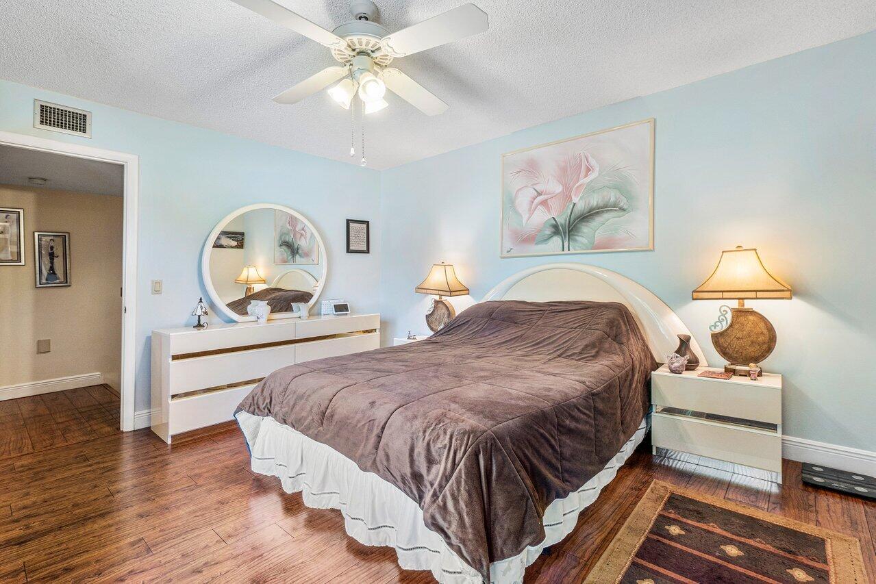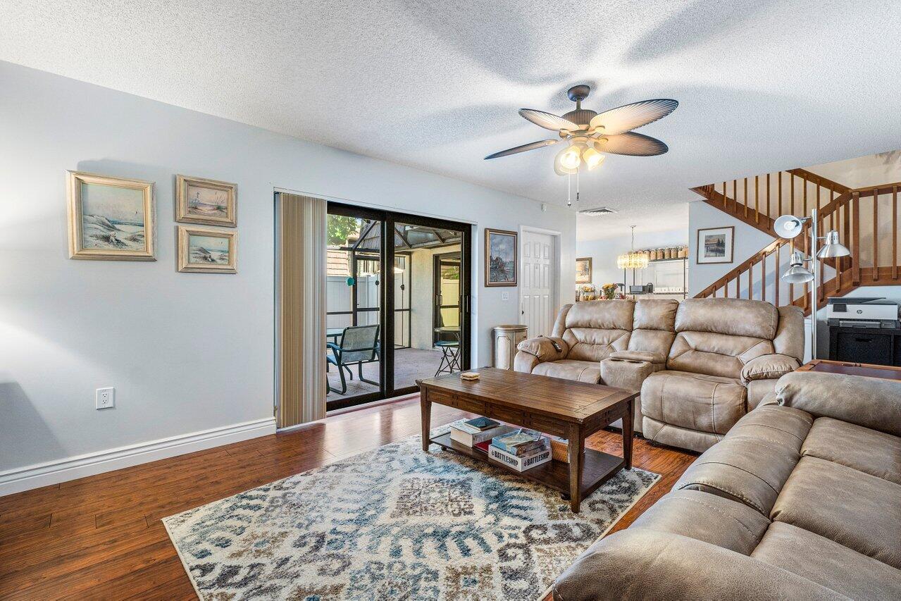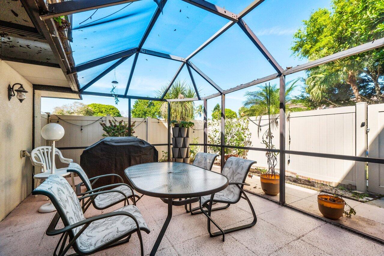 As soon as you enter this beautifully maintained and upgraded townhome in Heritage Village, you'll see how much the owners have loved this home. From the real cherry-wood cabinets in the kitchen and separate laundry room, to the granite counter tops and elegant tile backsplash, to the beautiful brass fixtures, extra touches abound! No weather worries, with impact glass sliders (2019) and a new a/c system (2021)! And don't overlook the location! Sit and relax at the canal behind your new home, take a stroll to the newly resurfaced residents-only pool located about 100 steps from your front door (and which you can see from one of the two master bedrooms), or walk over to the Ballpark of the Palm Beaches for a game! If you're not in the mood for any of those activities,