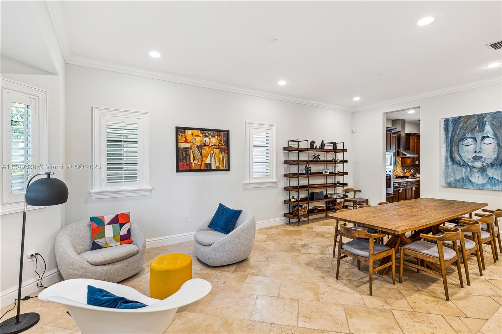 Unique opportunity to live in a community of only 12 houses situated on a cul-de-sac in North Pinecrest. The home has high ceilings throughout, all high-impact windows and doors, kitchen has Viking appliances including a gas range and beautiful wood cabinetry. Travertine floors on the main level, spacious master bedroom with 2 walking closets, dual sink, and separate tub and shower. Laundry room located on the second floor, central vacuum, and gated 2-car garage. Pinecrest School District, this house is a must-see it!