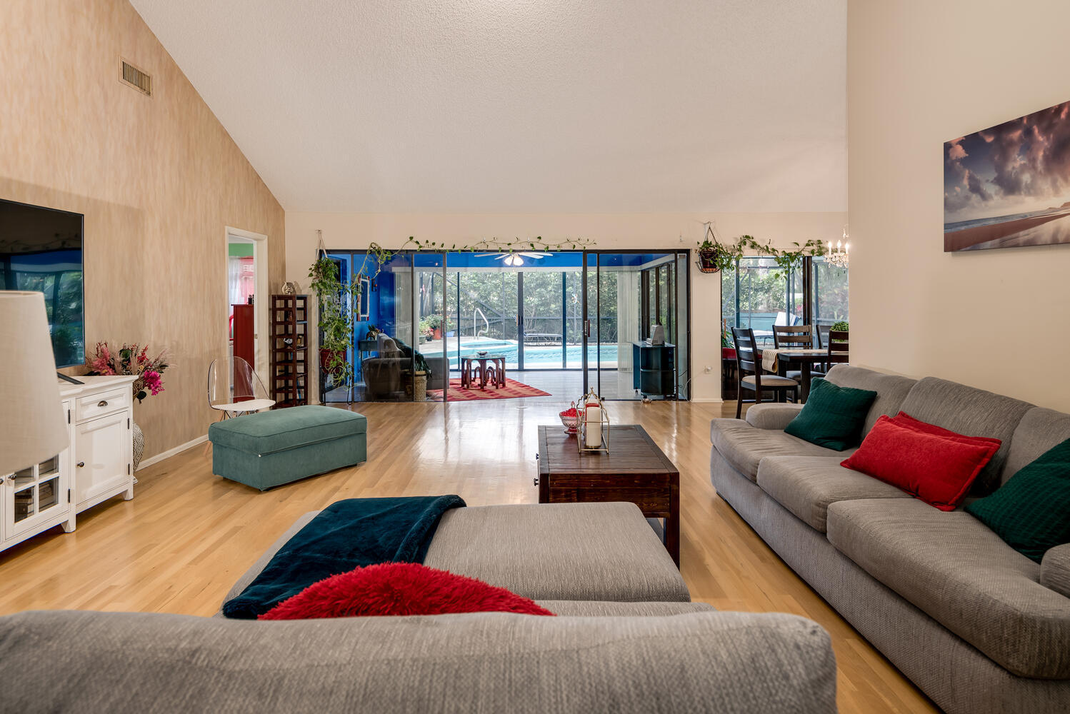 Beautiful 3 bedroom plus loft, 2 bath Pool house in cul-de-sac in prestigious gated community of Bear Lakes Estates. The spacious home features over 2,000 square feet of living area plus a beautiful backyard with screened in pool surrounded by palm trees, mango, avocado & banana trees. Newer kitchen with wood cabinetry, granite counters, glass tile backsplash and stainless appliances. The living room has vaulted ceilings and wood floors. Glass sliders open to the family room and also out to the pool deck and covered patio. Fully Screened in pool area with newer roof and Air Conditioner. Great location with many amenities included like Cable, 3 Swimming Pools, 3 different parks, Tennis, Pickle Ball, Basketball,Exercise Trails and so much more. Near I-95,Tanger outlets, restaurants & beach