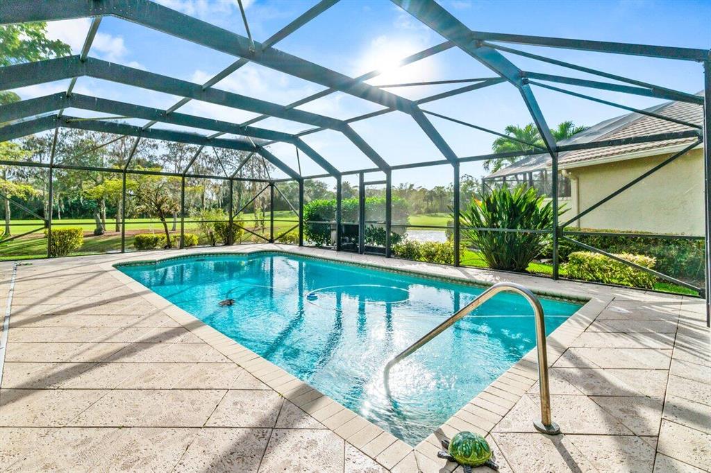 Incredible EXPANSIVE WATER & GOLF views from this meticulously maintained home with screened in pool area and expanded patio located at the end of a cul-de-sac on an oversize lot. This 2 bedroom/2 bath home includes a den that can easily be converted into a 3rd bedroom. Boca Woods is a prestigious all age Country Club community which offers resort style amenities including two 18 hole golf courses, tennis, pickleball, new state of the art Fitness Center, spa, game room and fine dining! Mandatory Membership required $95,000.