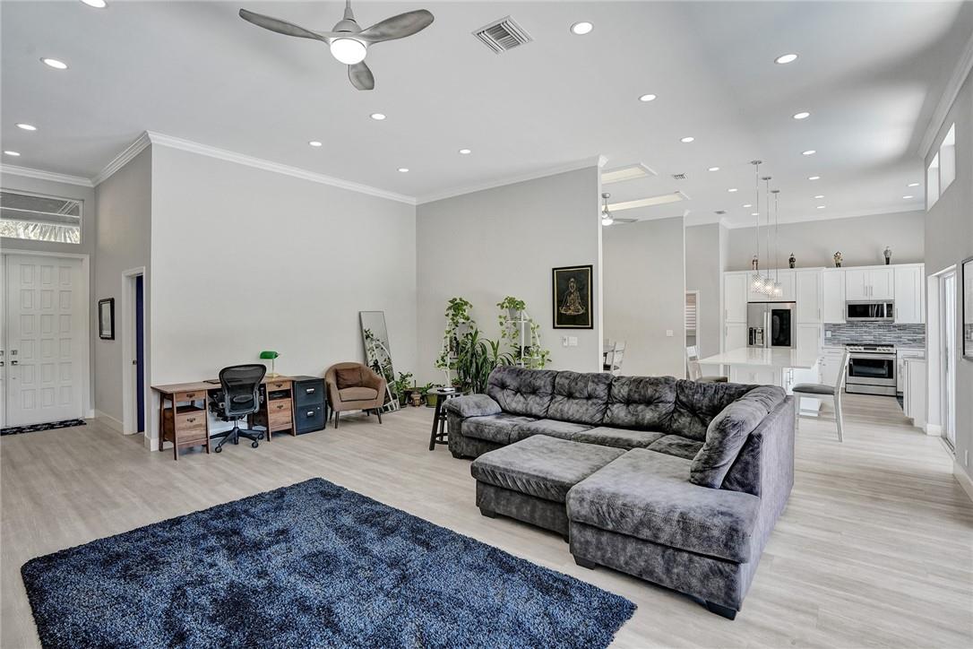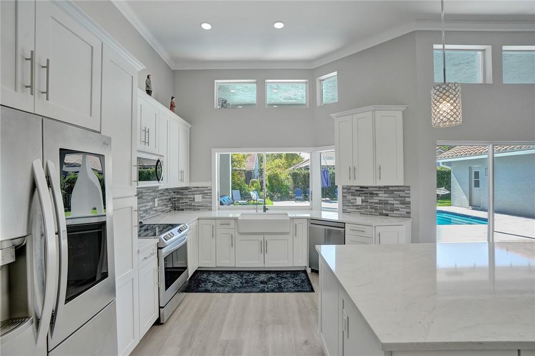 Renovated 5 bedroom 3 bath home in the Eagle Point section of the prestigious Eagle Trace gated community. Manned-gated golf community (TPC Course! Membership not required). All renovations completed in late 2021, Spacious open floor plan with 12' ceilings. Beautiful Chefs kitchen with all SS appliances, oversize Quartz island with seating and storage. All new flooring, electrical and plumbing. You will love the newly renovated outdoor tropical oasis. It's a must see.