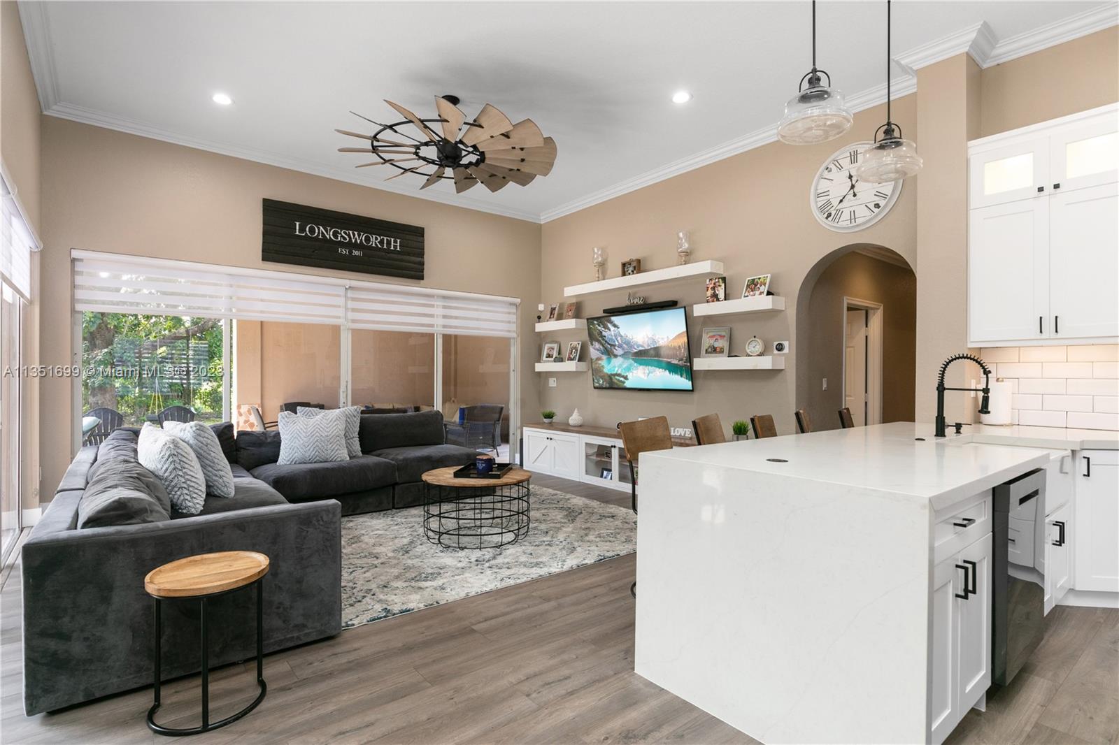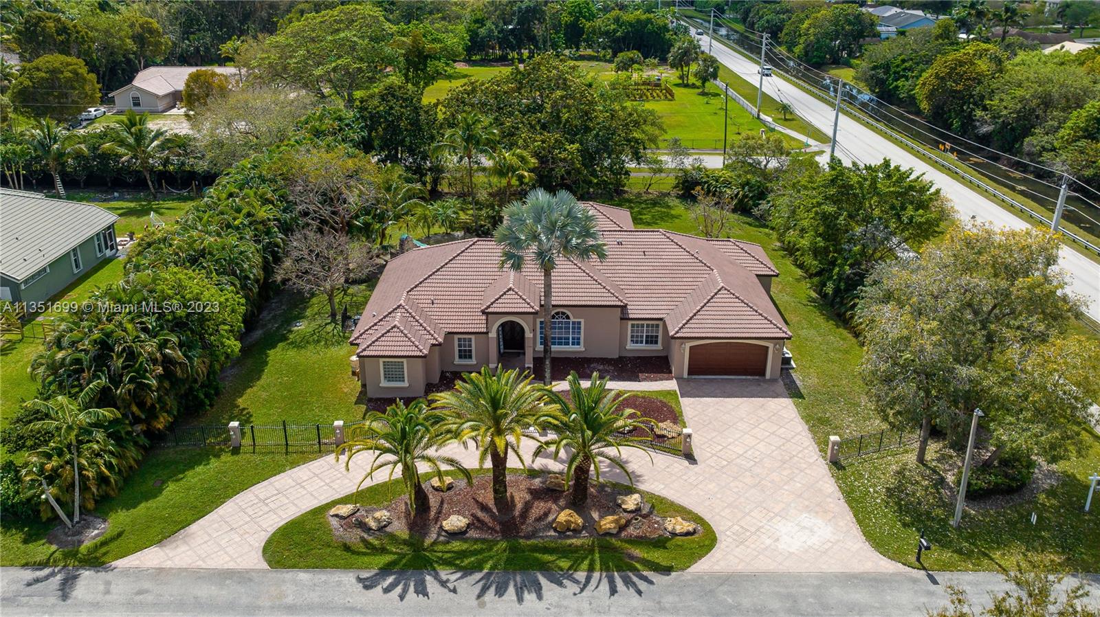 Your dream home is here located in the equestrian Town of West Davie on a builder's acre. The home features a split bedroom floor plan with 5 bedrooms, and 5 bathrooms, plus a bonus room/office and a 2-car garage with a large circular driveway for up to 10 cars. Open living spaces and large floor plan with 12' ceilings. Brand new gourmet kitchen has wood cabinetry, quartz countertop and stainless steel gas appliances with a double oven and wine fridge. Newly updated primary bath with dual sinks, custom cabinets, and a dual shower stall. Two brand new AC units, 4k security system, wifi/smart thermostats/lights/garage door, Heated pool/Jacuzzi. Glass sliding doors that lead out to the rear patio terrace, where you will enjoy a perfect setting for relaxing and entertaining.