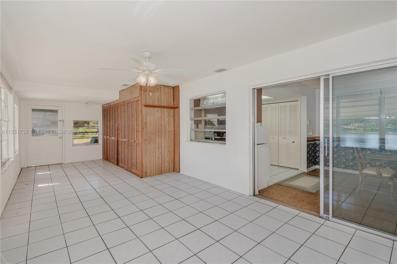This spacious home has a stunning lake view with a sandy beach area in a quiet neighborhood and on a cul-de-sac. Don't miss out on this 3 bedroom, 2 bath home with a two-car garage. With a large oversized fenced in shaded back yard, you can enjoy beautiful sunrises and sunsets both outside and from inside the Florida room. Other great features include an open kitchen, plenty of closet and storage space, an installed fiber optic line, a lake fed sprinkler system on a timer, and a wired alarm system. Three kayaks, a rowboat, and a flat bottom boat could be included. The property is in a great location close to Brian Piccolo Park, supermarkets, restaurants, schools, and a hospital. Opportunity to renovate with your special touch.