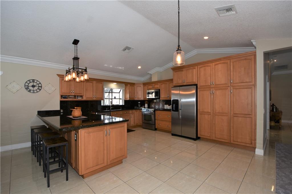 ONE STORY HOME IN EAGLE TRACE / EAGLE POINT, A CUSTOM MODEL, FIVE-BEDROOMS, TWO ½ -FULL BATHS, 2-CAR GARAGE, PROBABLY THE BEST LOOKING MOST UPGRADED HOME IN THE SUBDIVISION, CORAL WOOD BURNING FIRE PLACE, SCREENED IN PATIO, VERY PRIVATE OVER-SIZED SOLAR HEATED POOL WITH A COVERED AREA, 5TH BEDROOM IS CURRENTLY SET UP AS AN OFFICE / STUDIO, UPGRADED EXPANDED KITCHEN WITH GRANITE & NEWER APPLIANCES, UPGRADED EXPANDED MASTER BEDROOM WITH WALK-IN CLOSET & SITTING AREA, A DESIGNER’S MASTERPIECE, VOLUME CEILINGS, CROWN MOLDING, EXTRA STORAGE, MARBLE & TILE FLOORING, HURRICANE SHUTTERS, HOA IS ONLY $236. PER. MONTH INCLUDES 24 HOUR GUARD GATED AND ROAMING SECURITY, TENNIS CLUB, PICKLE BALL, BASKET BALL, AND TOT LOT, MANAGEMENT ON SITE. NOT A SHORT SALE OR FORECLOSURE A QUICK & EASY CLOSE.